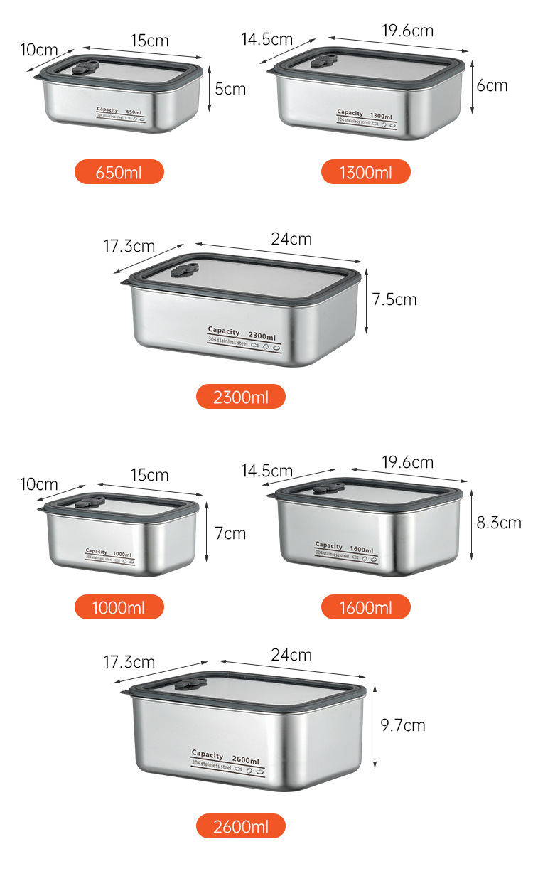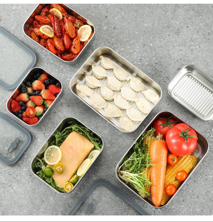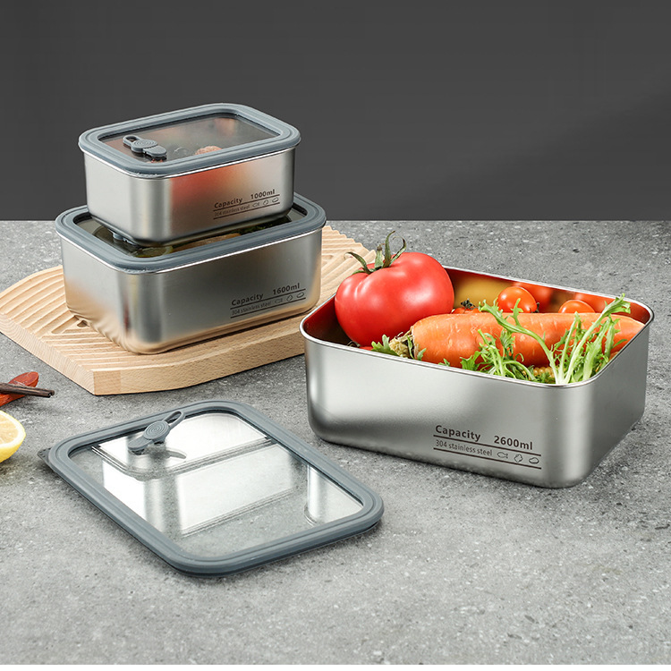 304 스테인레스 스틸 보존 상자 유리 뚜껑 도시락 과일 밀봉 도시락 피클 상자 광장 도시락 도매