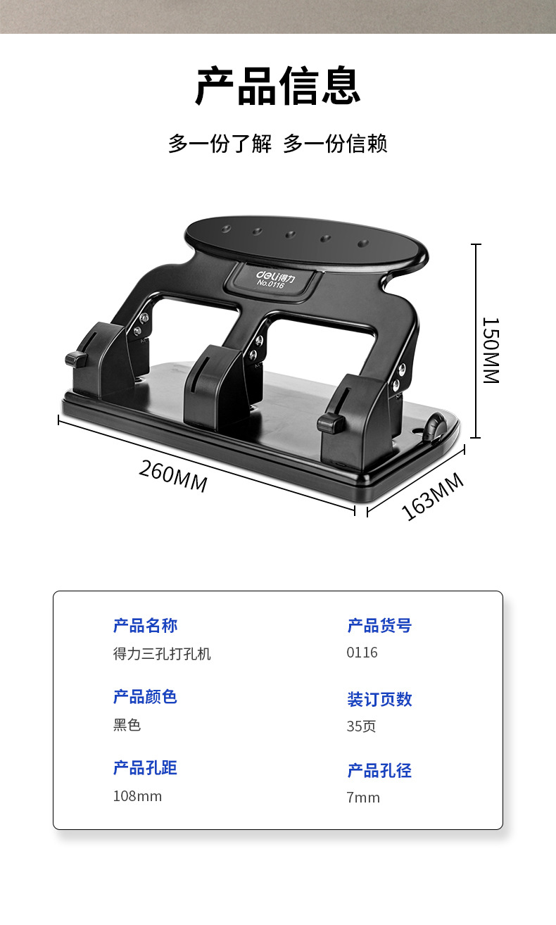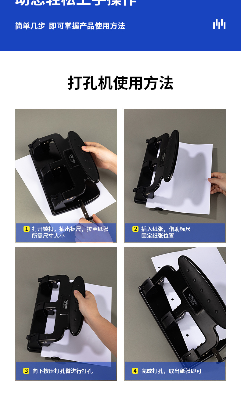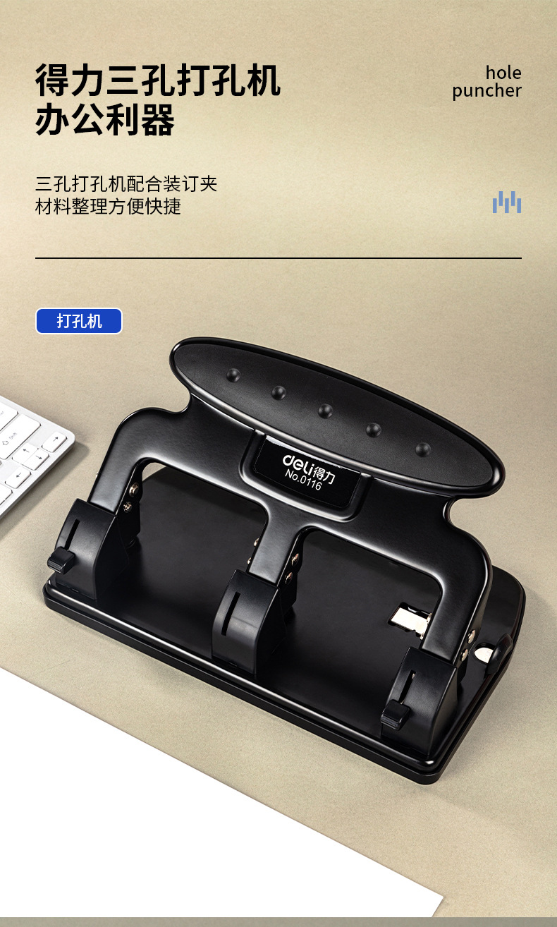 델리 0116 3 홀 펀치 3 홀 펀치 파일 바인딩 A4 종이 구멍 펀치 느슨한 잎 폴더