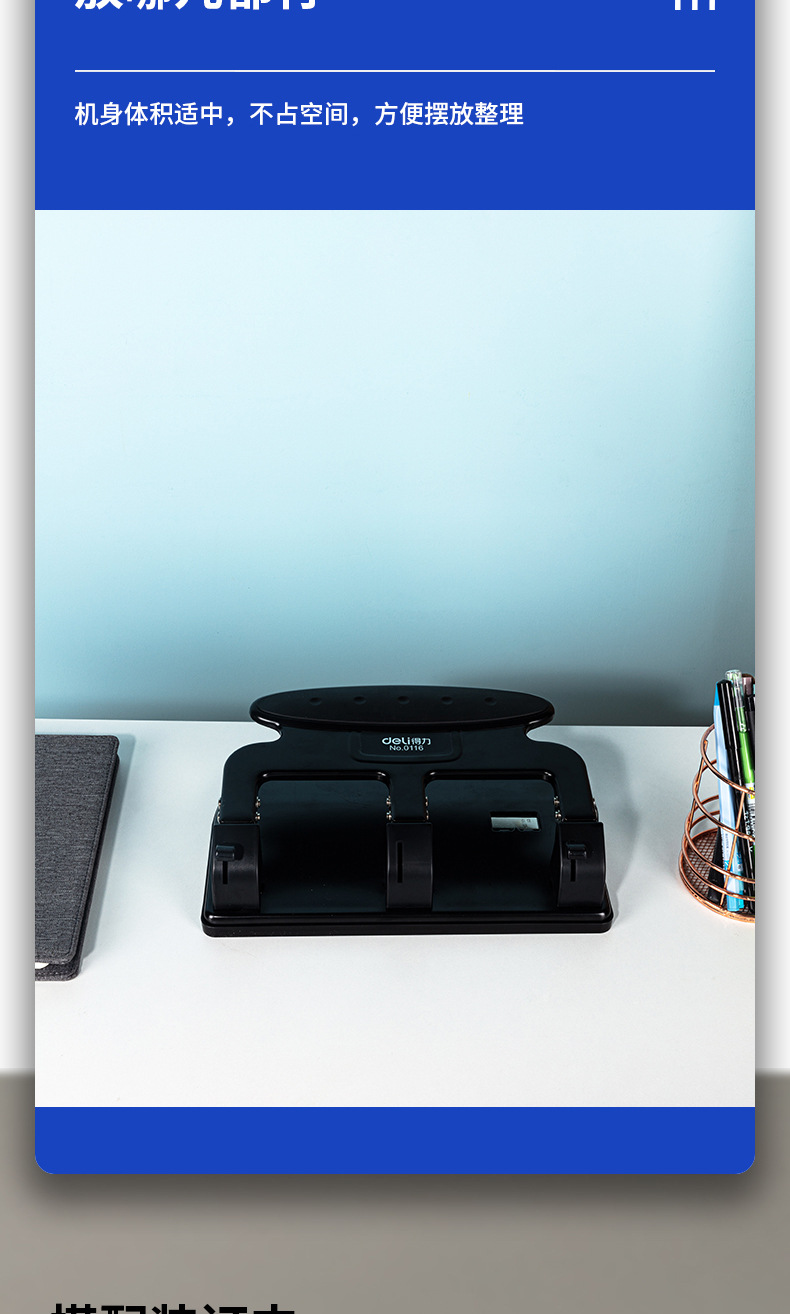 델리 0116 3 홀 펀치 3 홀 펀치 파일 바인딩 A4 종이 구멍 펀치 느슨한 잎 폴더스토어 가기