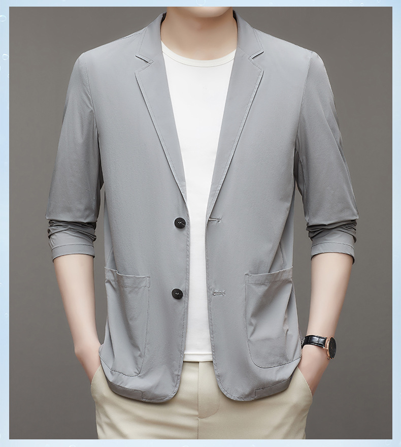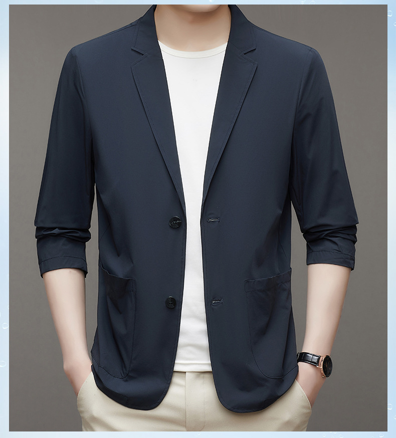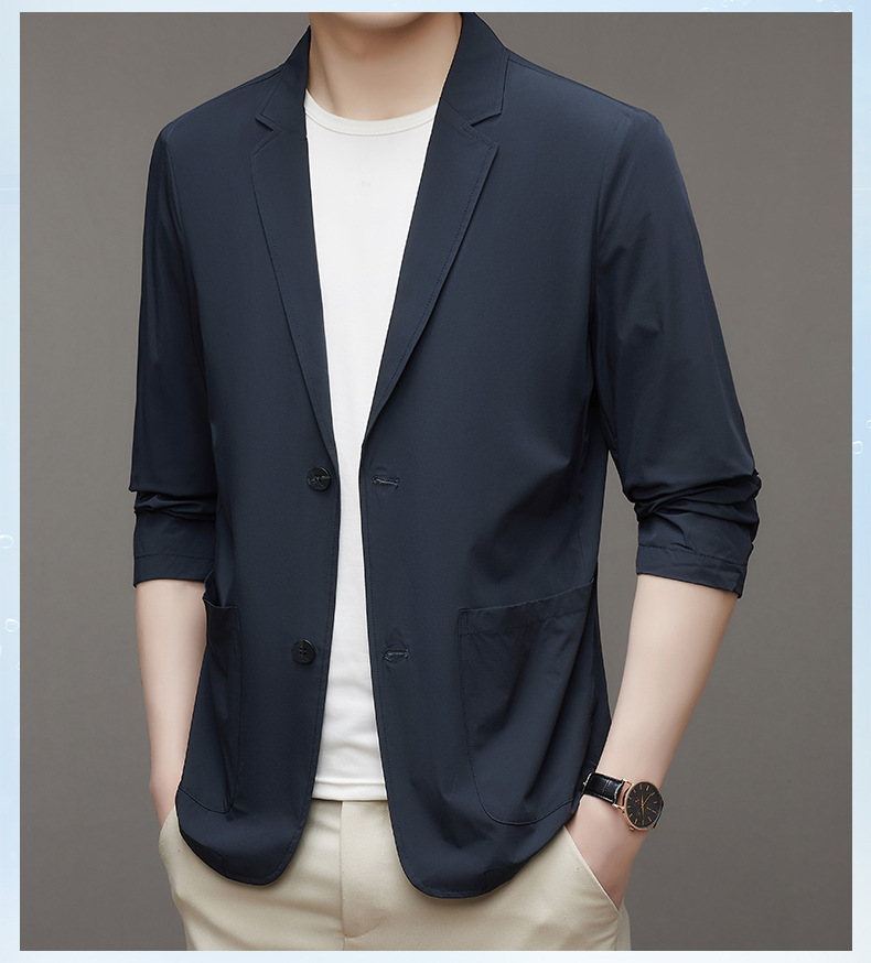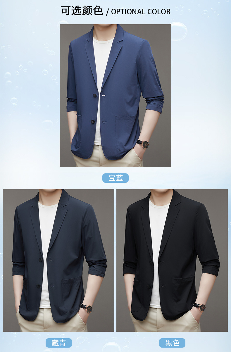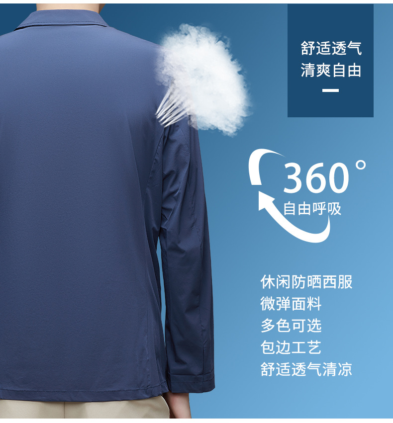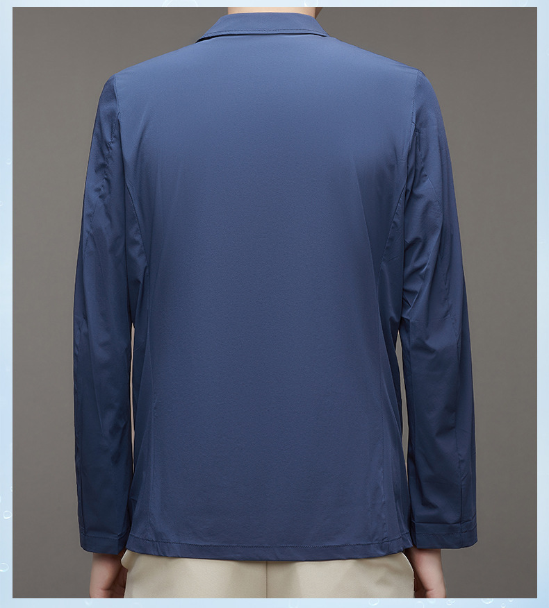 中老年男士夏季防晒西服、中年男士高端防晒衣、冰丝西服蓝色免烫