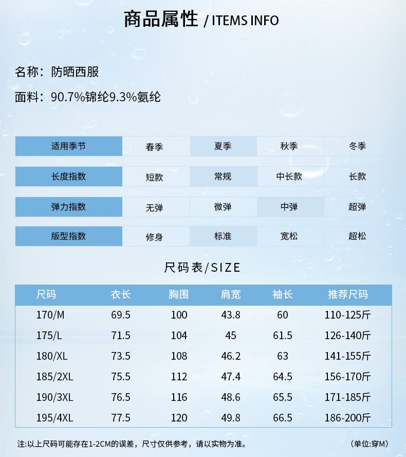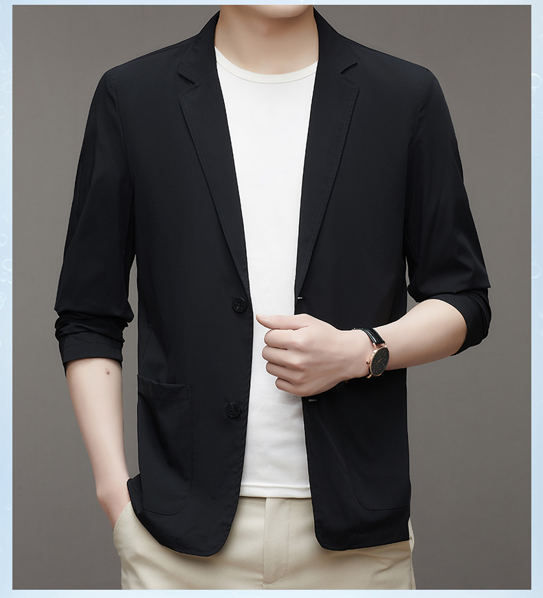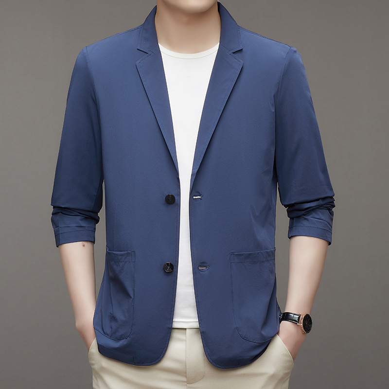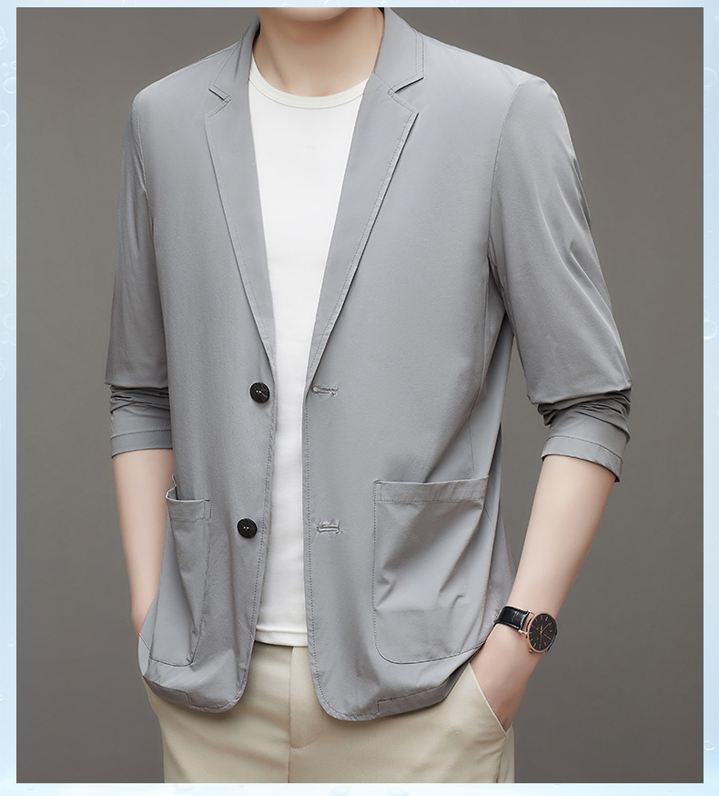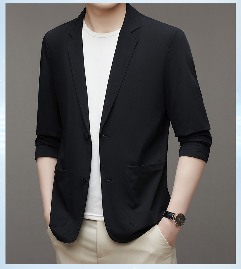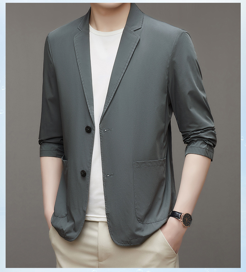 中老年男士夏季防晒西服、中年男士高端防晒衣、冰丝西服蓝色免烫