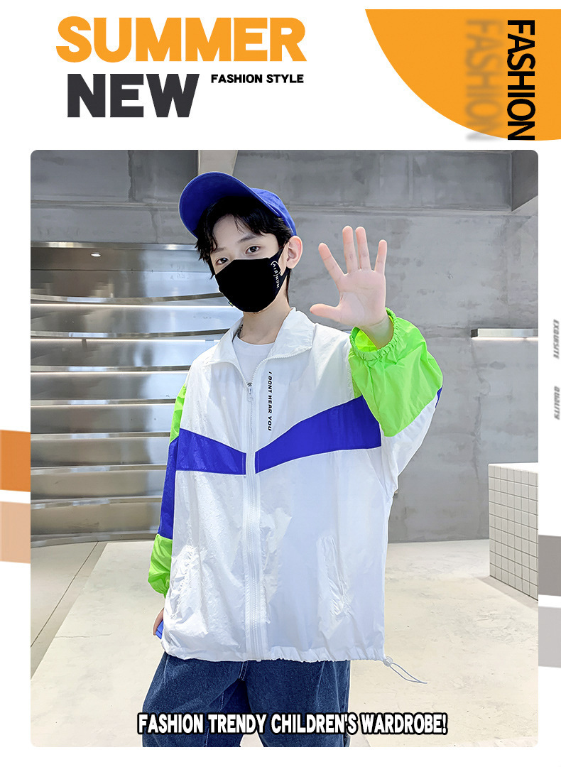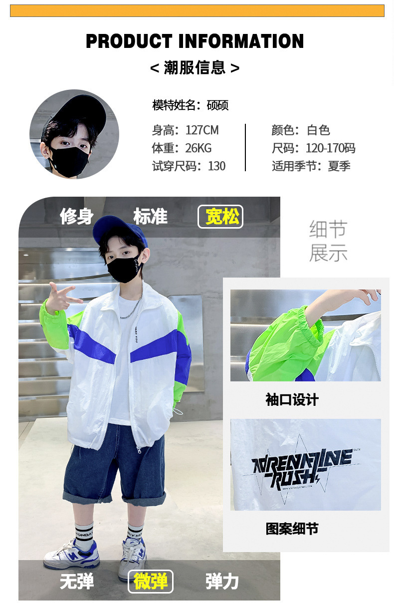 어린이 의류 소년의 여름 태양 보호 의류 2024 새로운 스타일 중대형 어린이 얇은 태양 보호 의류 소년의 여름 피부 의류 트렌디스토어 가기