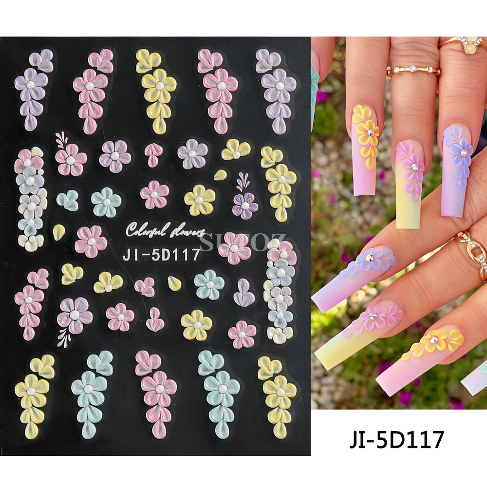 2024 새로운 양각 네일 페이스트 네트 축하 새로운 일본 스타일 5 꽃잎 꽃 나비 스테레오 5D 백 접착 페이스트스토어 가기