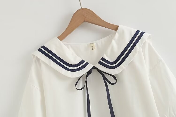2025 여름 신상 네이비 칼라 레이스업 루즈핏 여성 가디건 셔츠 화이트 반팔 상의스토어 가기