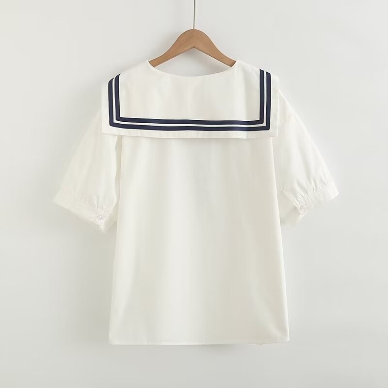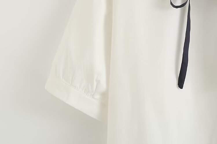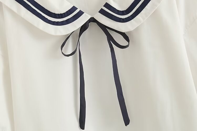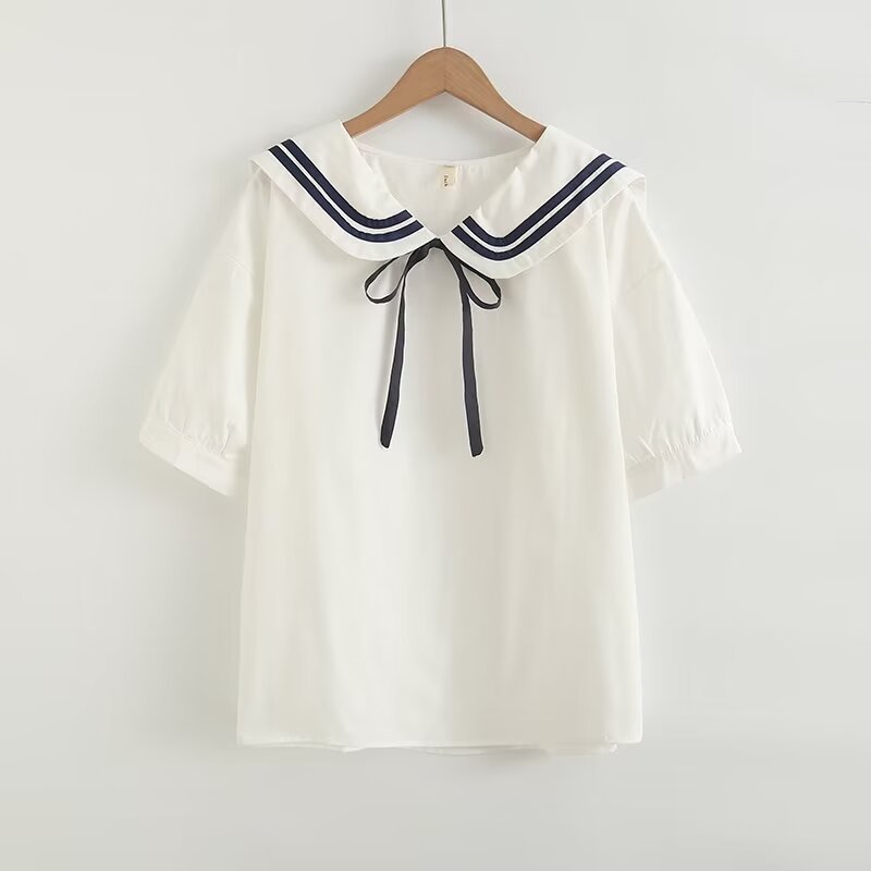 2025 여름 신상 네이비 칼라 레이스업 루즈핏 여성 가디건 셔츠 화이트 반팔 상의