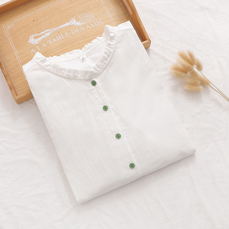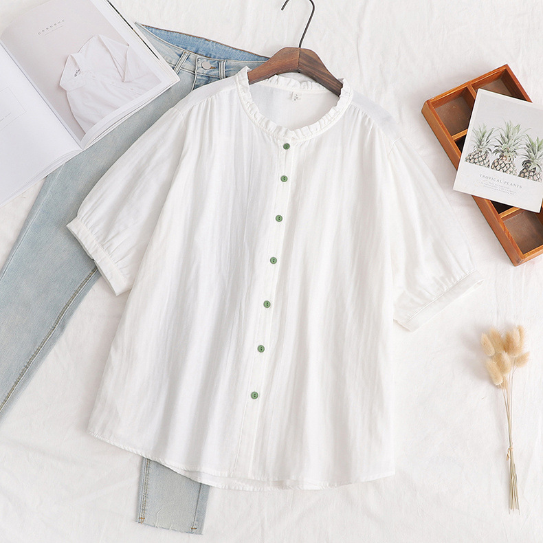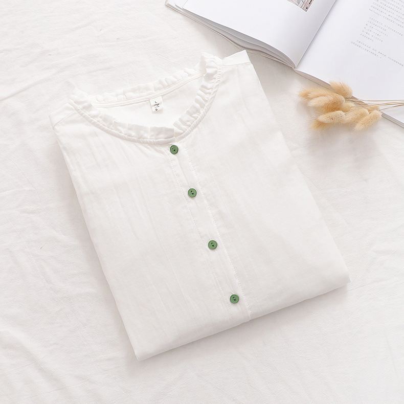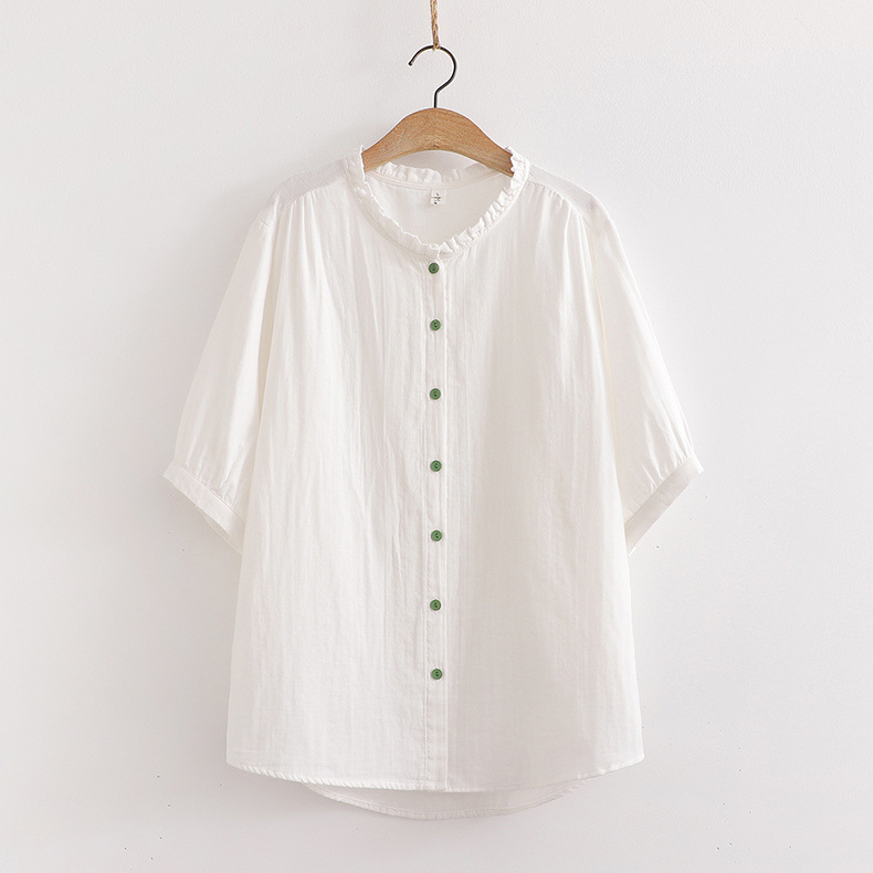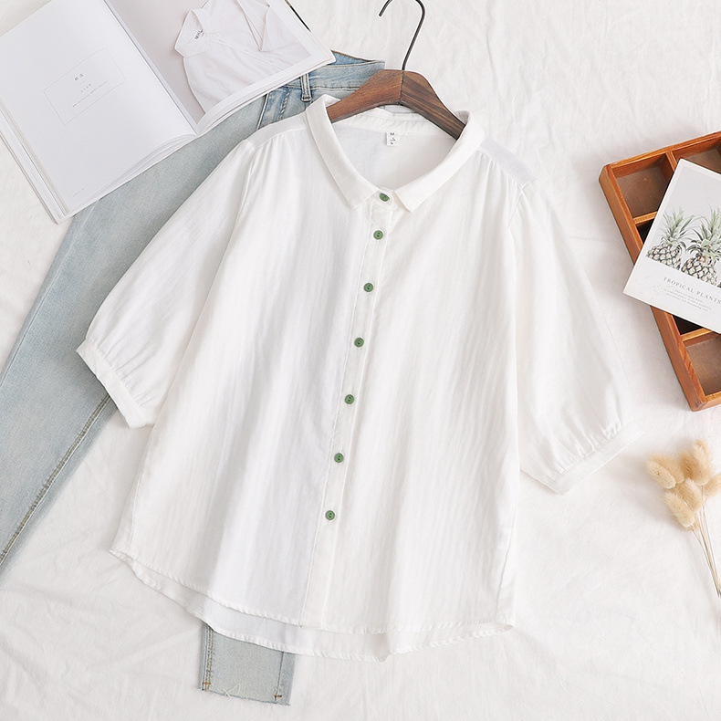 일본의 작은 신선한 단색 녹색 버튼 느슨한 숙녀 카디건 셔츠 짧은 소매 최고 도매 조수