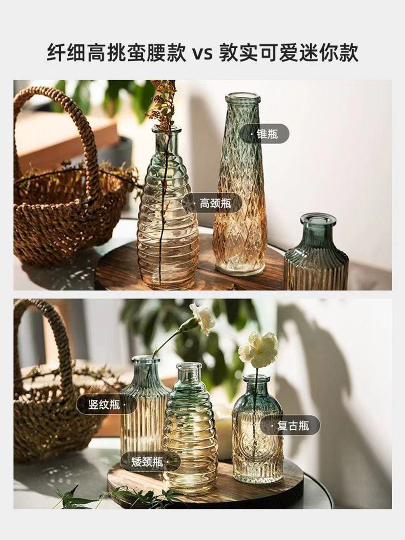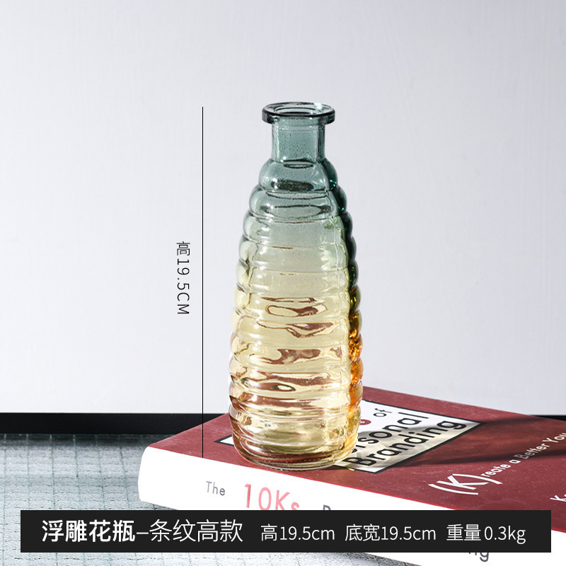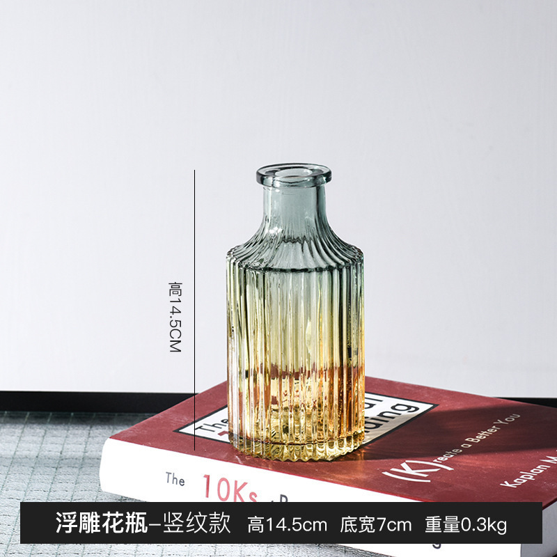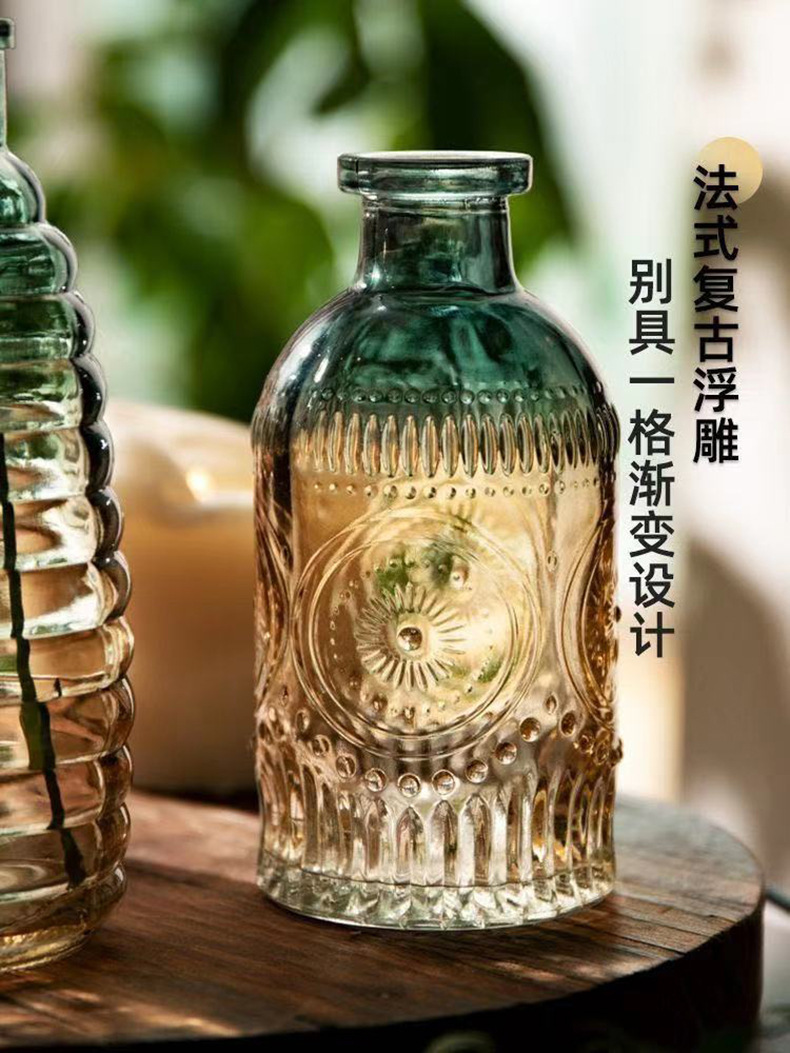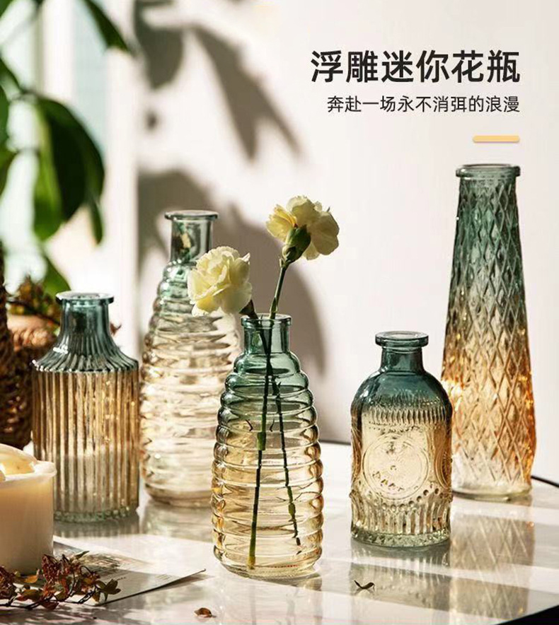 빈티지 양각 투명 스몰 사이즈 꽃병 거실 장식 그라디언트 컬러 홈 꽃 장식품 프랑스 스타일 수경 유리 병스토어 가기