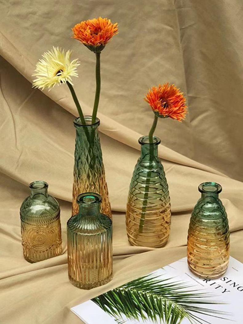 빈티지 양각 투명 스몰 사이즈 꽃병 거실 장식 그라디언트 컬러 홈 꽃 장식품 프랑스 스타일 수경 유리 병