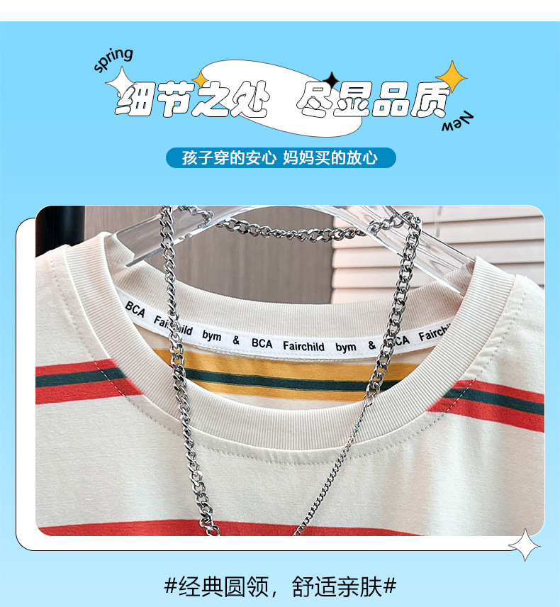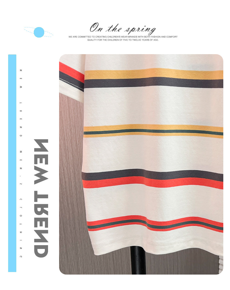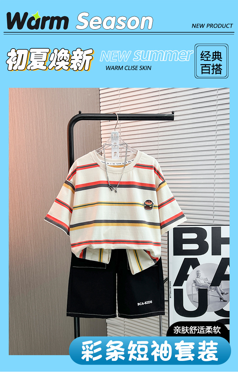 소년 여름 줄무늬 반팔 양복 2024 새로운 순수 코튼 얇은 작업복 중대형 어린이 캐주얼 의류를위한 투피스 세트