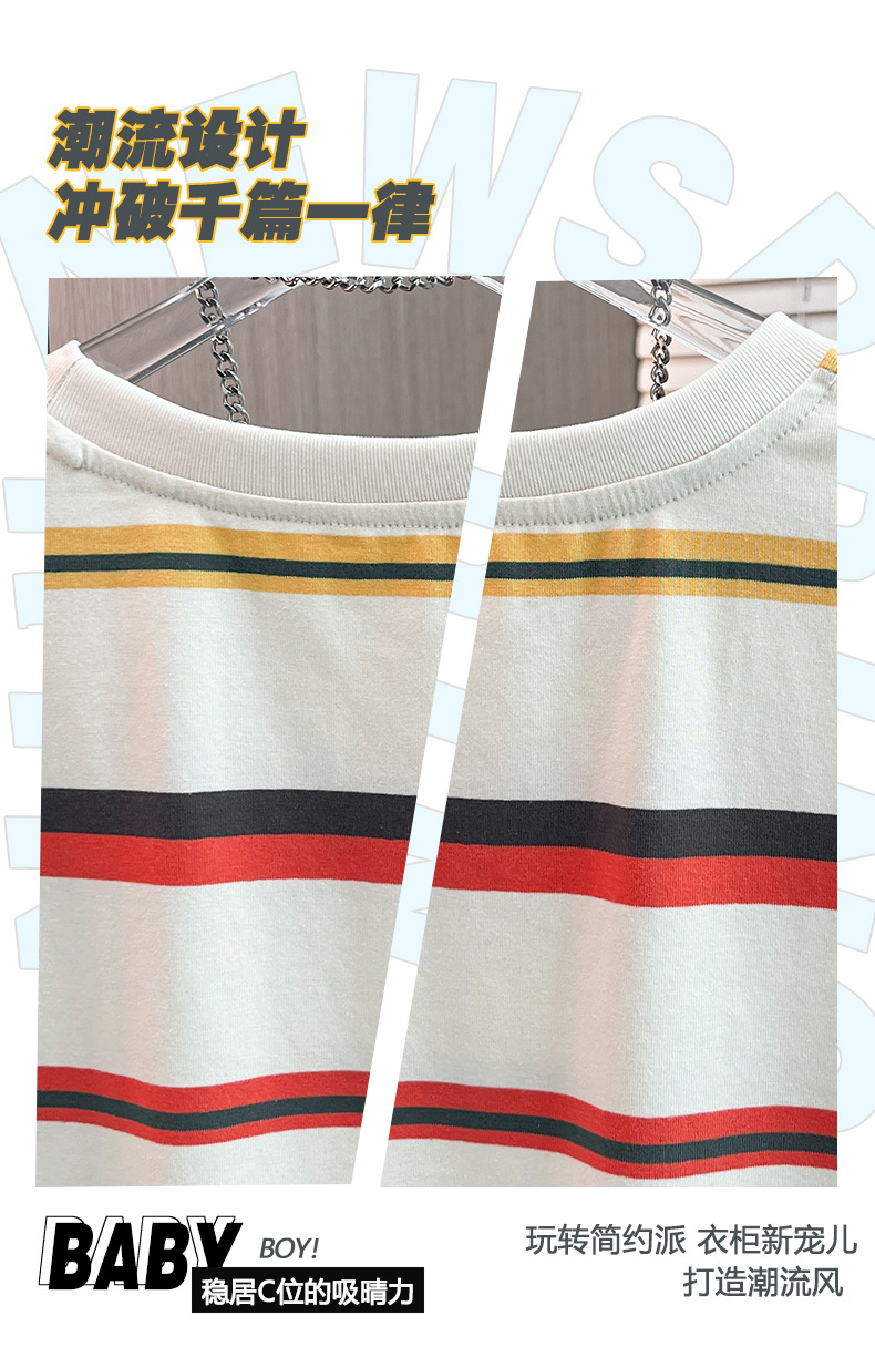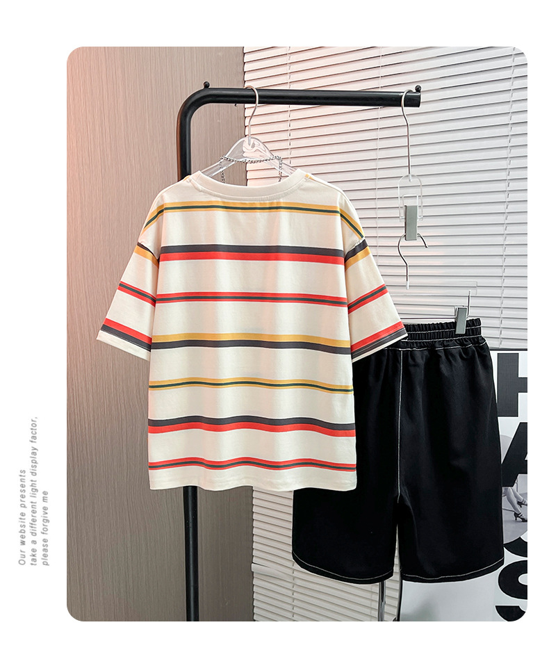 소년 여름 줄무늬 반팔 양복 2024 새로운 순수 코튼 얇은 작업복 중대형 어린이 캐주얼 의류를위한 투피스 세트스토어 가기