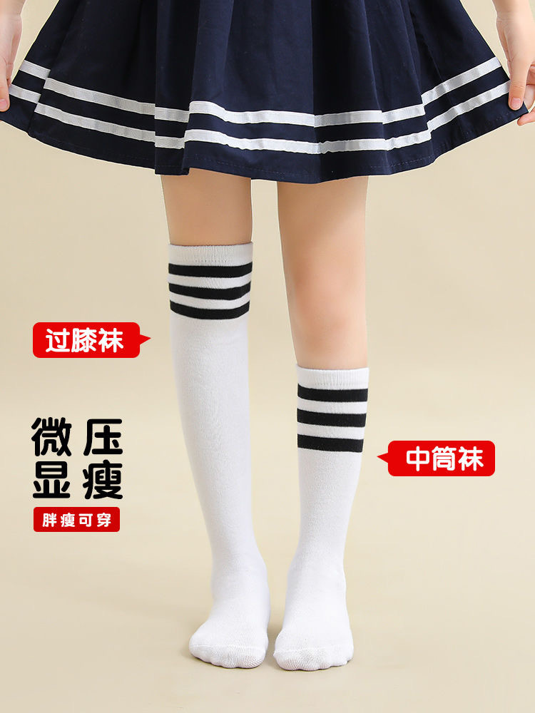 소녀 스타킹 여름 얇은 땀 흡수 줄무늬 어린이 양말 미드 튜브 안티 모기 무릎 양말 소년과 학생 긴 양말