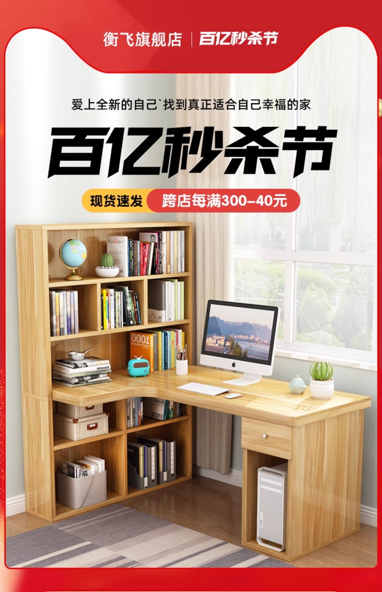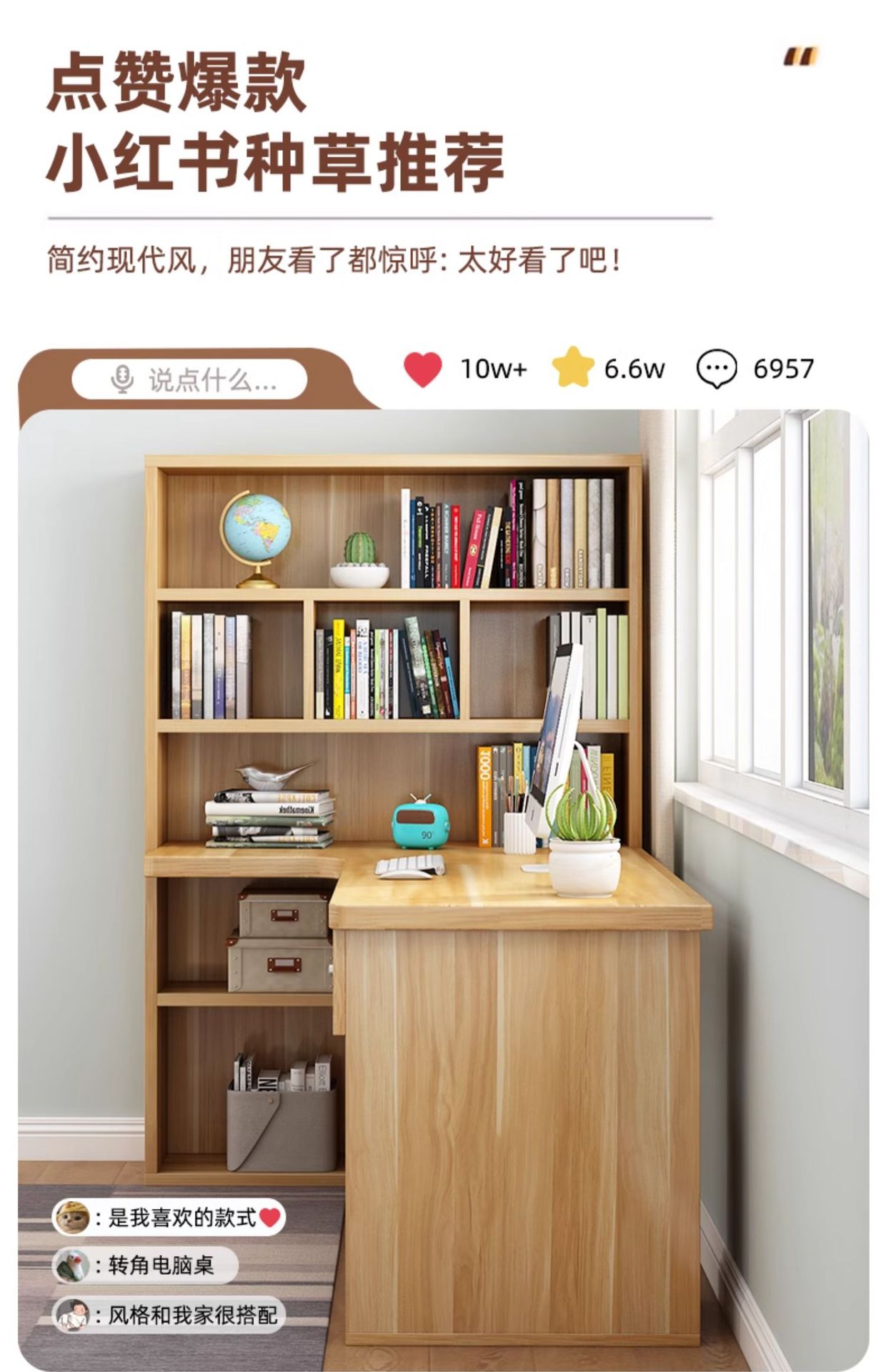 L $ H 단단한 나무 코너 책상 책장 통합 침실 어린이 쓰기 책상 간단한 데스크탑 사무실 전기를 학습스토어 가기