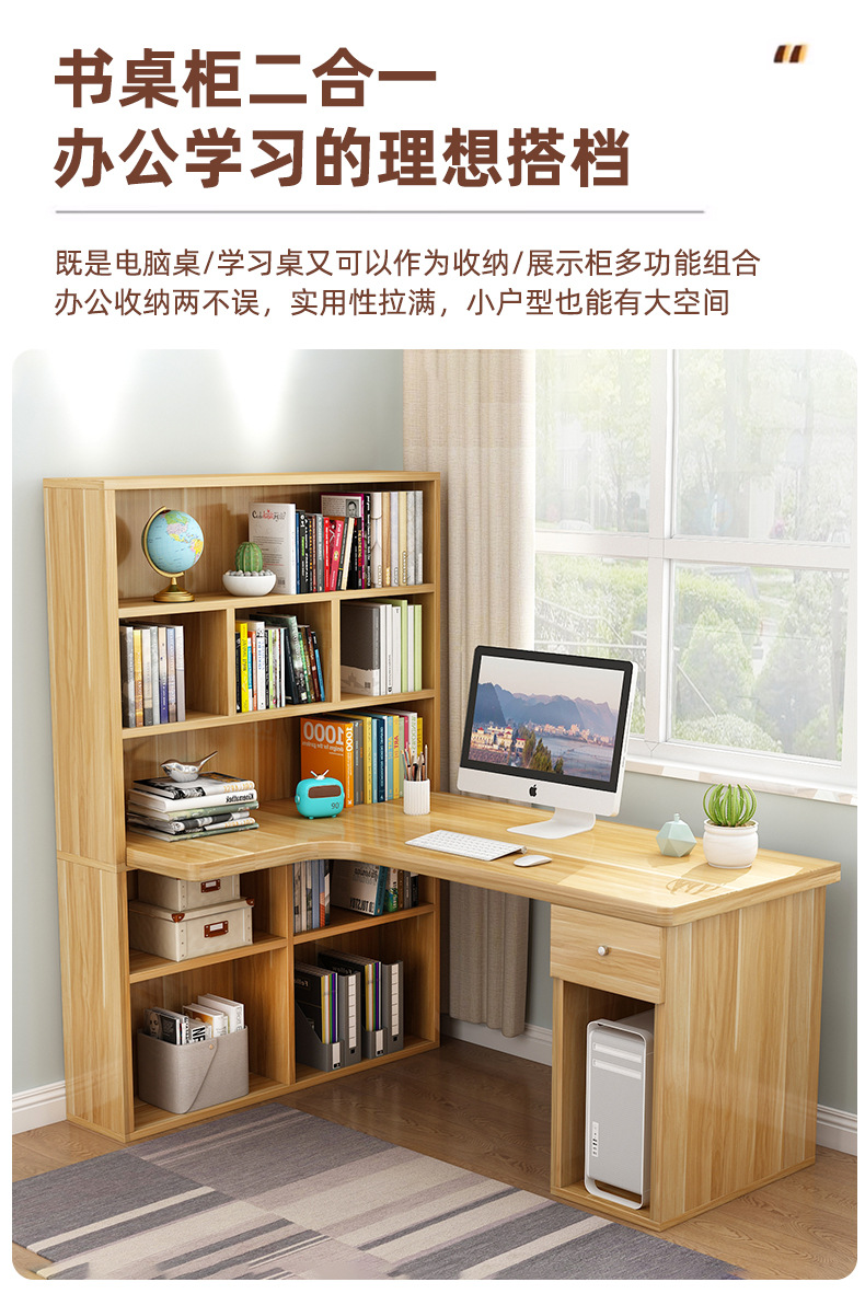 L $ H 단단한 나무 코너 책상 책장 통합 침실 어린이 쓰기 책상 간단한 데스크탑 사무실 전기를 학습