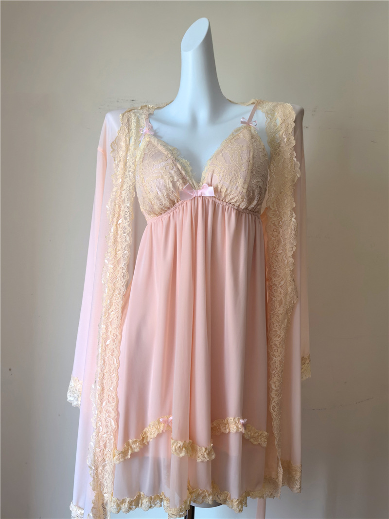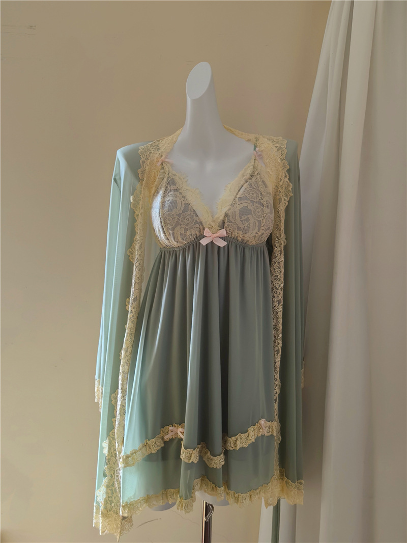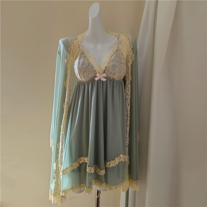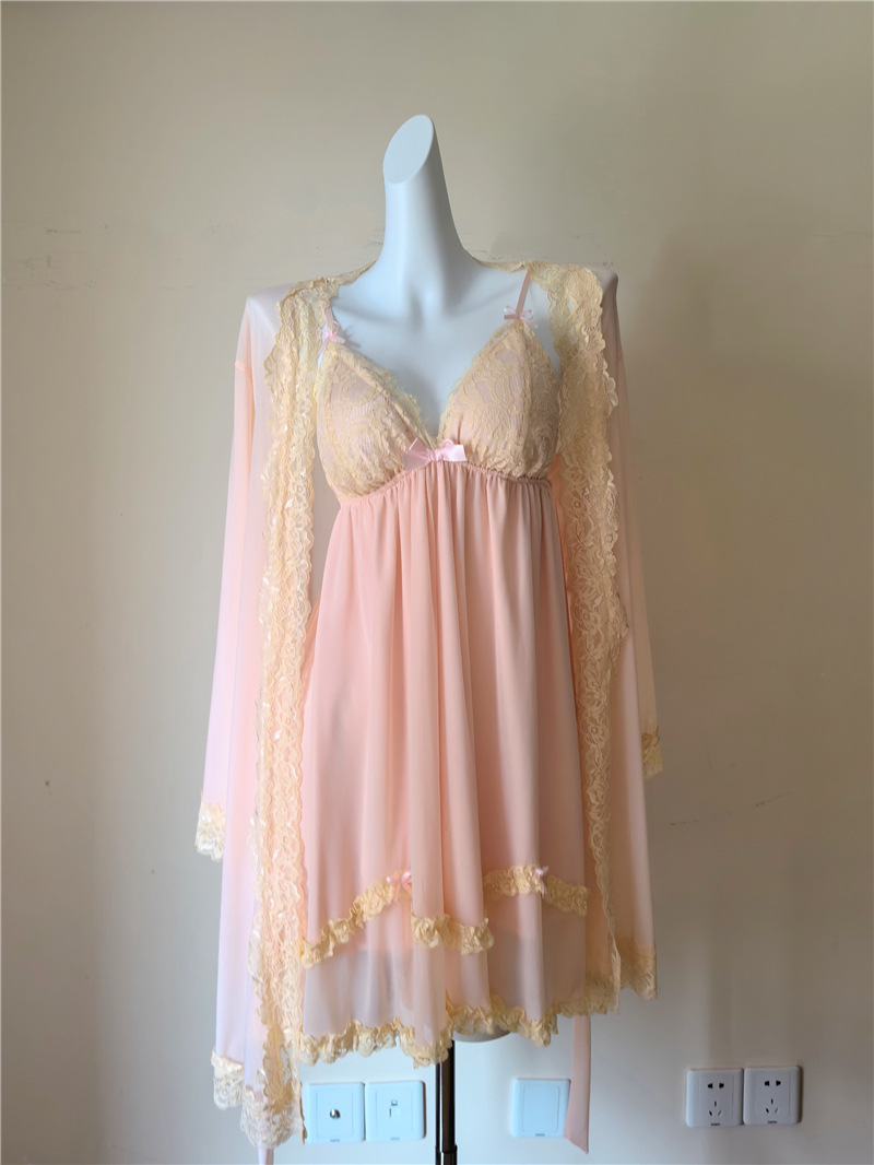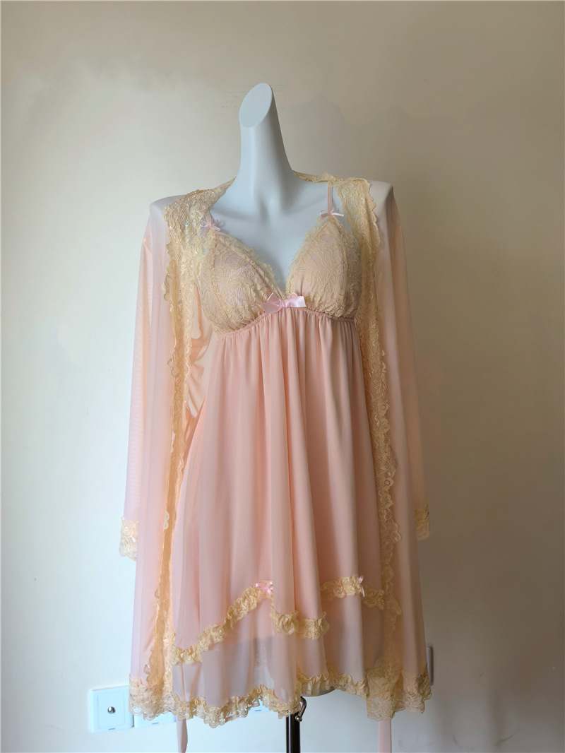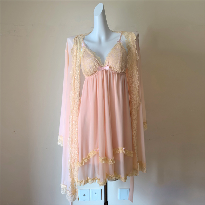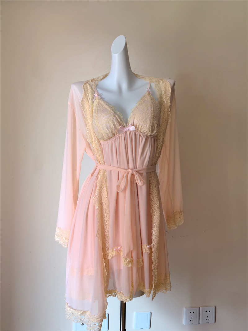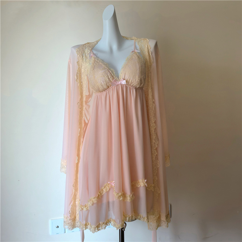 1053 플러스 사이즈 지방 mm250 kg 메쉬 파자마 여성용 콘돌 벨트 잠옷 세트 가슴 패드가있는 달콤한 투피스 세트