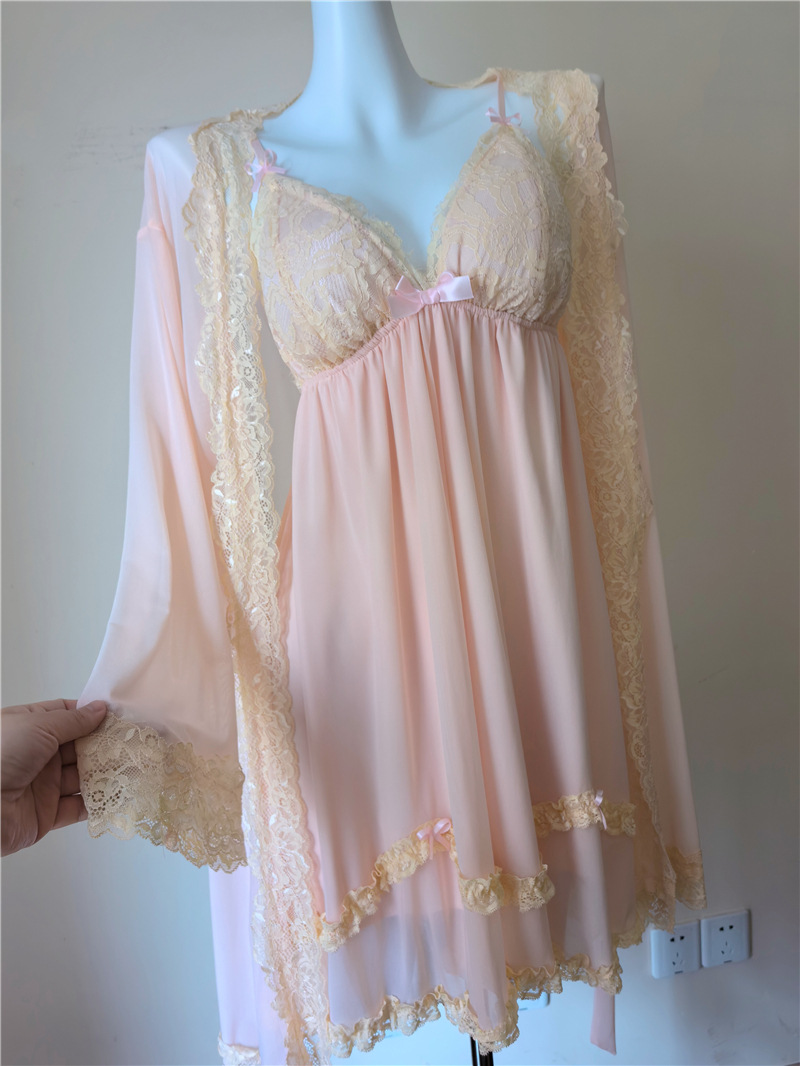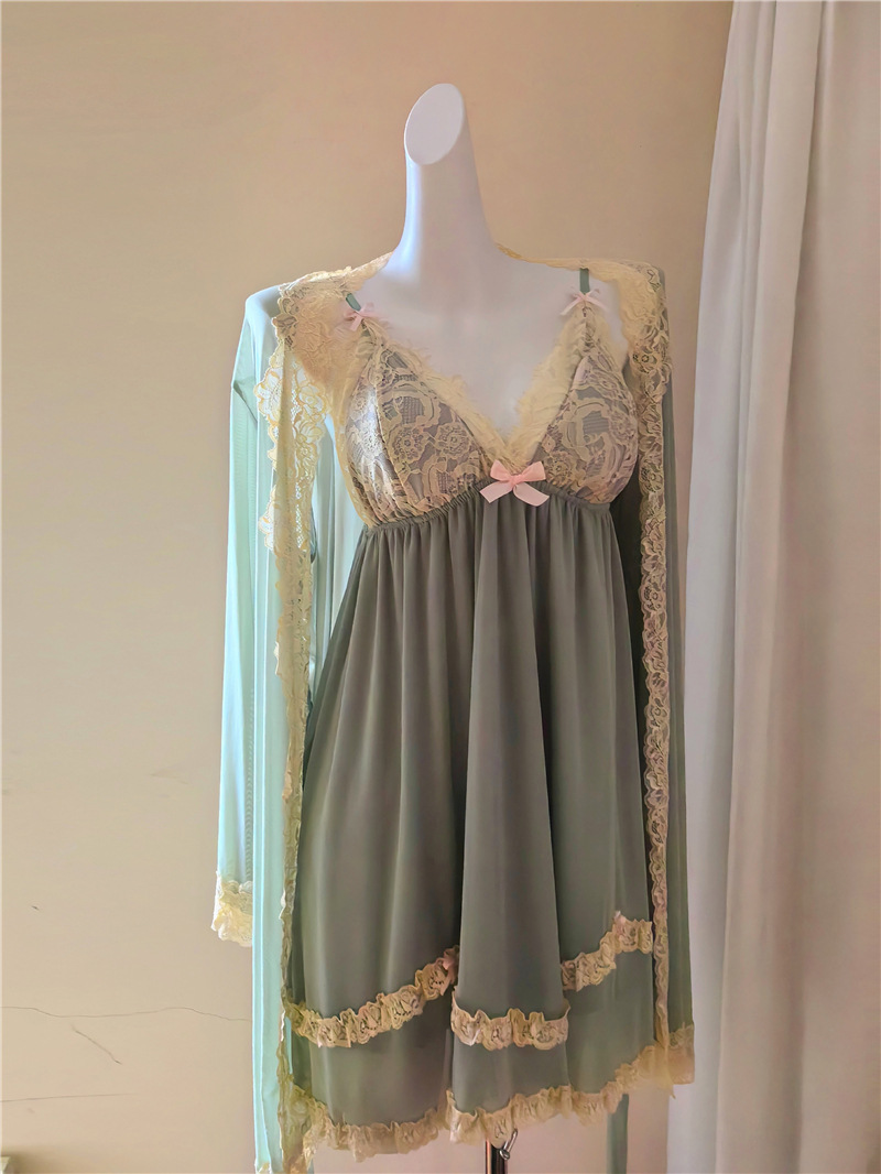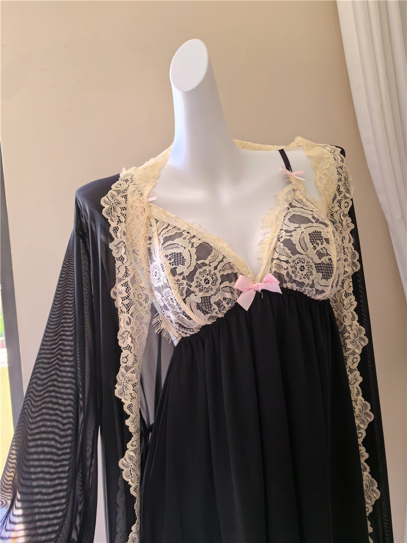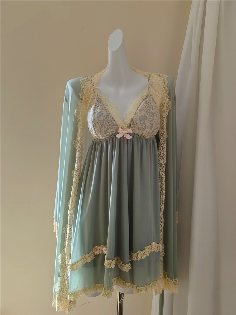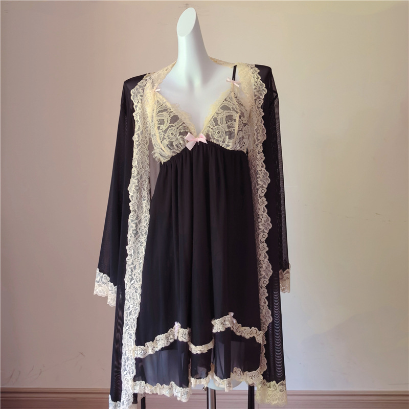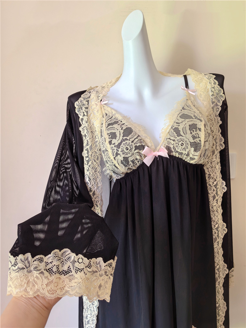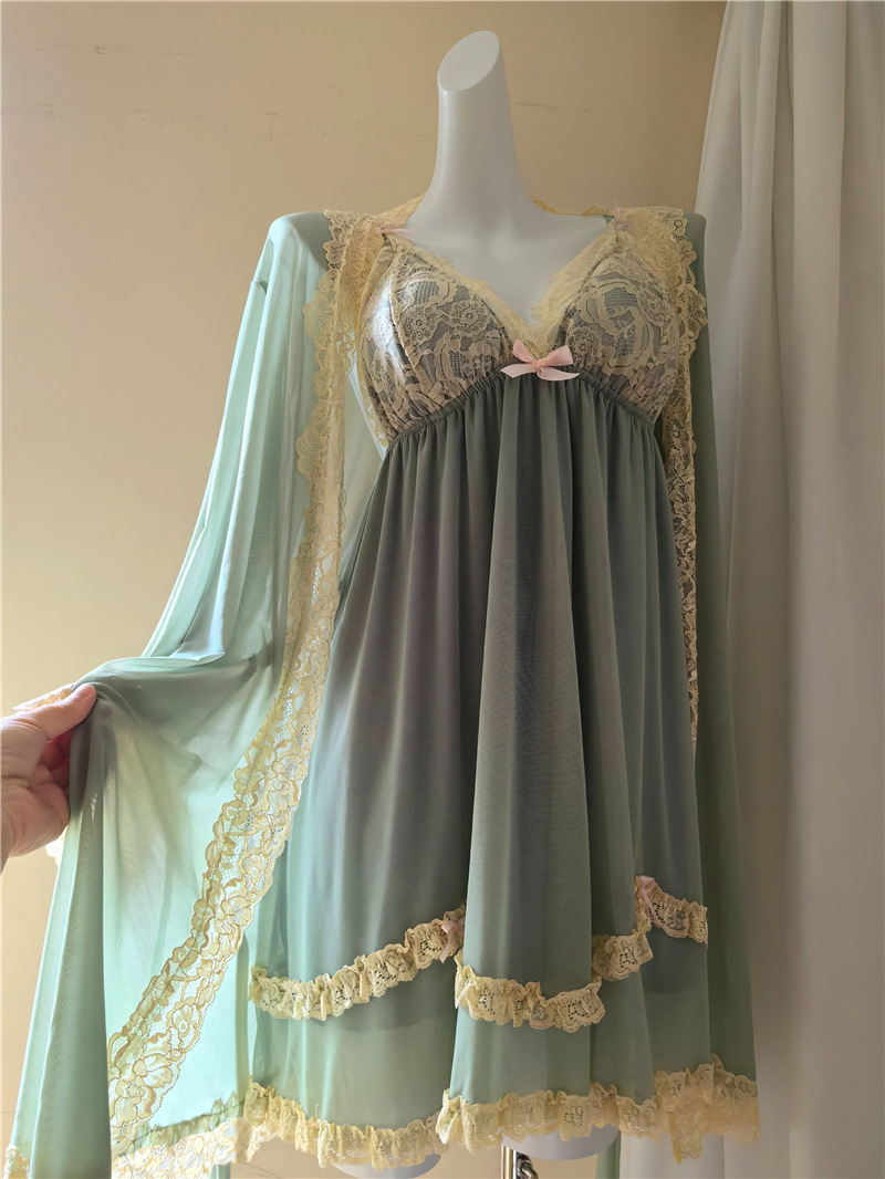 1053 플러스 사이즈 지방 mm250 kg 메쉬 파자마 여성용 콘돌 벨트 잠옷 세트 가슴 패드가있는 달콤한 투피스 세트