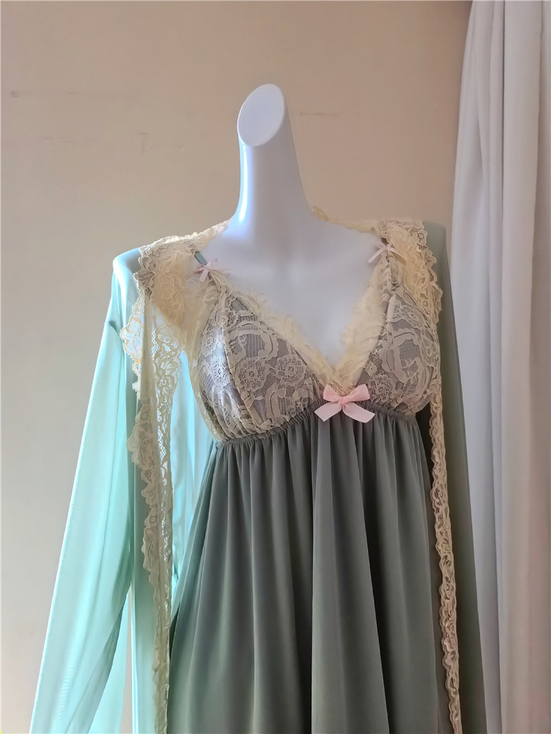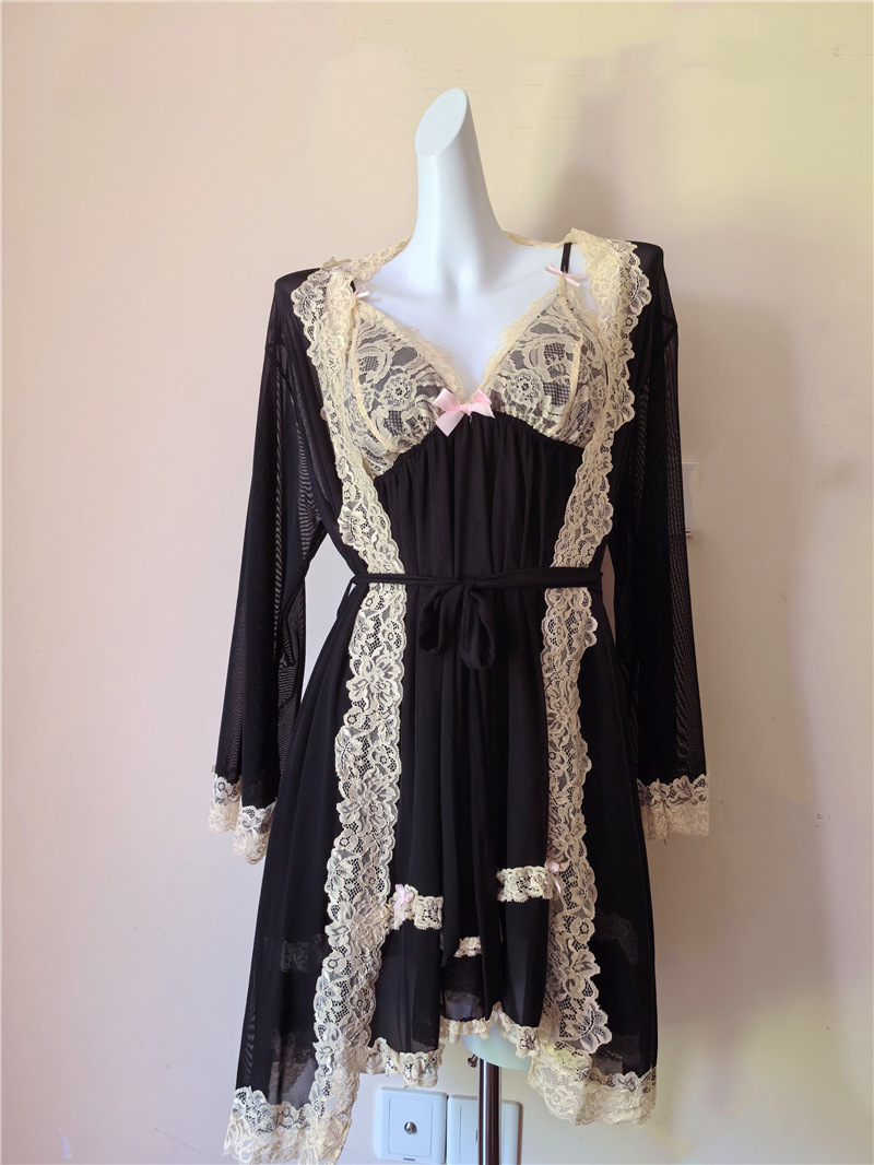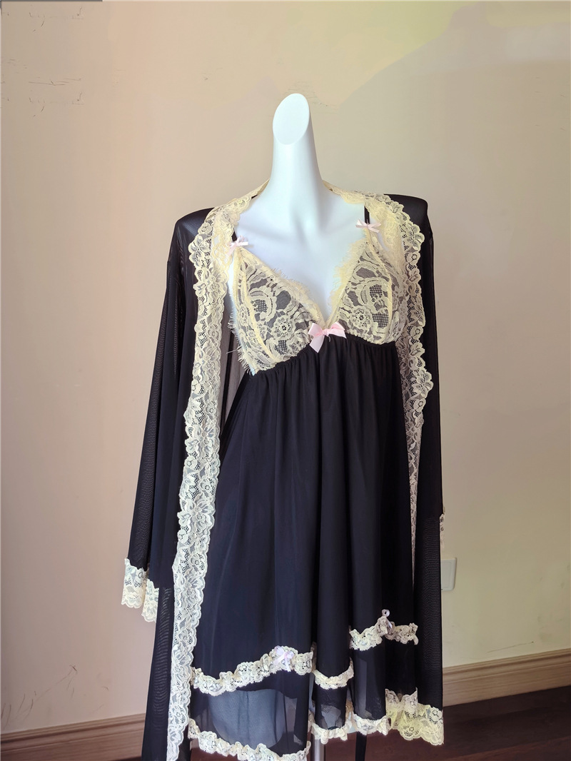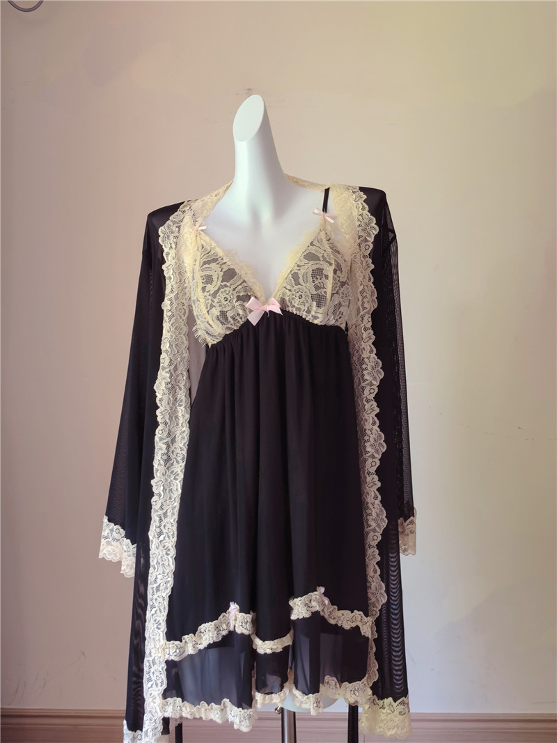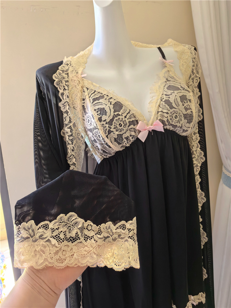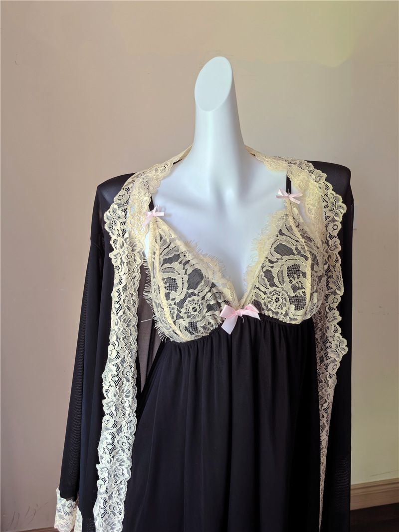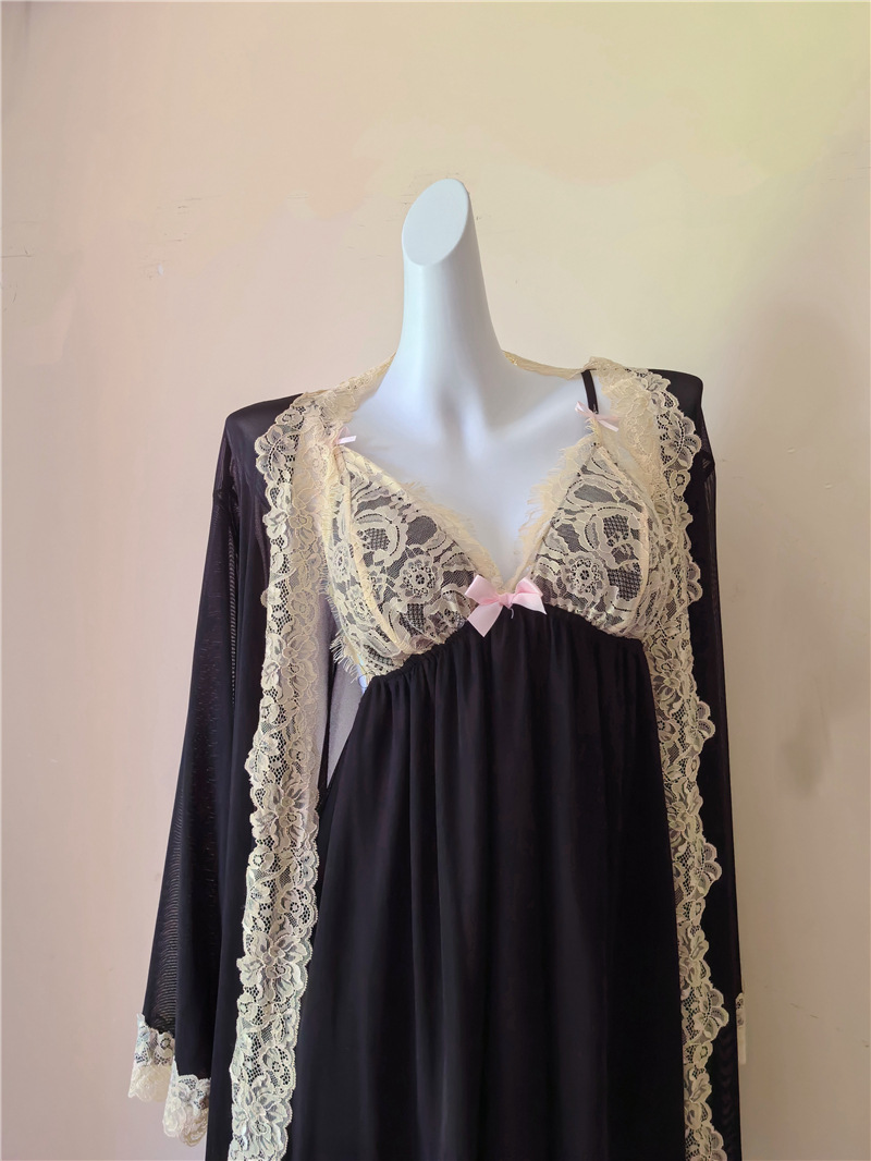 1053 플러스 사이즈 지방 mm250 kg 메쉬 파자마 여성용 콘돌 벨트 잠옷 세트 가슴 패드가있는 달콤한 투피스 세트