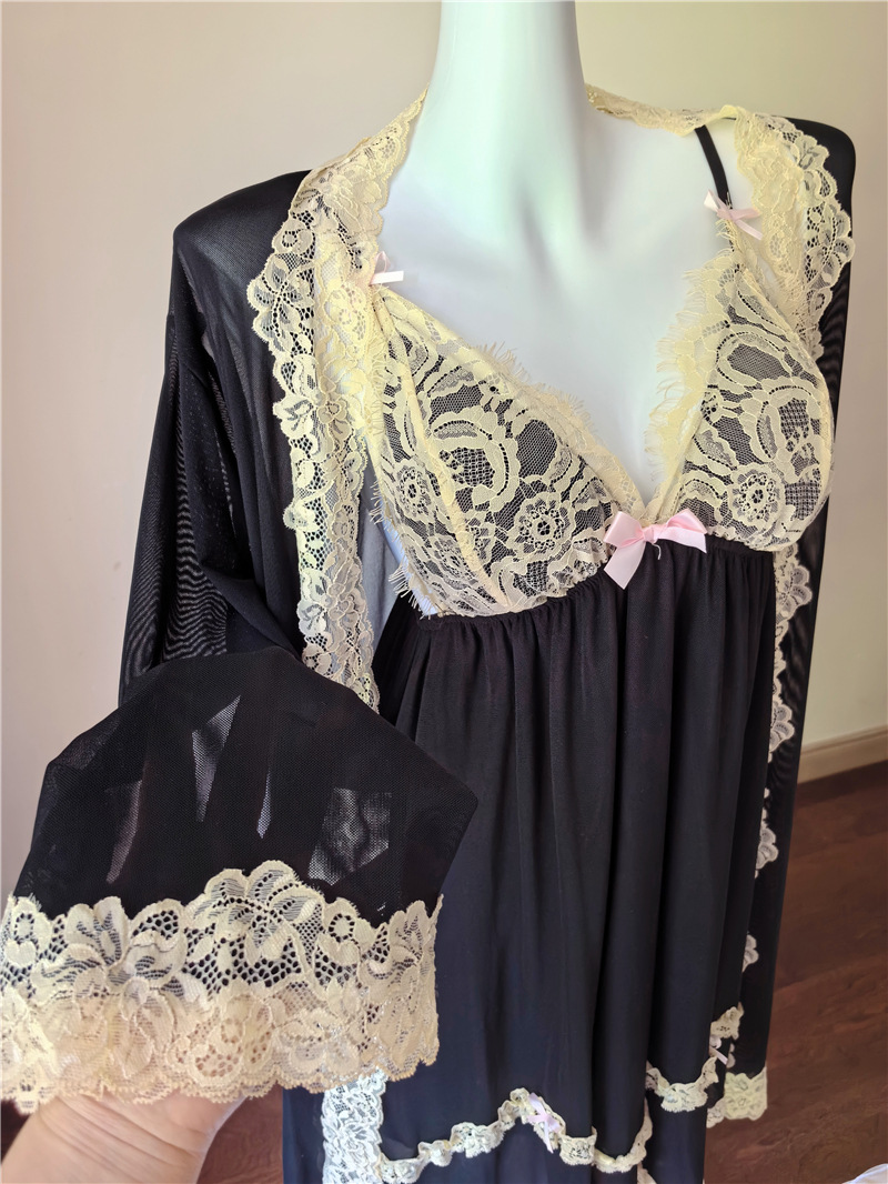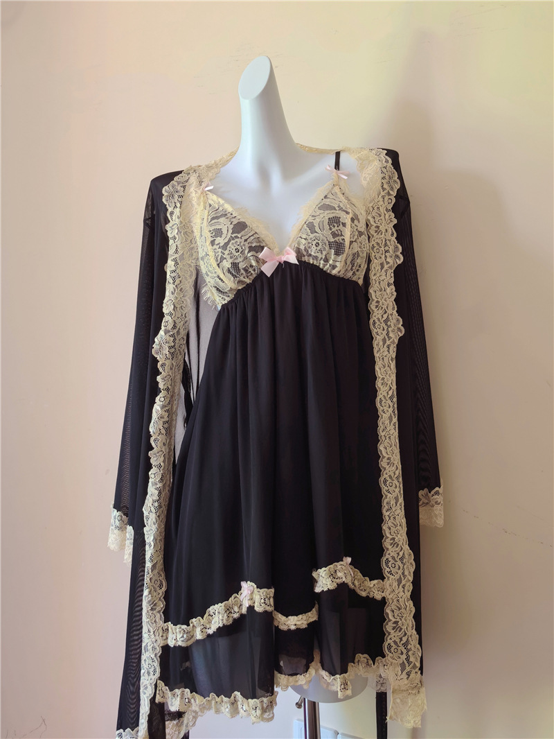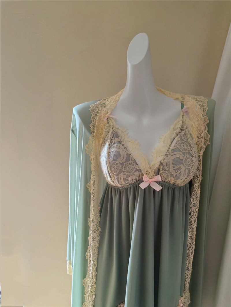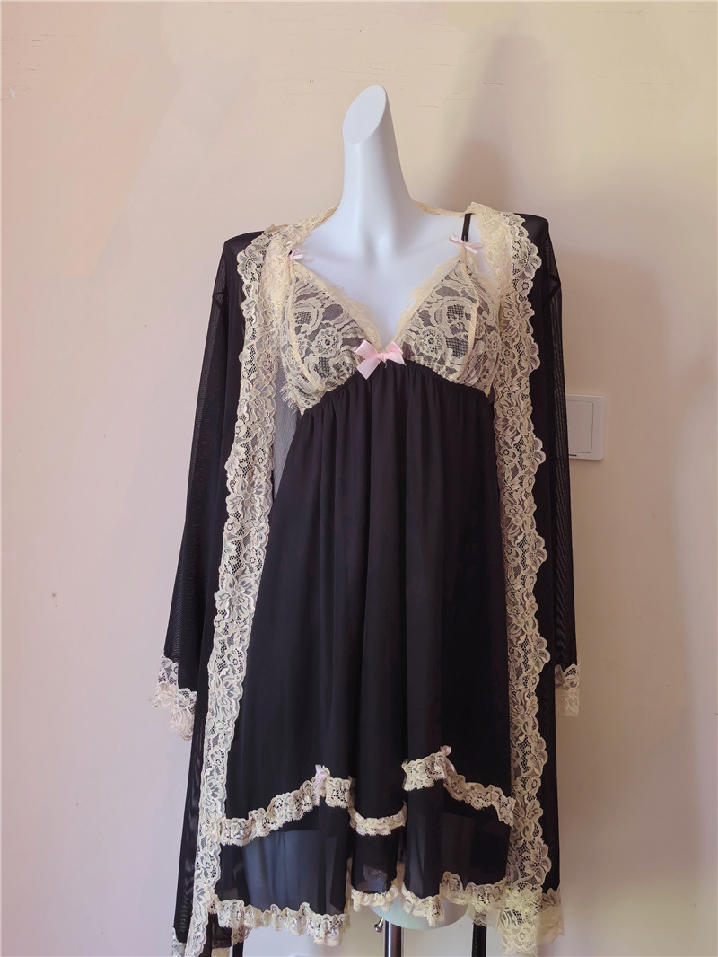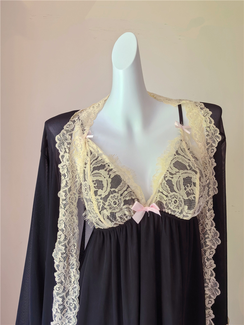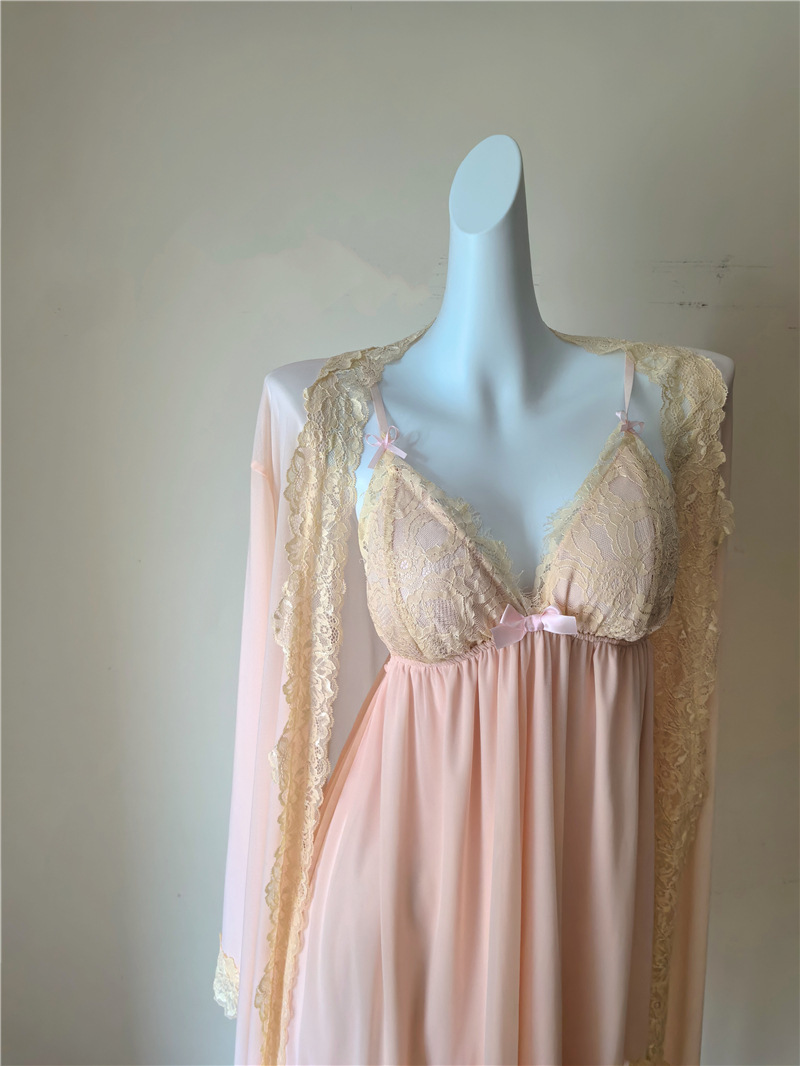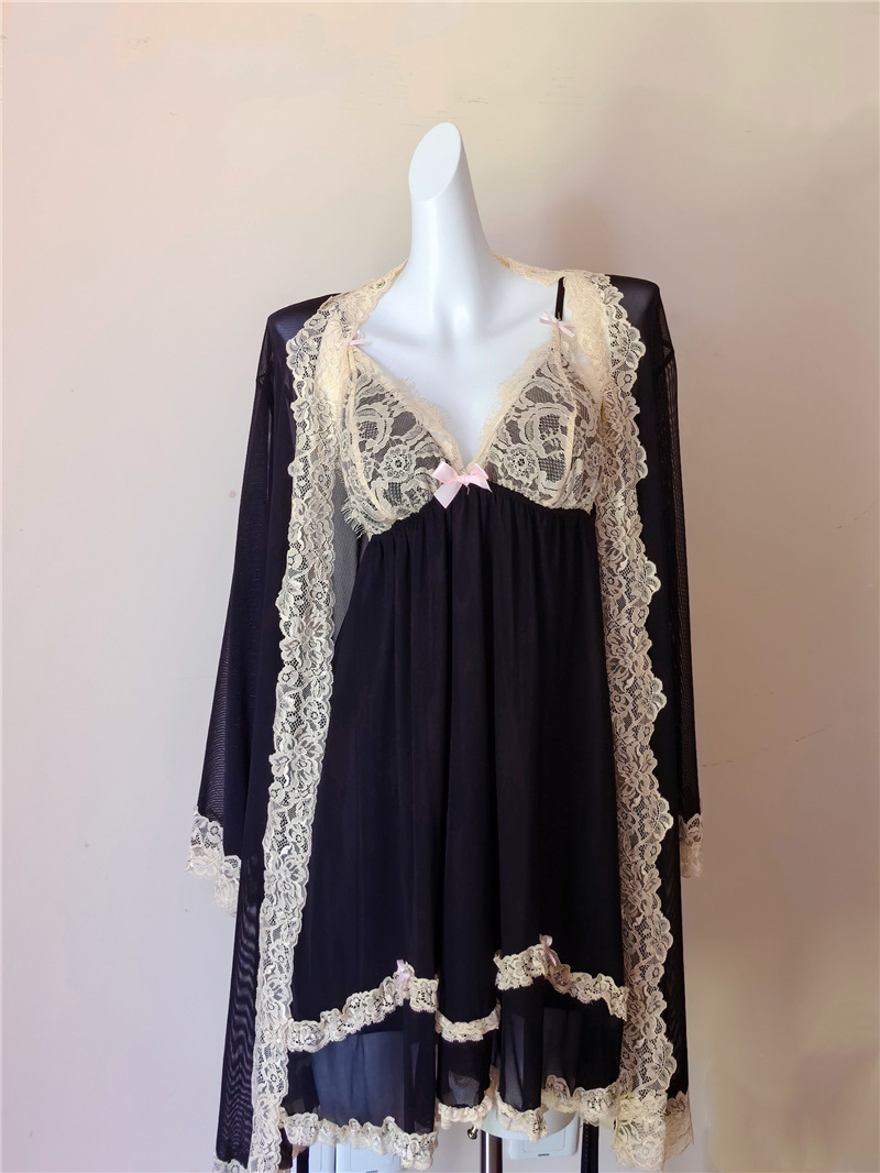 1053 플러스 사이즈 지방 mm250 kg 메쉬 파자마 여성용 콘돌 벨트 잠옷 세트 가슴 패드가있는 달콤한 투피스 세트