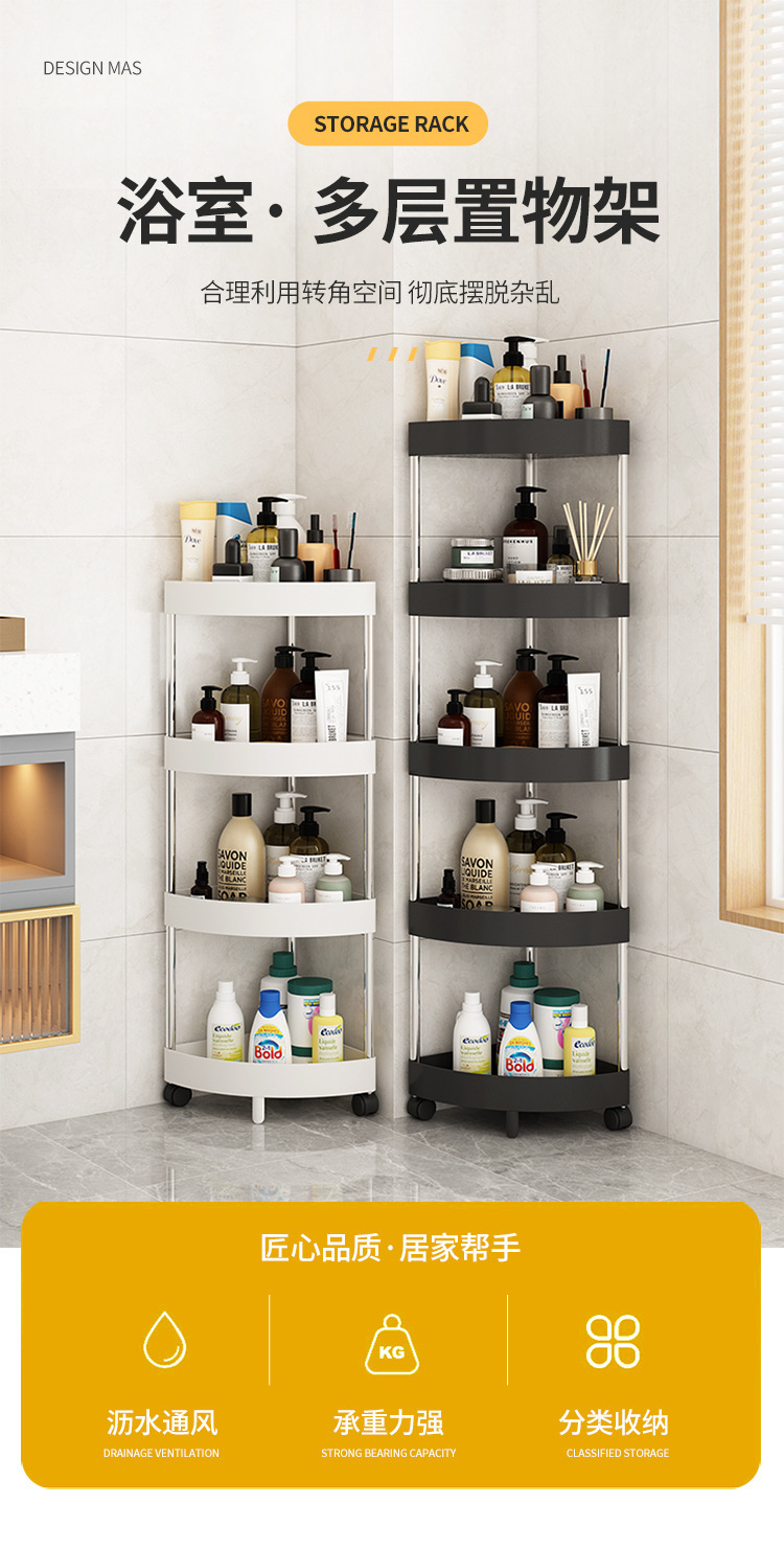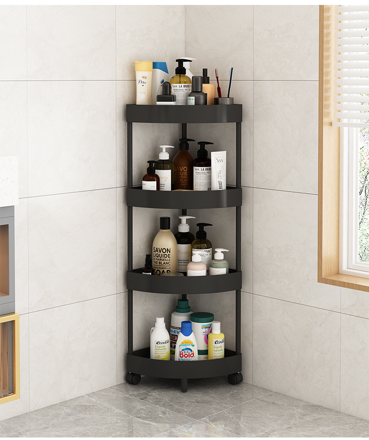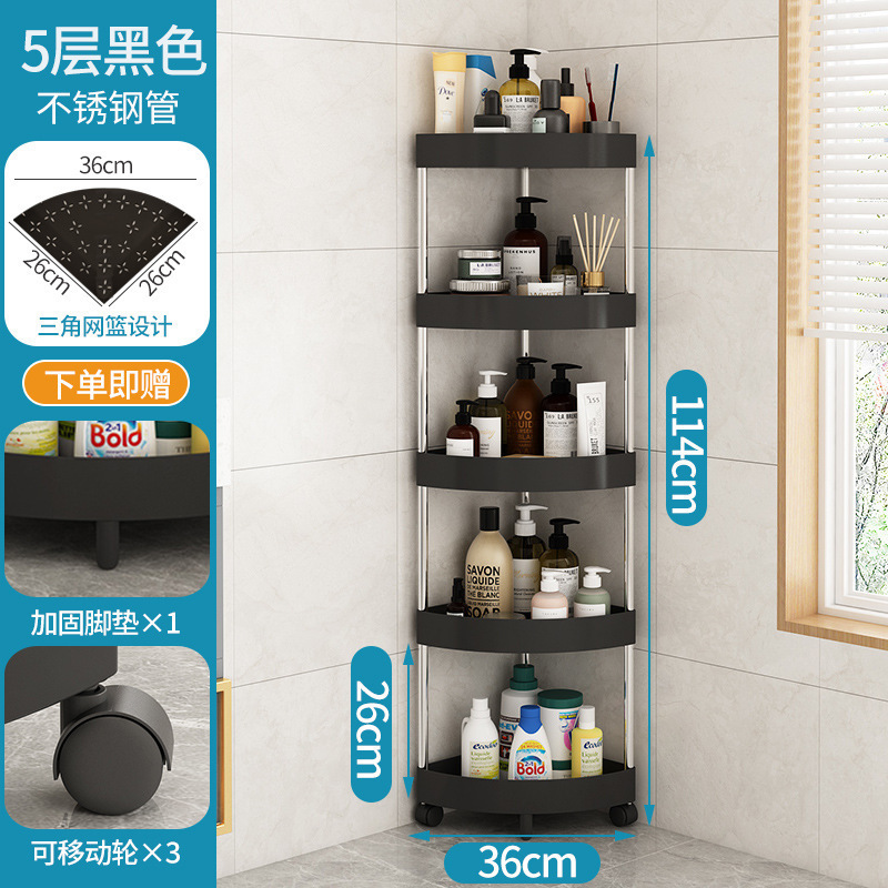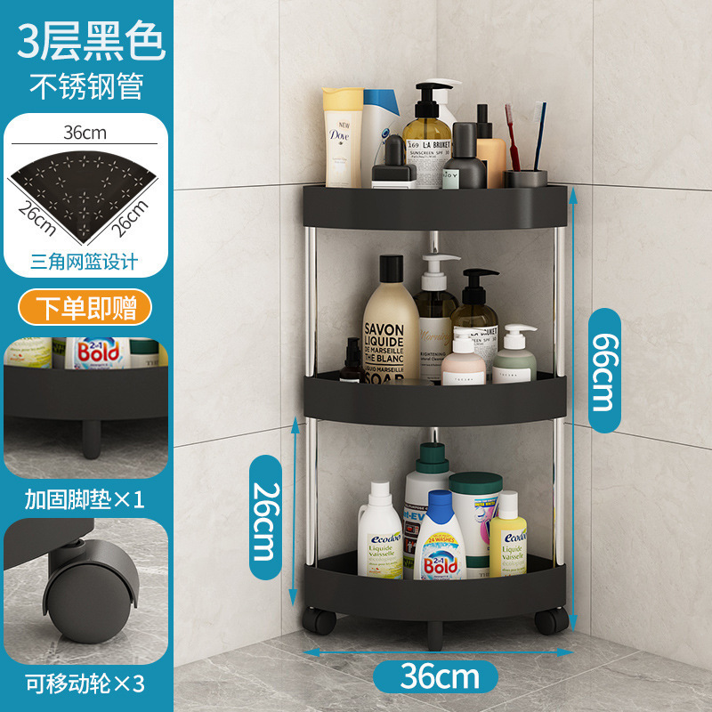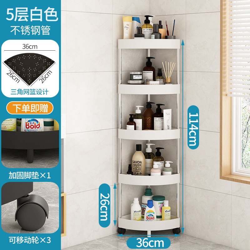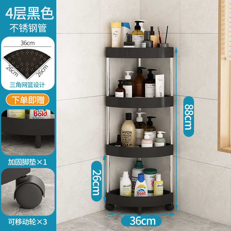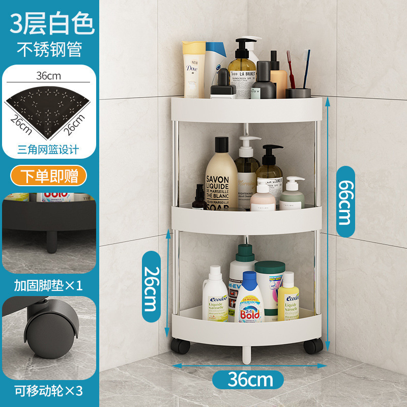 욕실 삼각형 저장 랙 화장실 바닥 휠 이동식 코너 화장실 욕조 용품 보관 랙스토어 가기