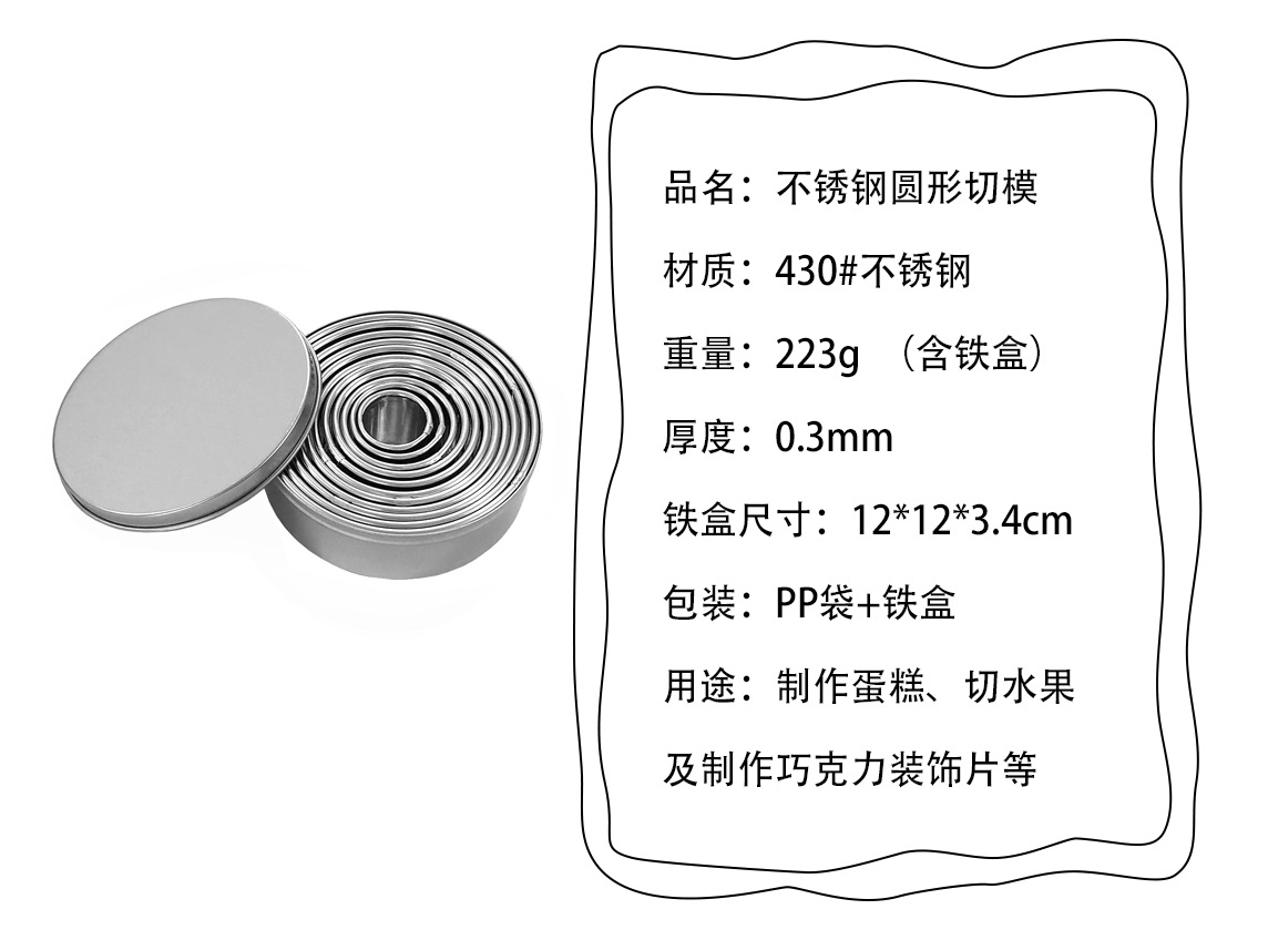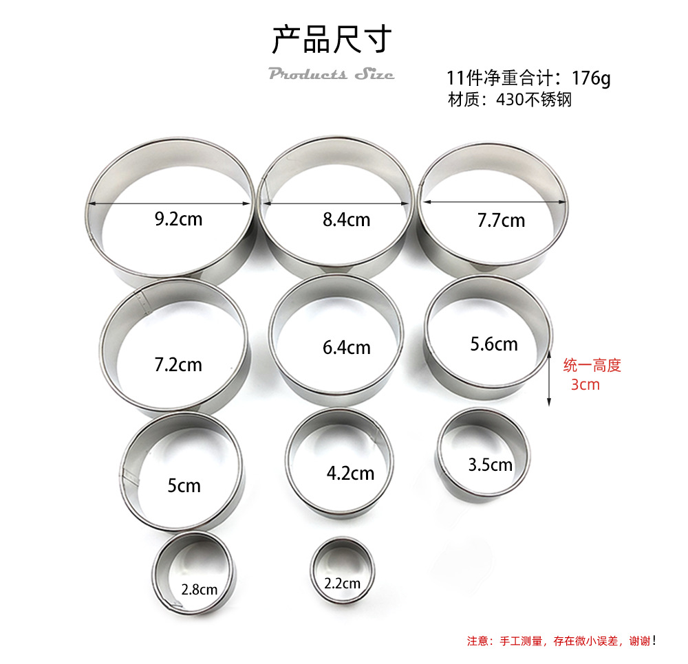 베이킹 케이크 비스킷 금형 두꺼운 스테인레스 스틸 만두 스킨 커팅 금형 라운드 케이크 무스 링 11 피스 세트