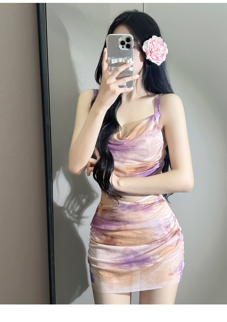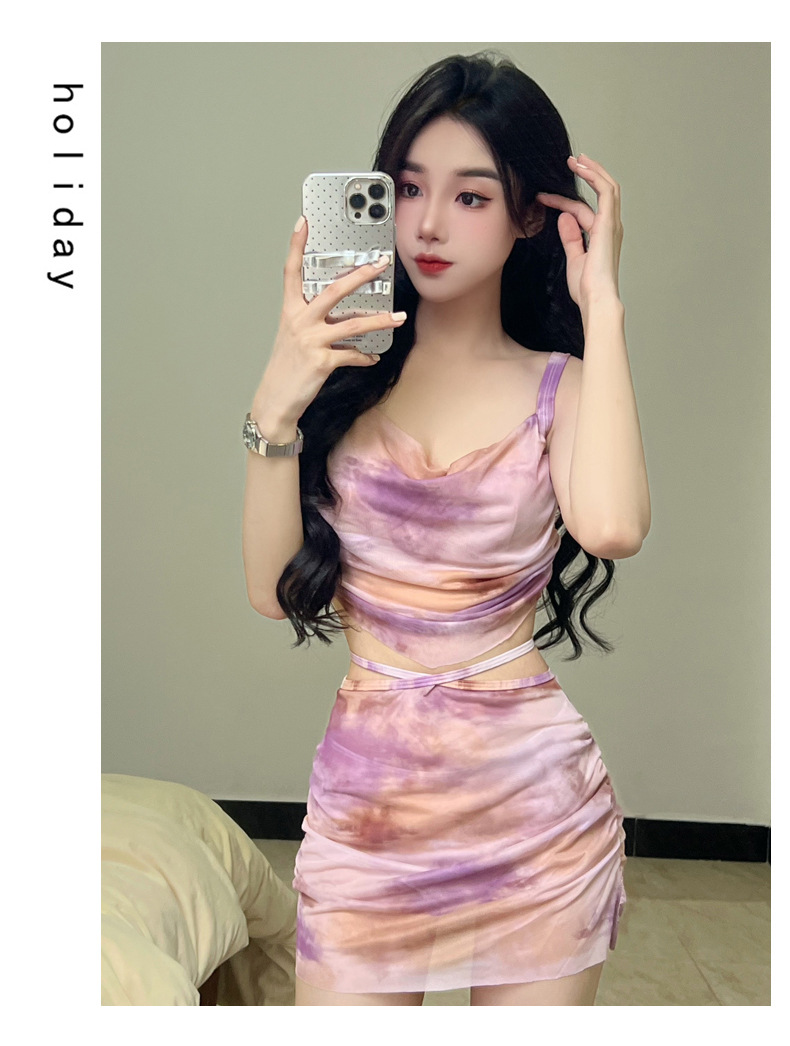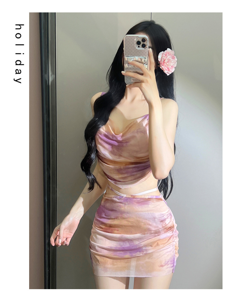뜨거운 소녀 비키니 수영복 여성용 3 피스 세트 해변 휴일 긴 원피스 작은 가슴 수집 섹시한 온천 수영복 스틸 브래킷스토어 가기