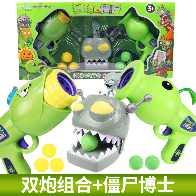 정품 공장 대 좀비 장난감 총 대형 개틀링 기관총 완두콩 캐논 어린이를위한 옥수수 공압 총 선물 상자