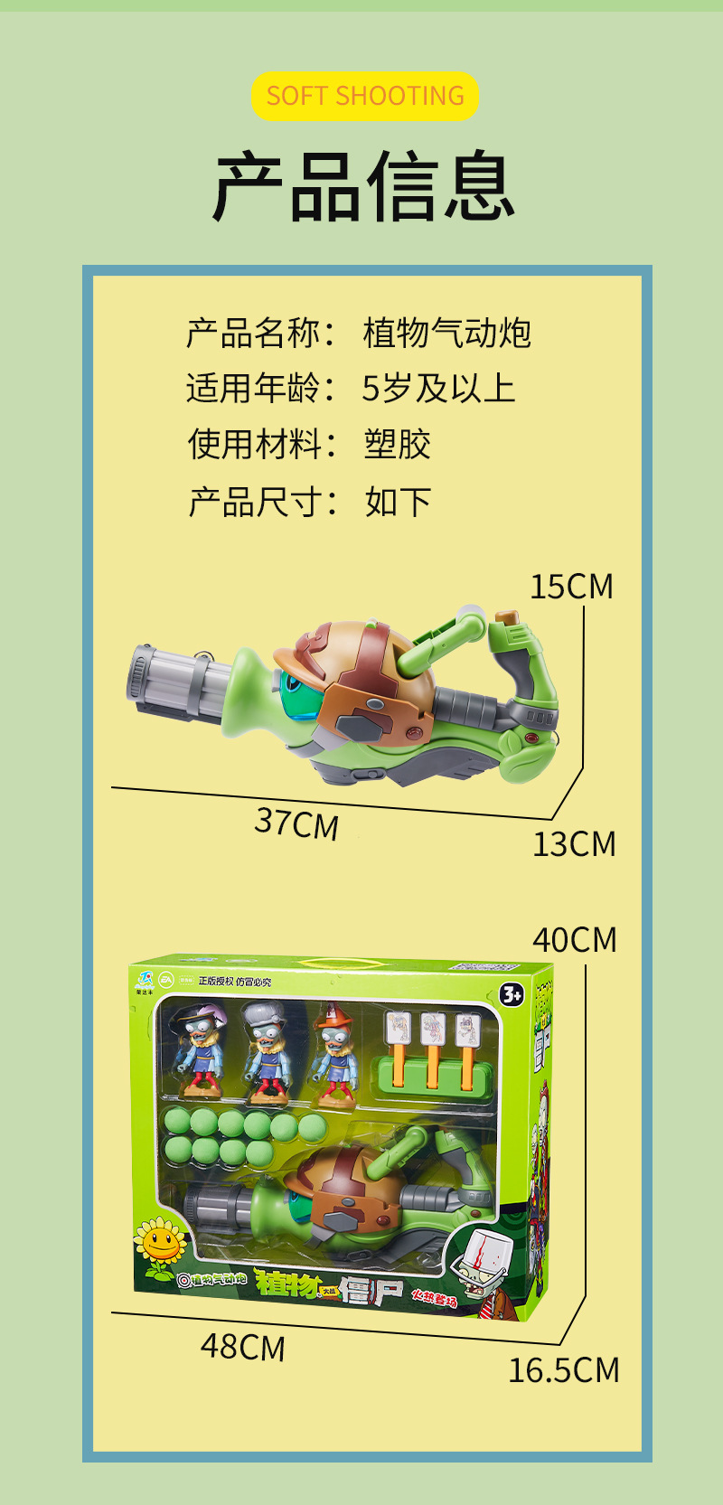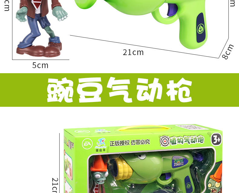 정품 공장 대 좀비 장난감 총 대형 개틀링 기관총 완두콩 캐논 어린이를위한 옥수수 공압 총 선물 상자스토어 가기