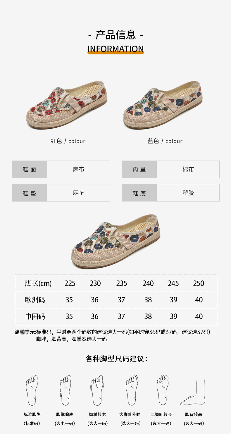 남성 캐주얼 신발 트렌드 조커 여성 신발 페달 린넨 게으른 신발 국가 스타일 중국 의류 신발스토어 가기