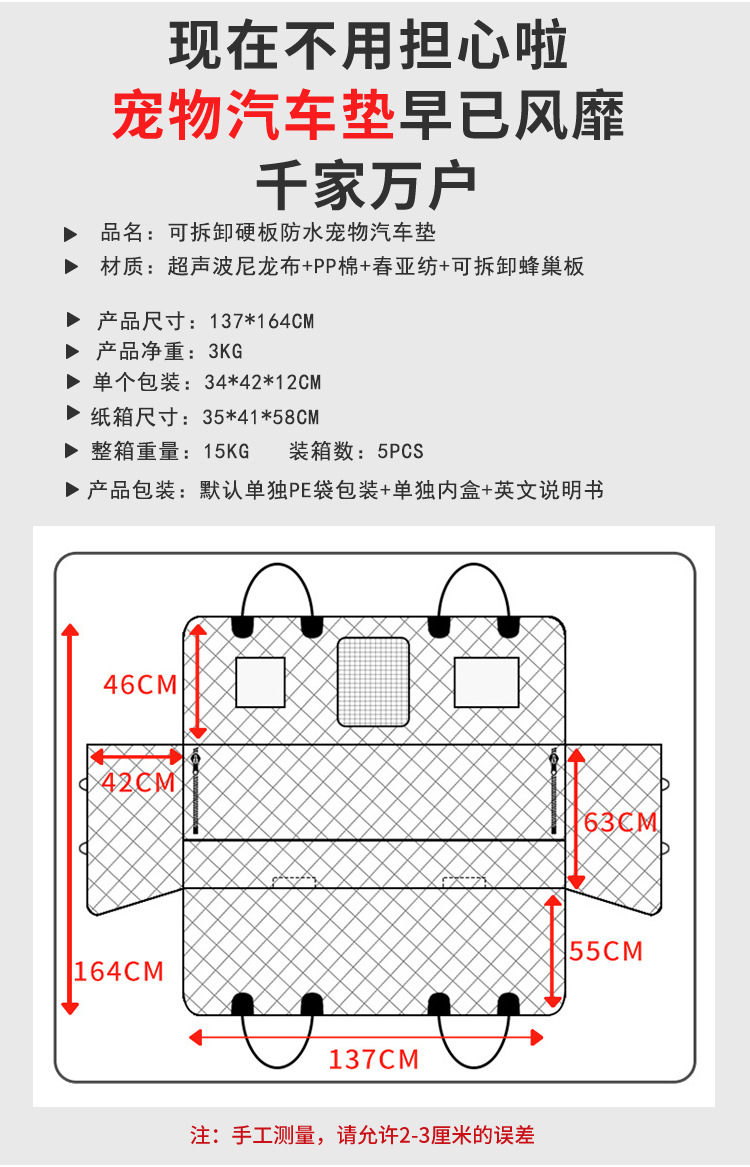 4개의 견고한 보드로 제작된, 내하중 늘린 차량용 강아지 매트, 자동차 강아지 해먹, 애완동물 뒷좌석 확장 매트, 미끄럼 방지 및 통기성스토어 가기