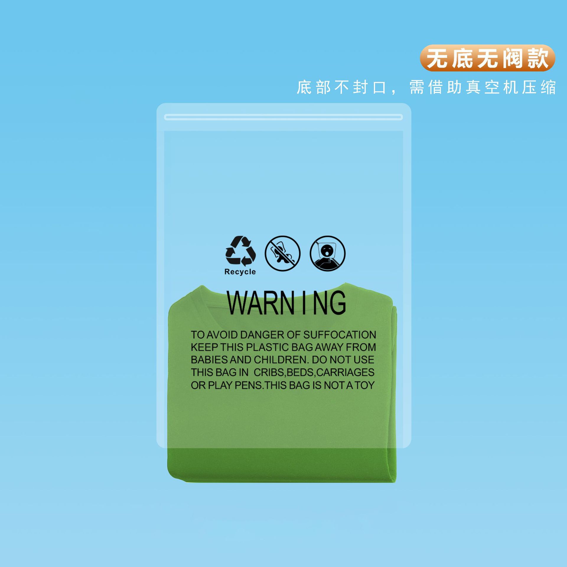 现货警示语拉链袋亚马逊服装真空包装塑料袋透明PE服饰外套压缩袋