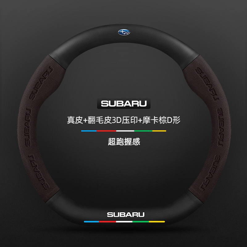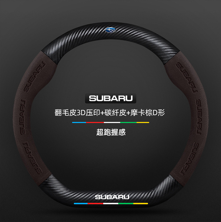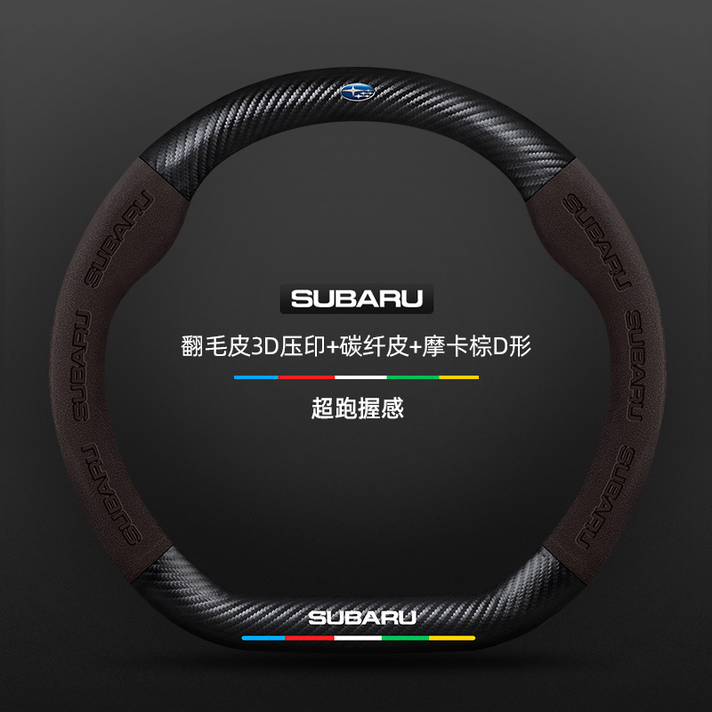 • 스웨이드 3D 엠보싱 탄소 섬유 가죽 모카 다크 브라운 D 자형 스바루 로고
