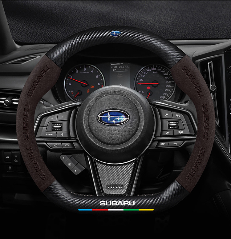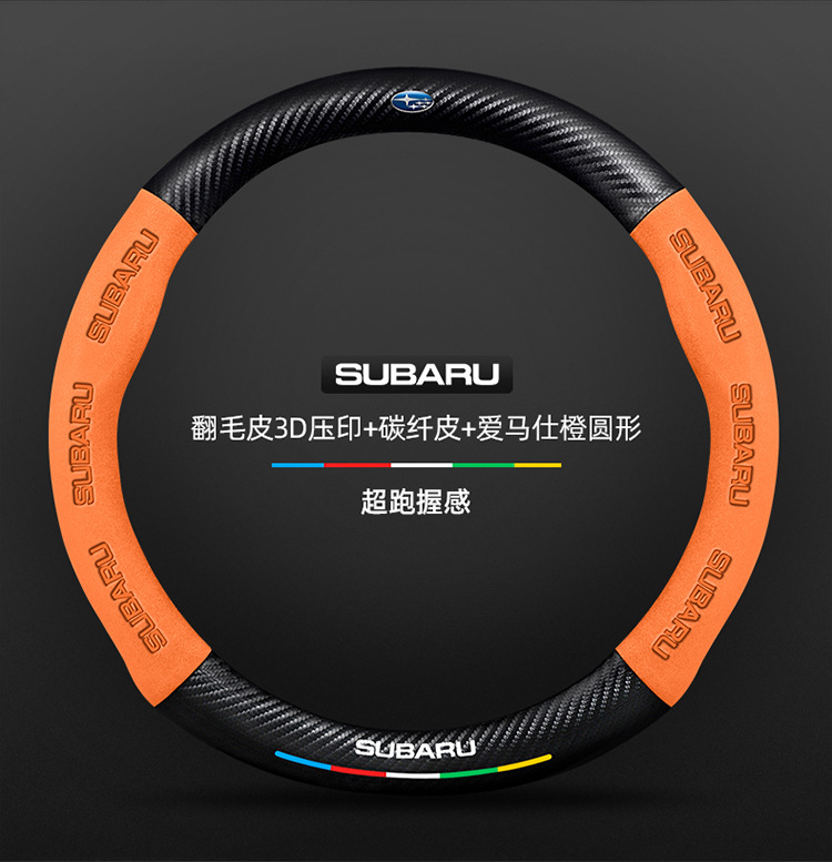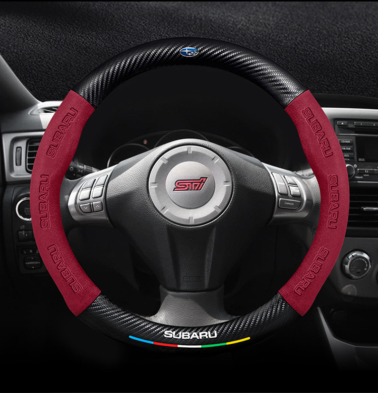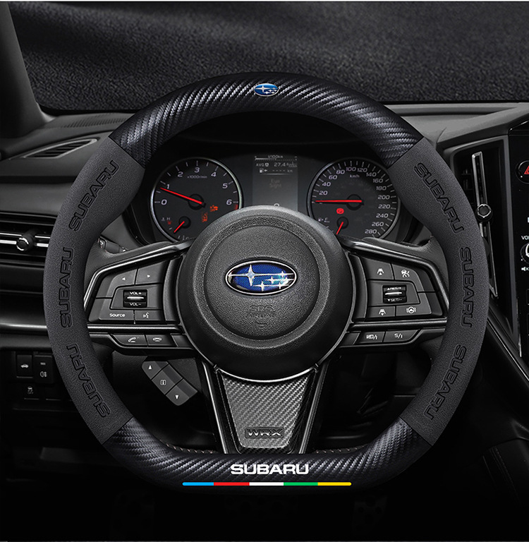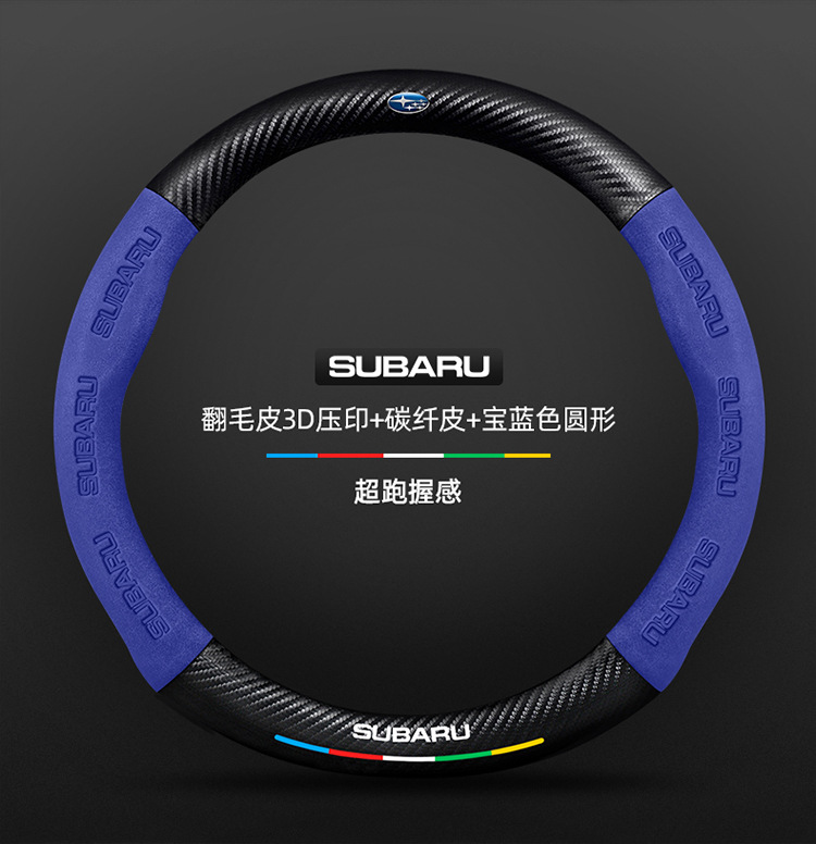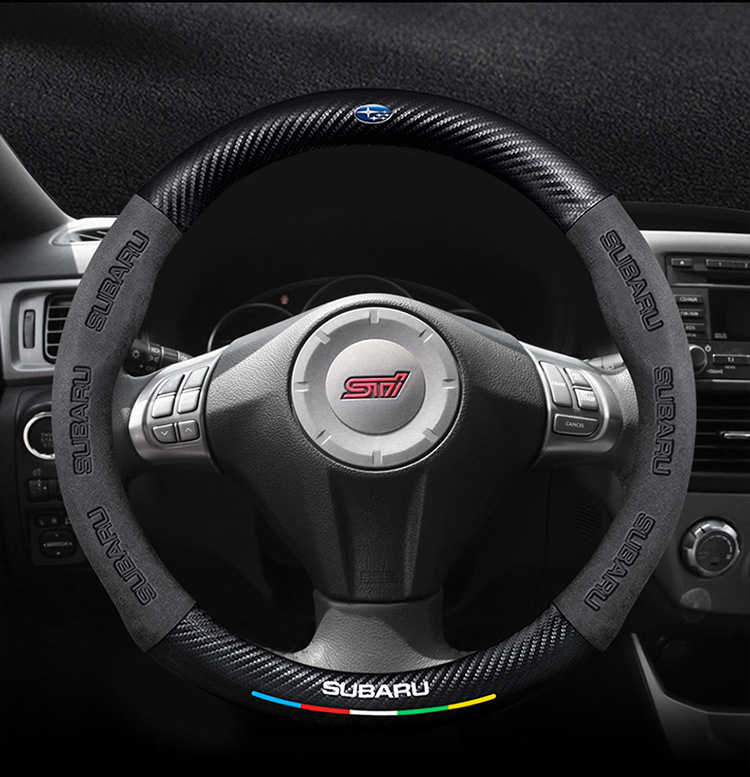 스바루 WRX 스티어링 휠 커버 08-23 사계절 탄소 섬유 울트라 얇은 가죽 헤어 터닝 자동차 핸들 커버에 적합스토어 가기