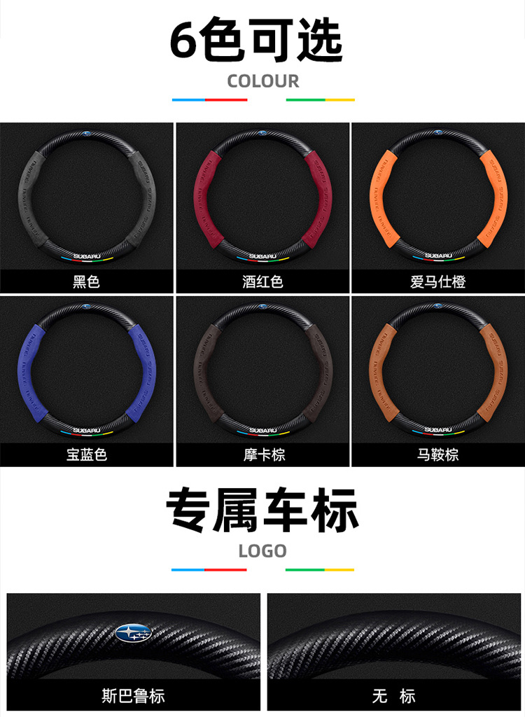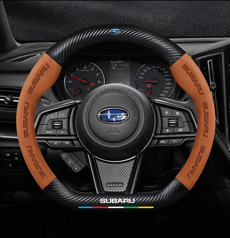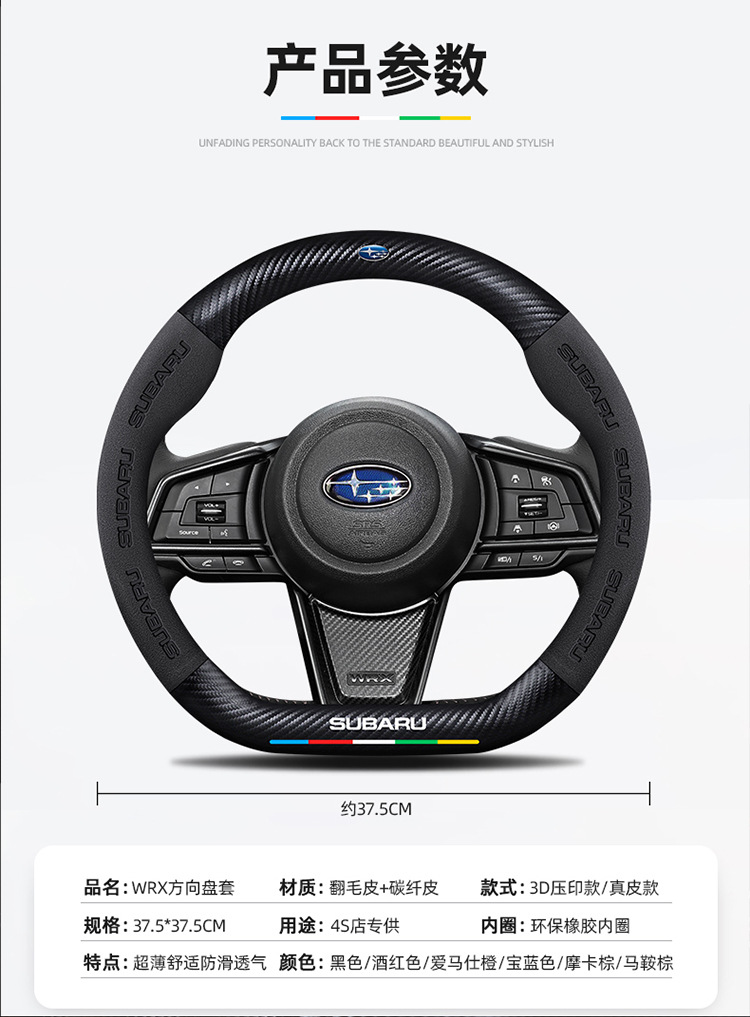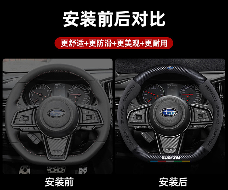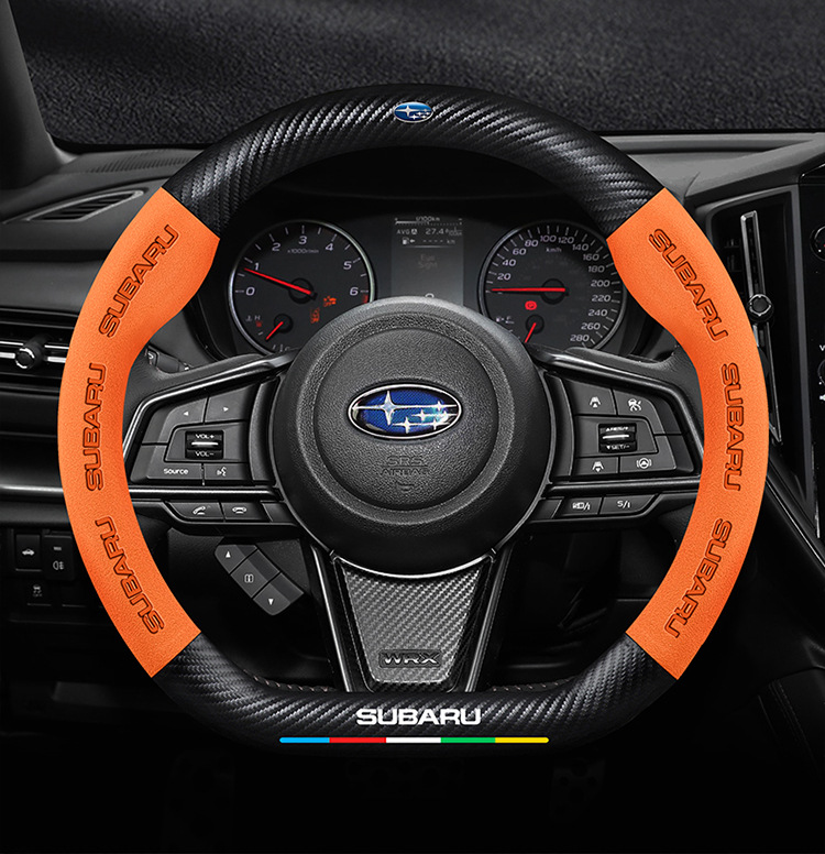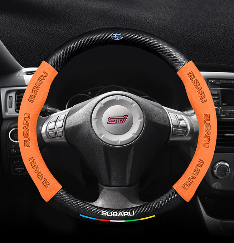 스바루 WRX 스티어링 휠 커버 08-23 사계절 탄소 섬유 울트라 얇은 가죽 헤어 터닝 자동차 핸들 커버에 적합스토어 가기