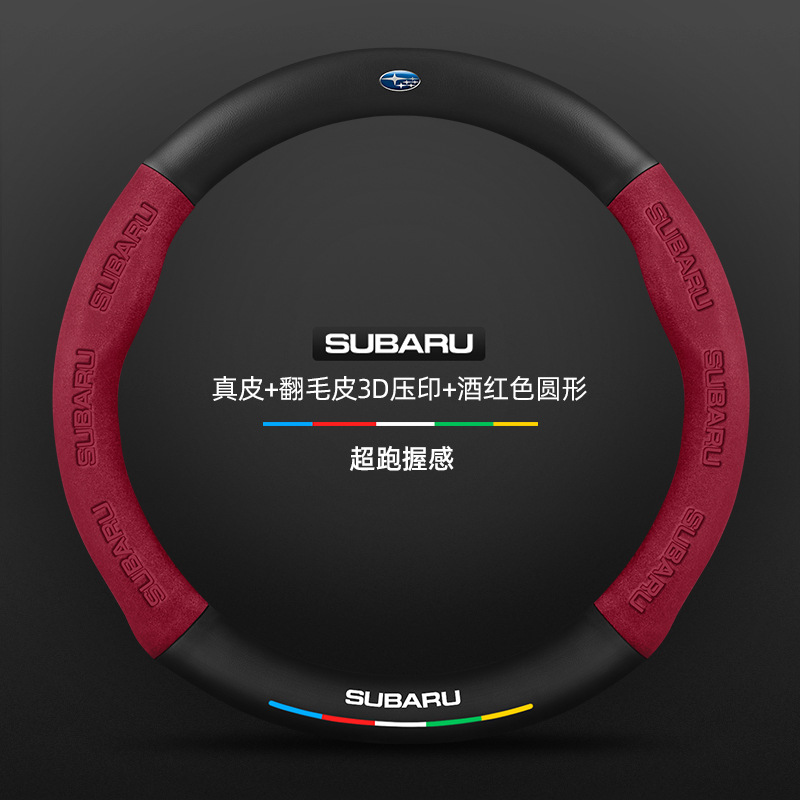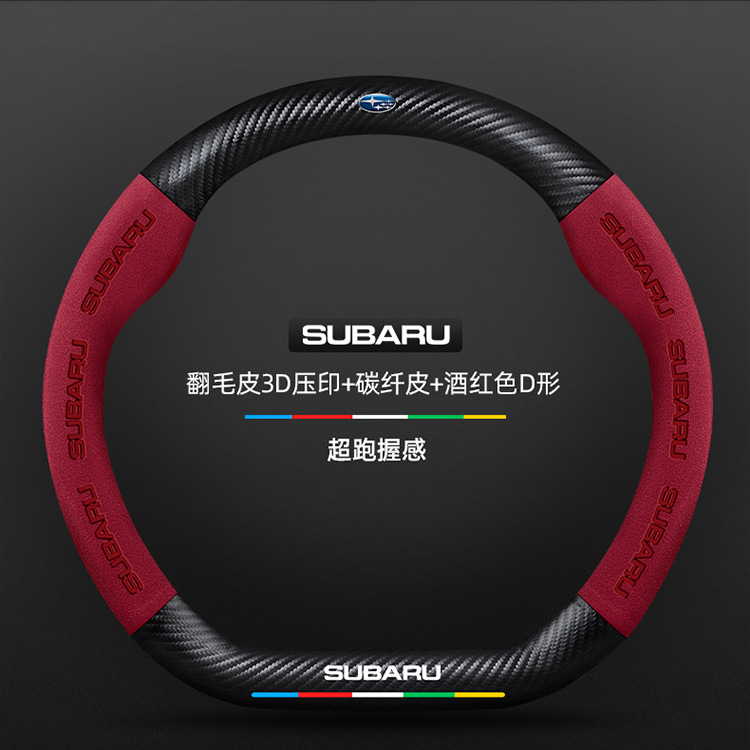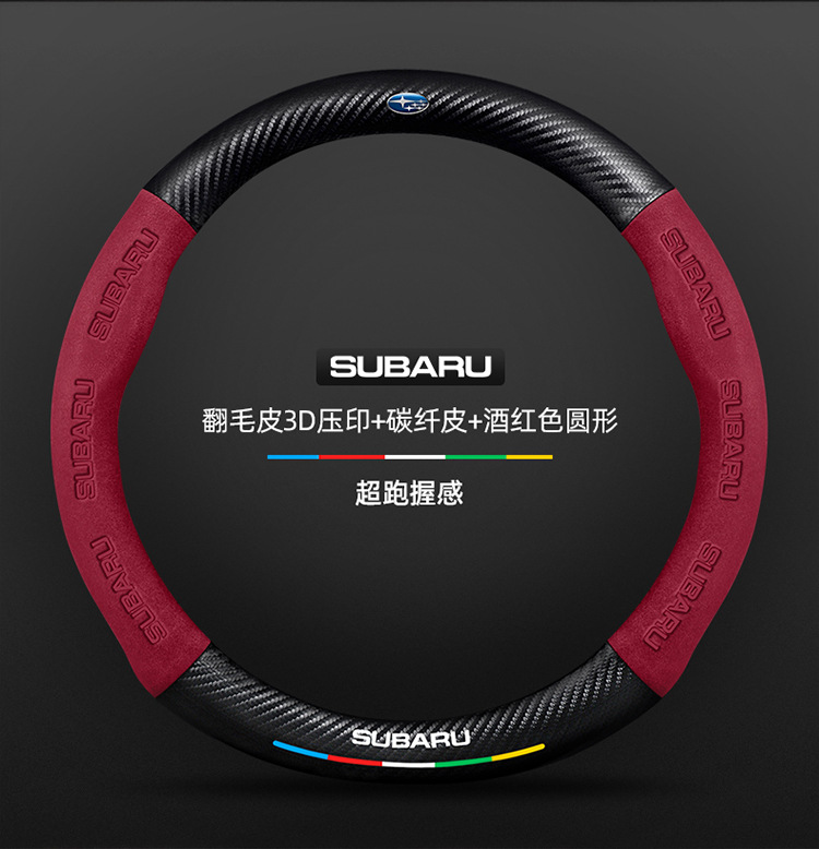 • 스바루 로고 스웨이드 3D 양각 탄소 섬유 가죽 버건디 라운드