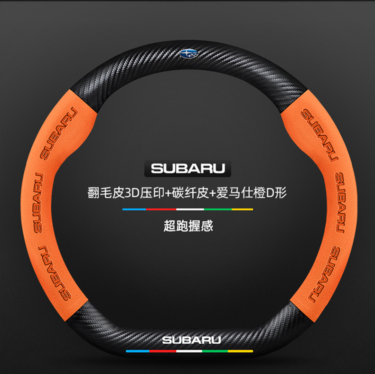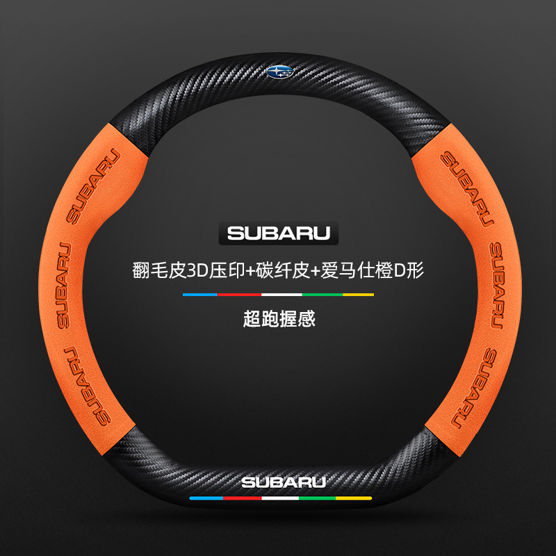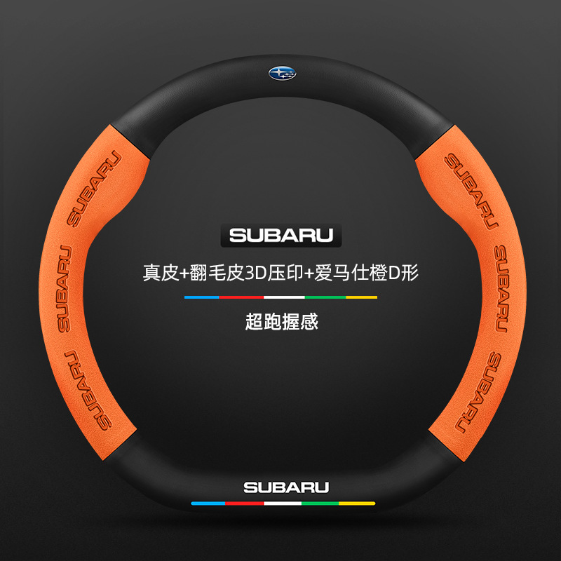 • 정품 가죽 스웨이드 3D 엠보싱 아마르 오렌지 D 자형 스바루 로고
