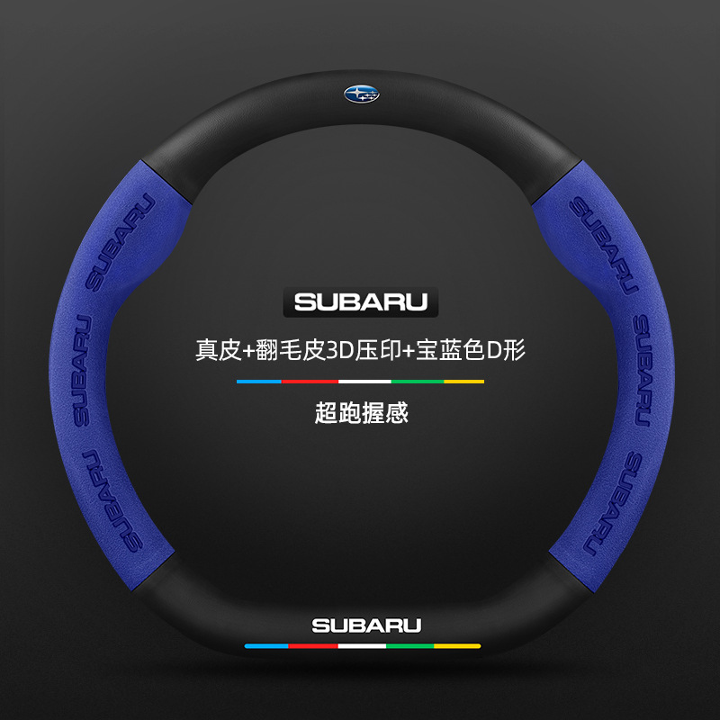 • 스웨이드 3D 엠보싱 탄소 섬유 가죽 블루 D 자형 스바루 로고