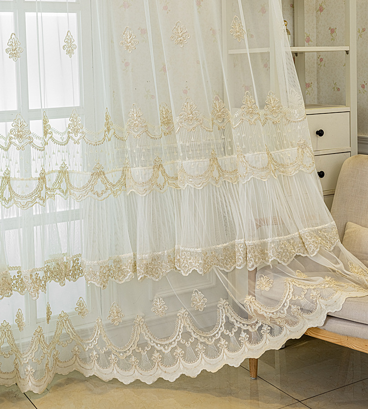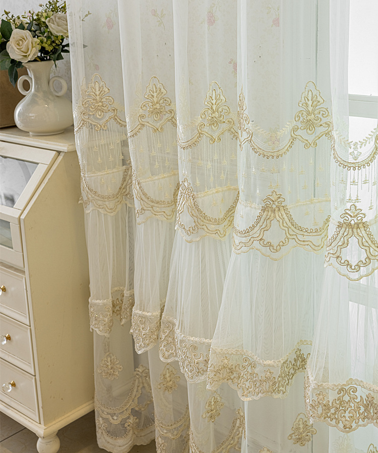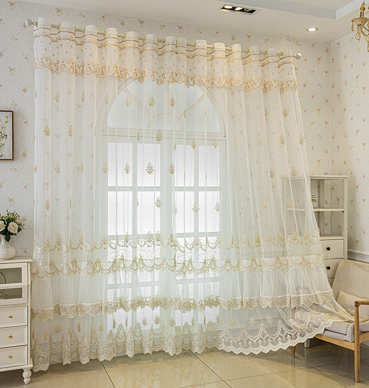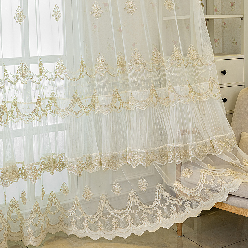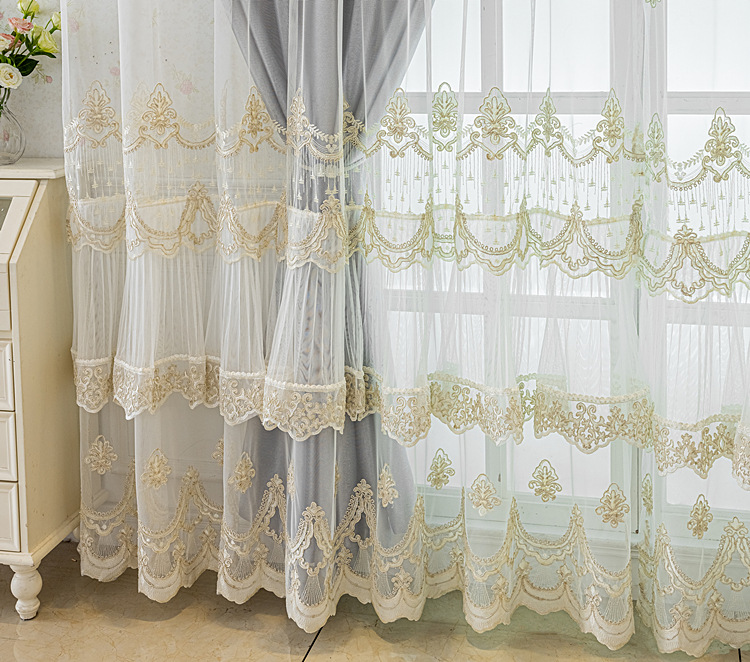 프렌치 엔트리 럭셔리 새로운 자수 더블 레이스 거즈 커튼 하이 엔드 거실 침실 룸 로맨틱 커튼 마감 바닥
