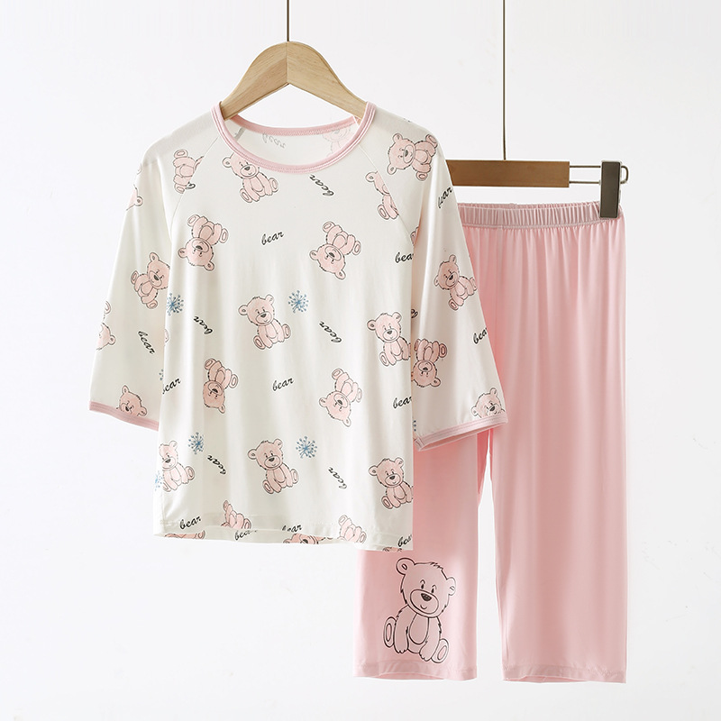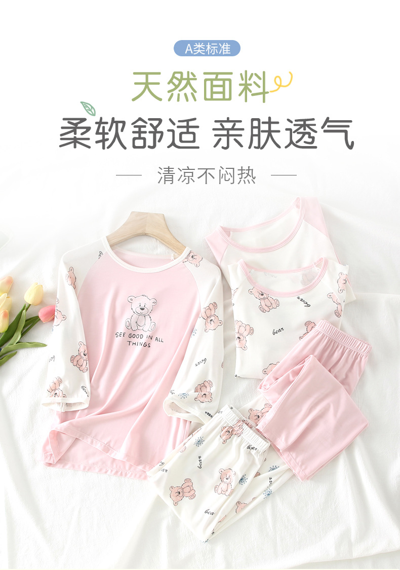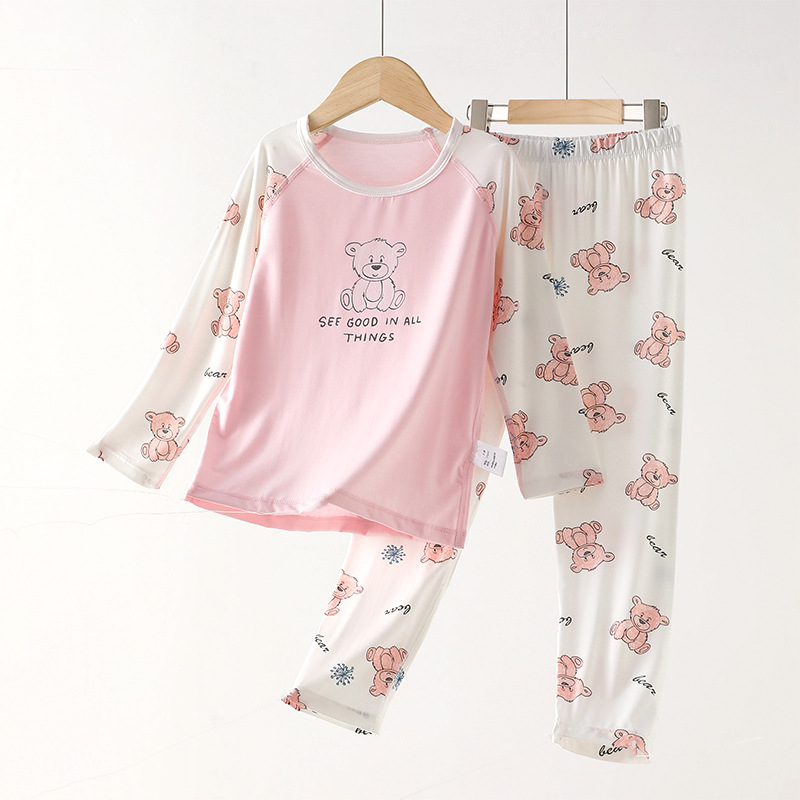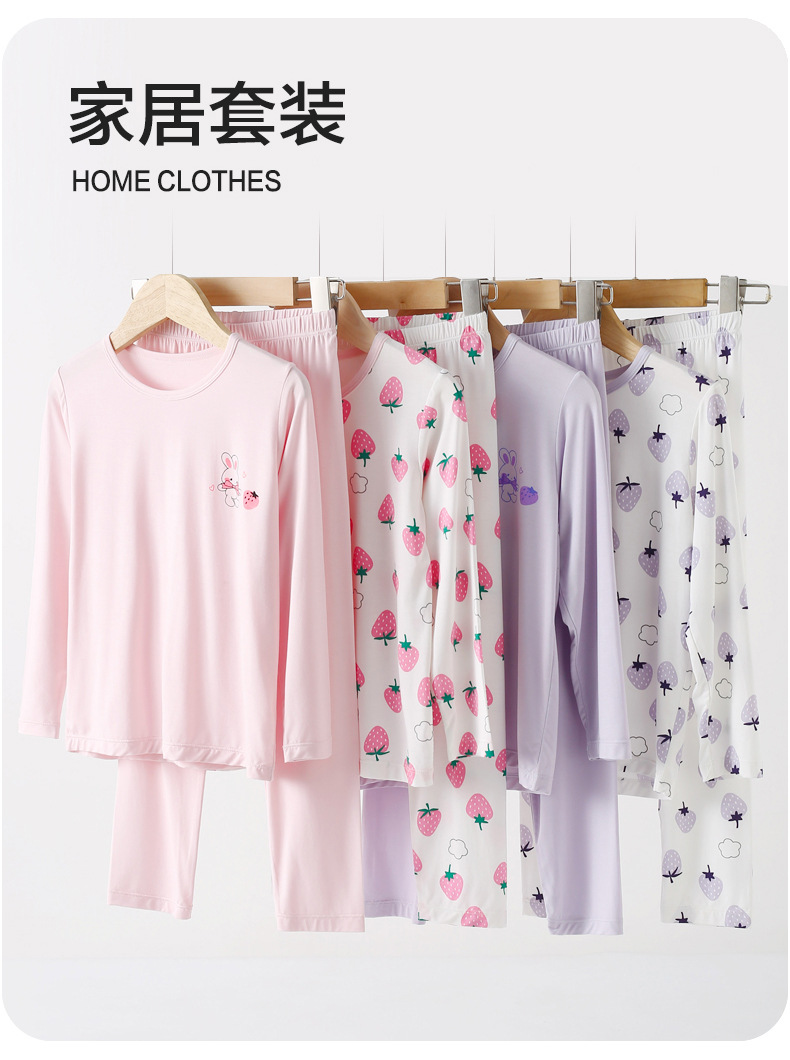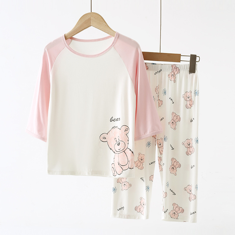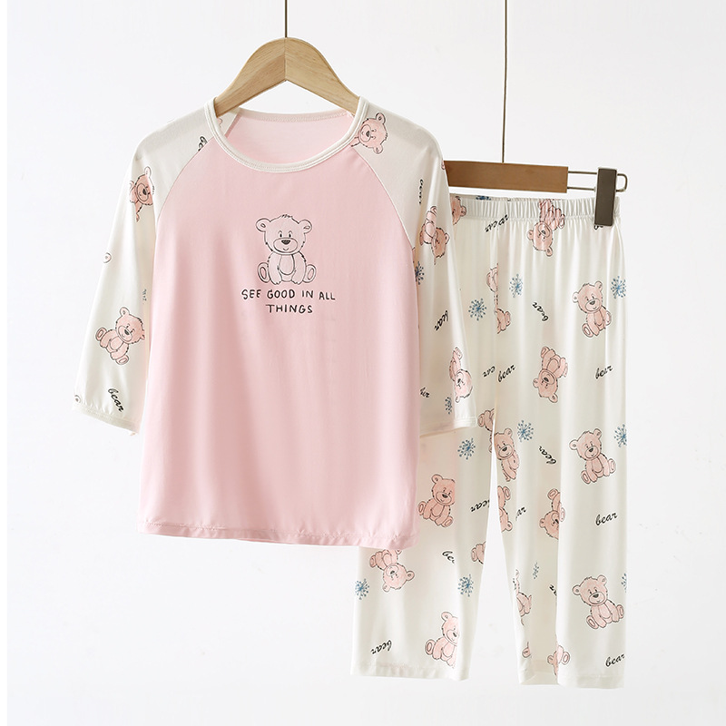 모달 봄과 여름 어린이 잠옷 세트 만화 얇은 여아 투피스 세트 여아 에어컨 홈 옷스토어 가기