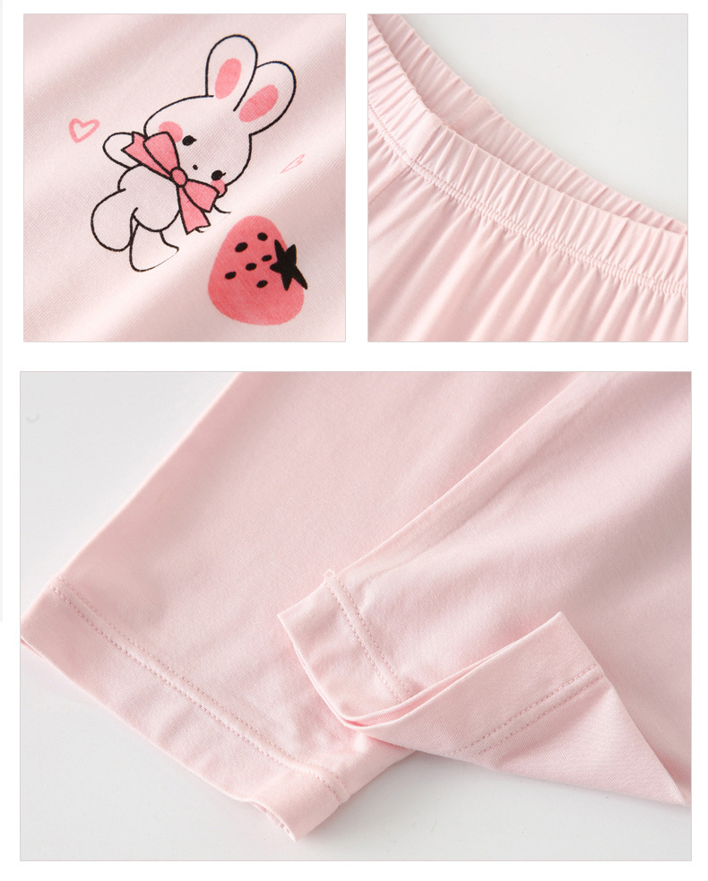 모달 봄과 여름 어린이 잠옷 세트 만화 얇은 여아 투피스 세트 여아 에어컨 홈 옷