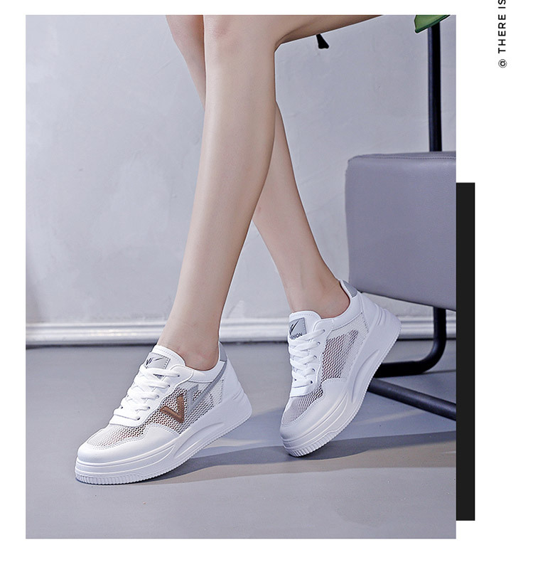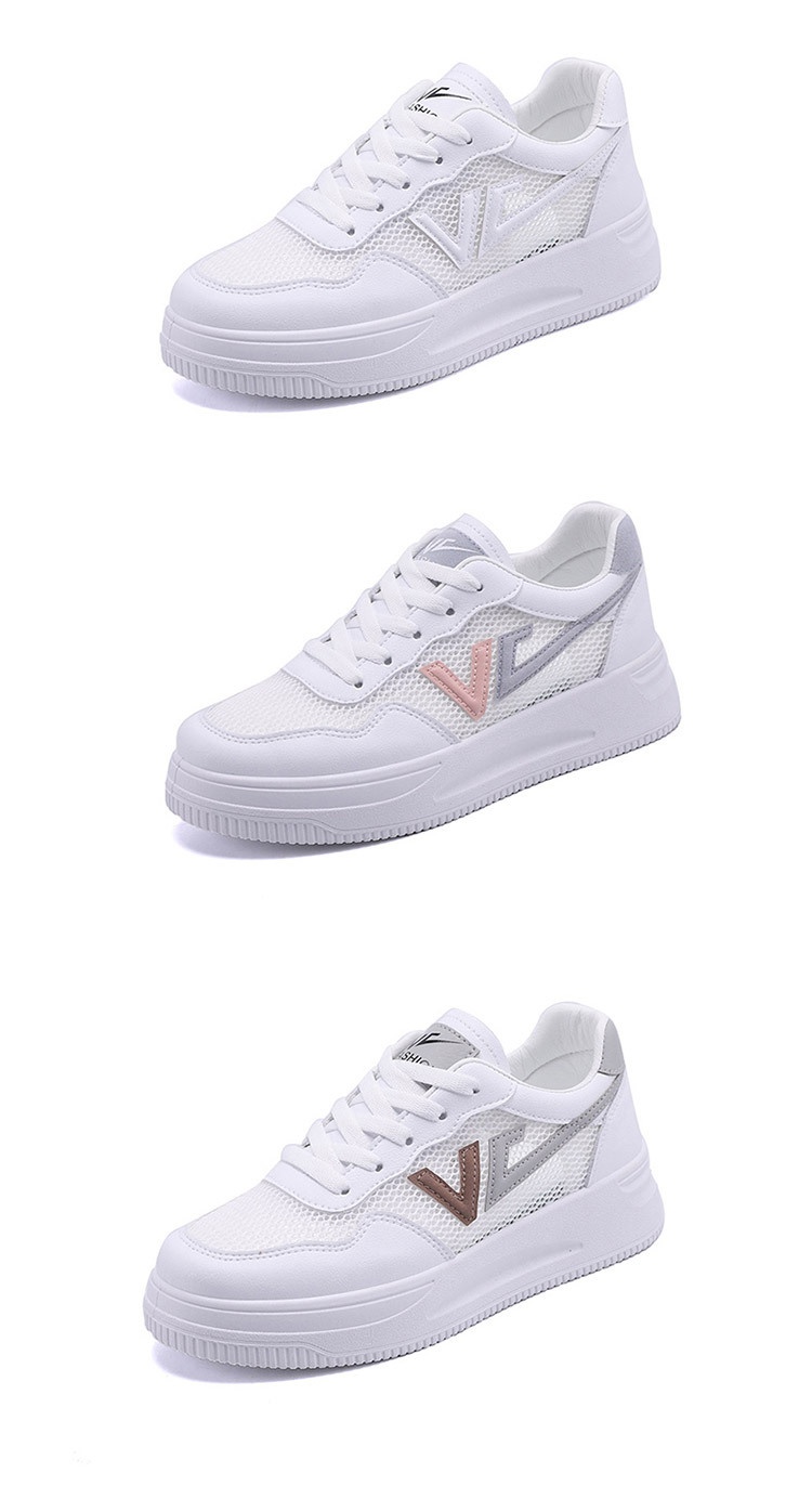 2025 여름 새로운 스타일 한국어 버전 통기성 흰색 신발 여성 메쉬 학생 운동화 여성 두꺼운 밑창 메쉬 신발 여성 Q1609