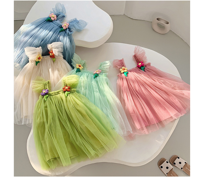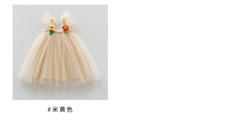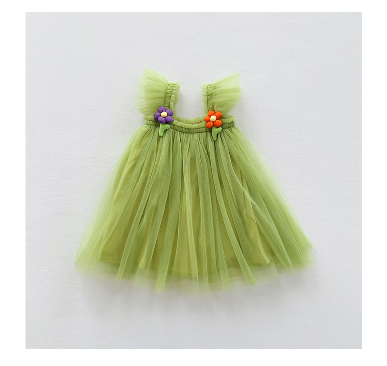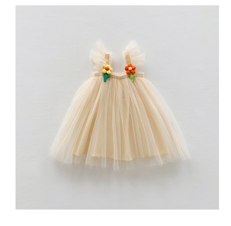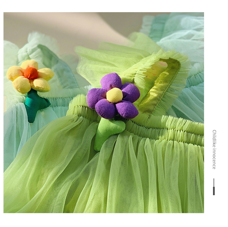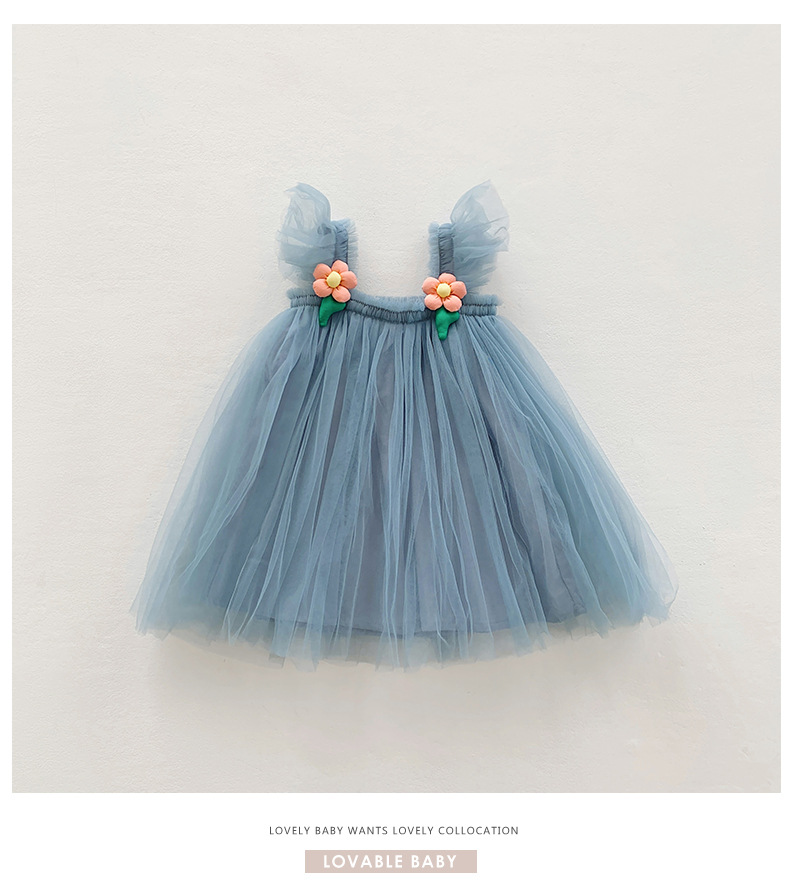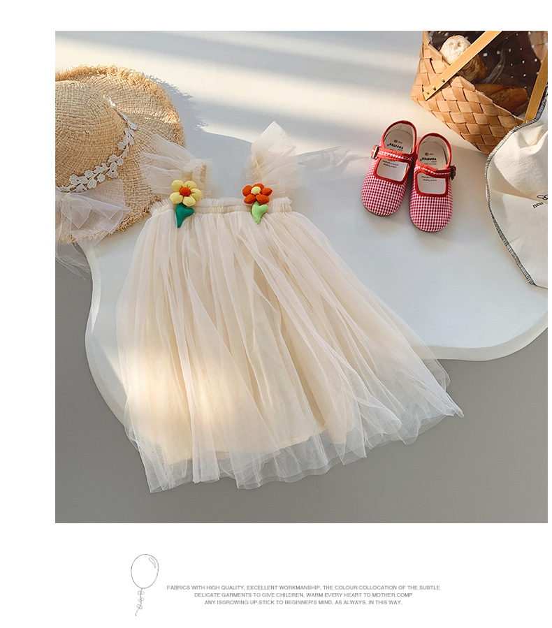 아름다운 입체 꽃망사 여아 드레스 2025 여름 스타일 플라잉 슬리브 여아 퍼프 스커트 공주 드레스