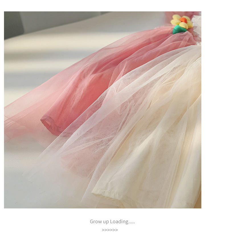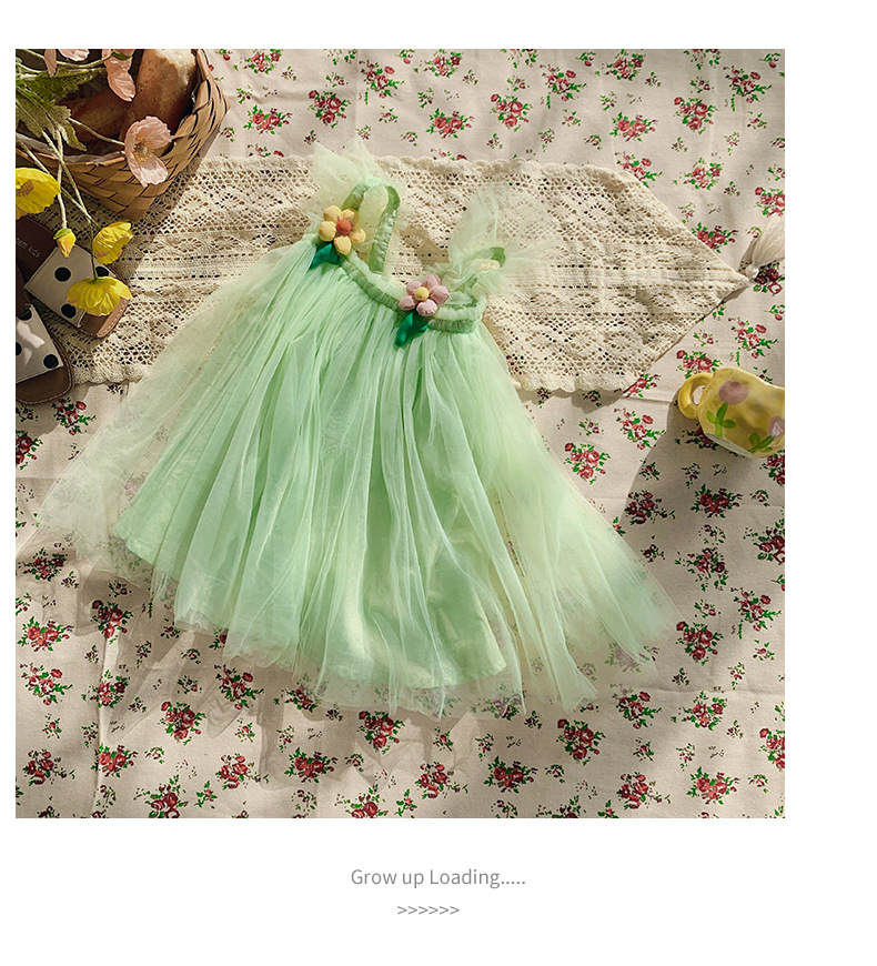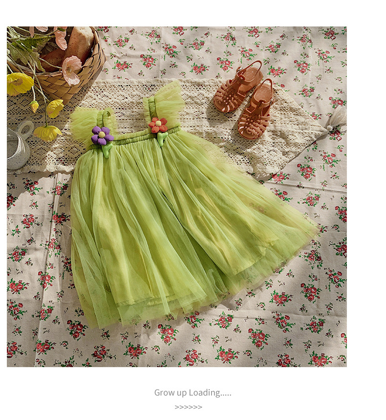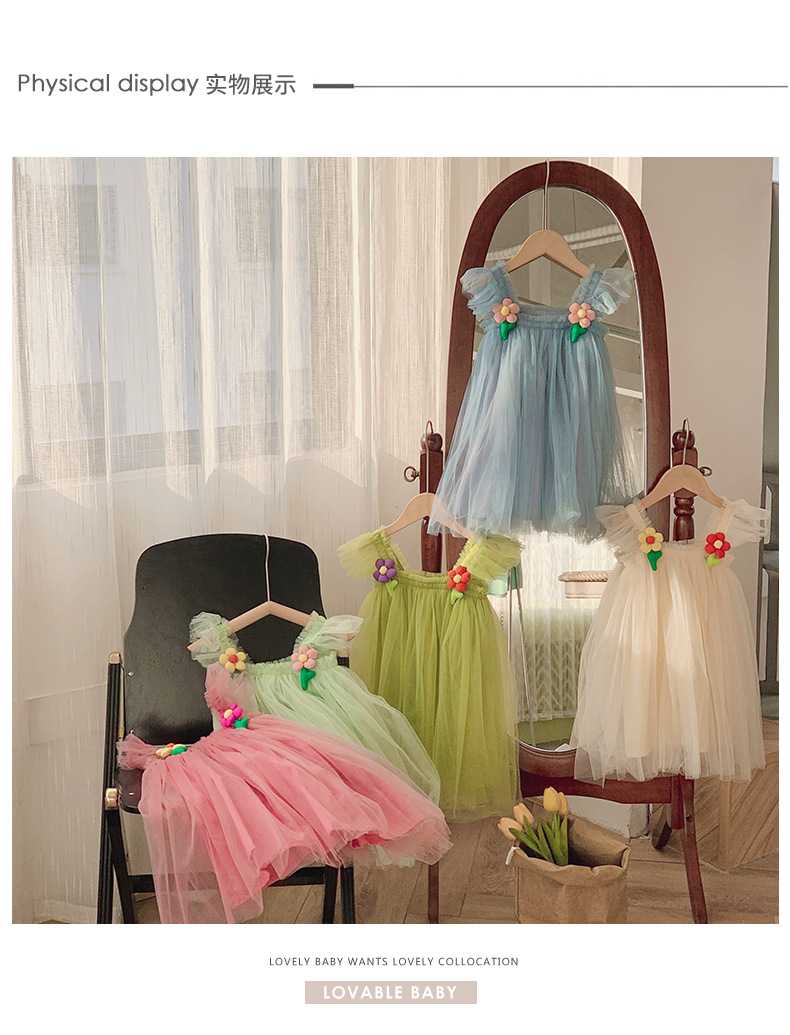 아름다운 입체 꽃망사 여아 드레스 2025 여름 스타일 플라잉 슬리브 여아 퍼프 스커트 공주 드레스스토어 가기