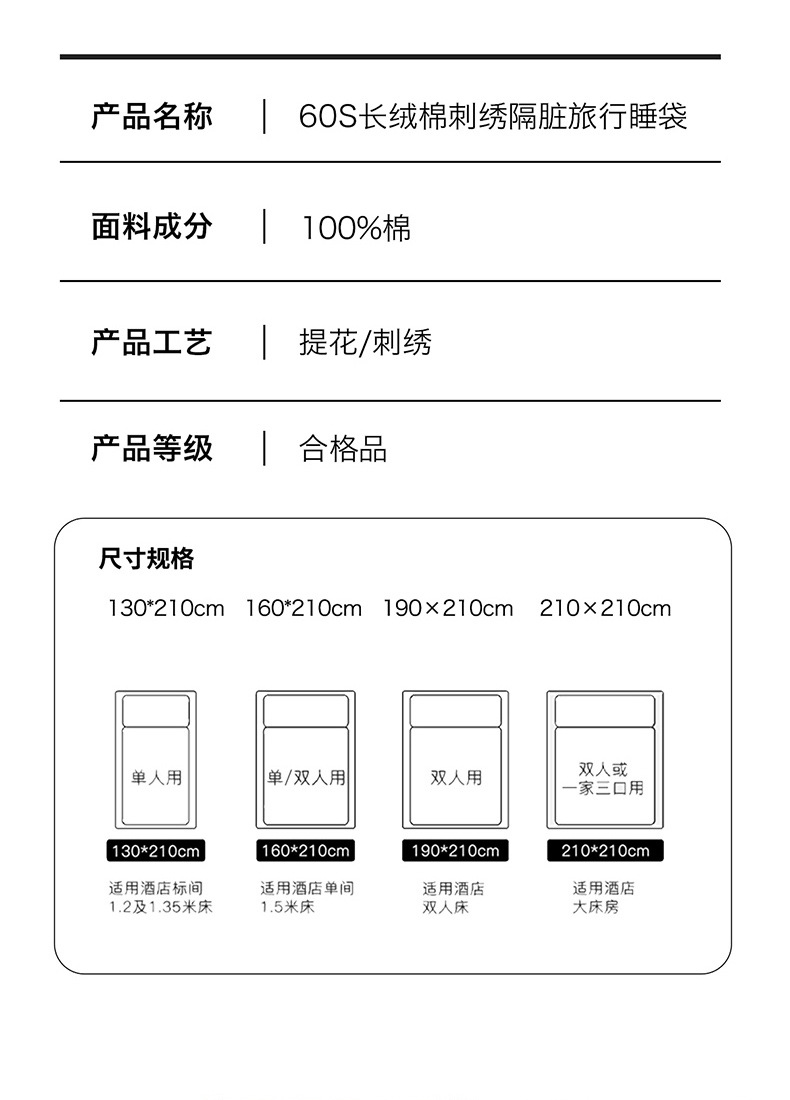 클래스 A 긴 스테이플 코튼 고급 호텔 더러운 슬리핑 백 휴대용 여행 야외 위생 침대 시트 퀼트 커버 침구 6