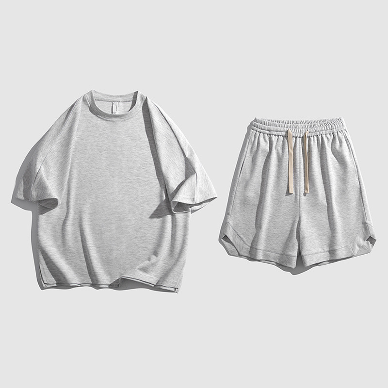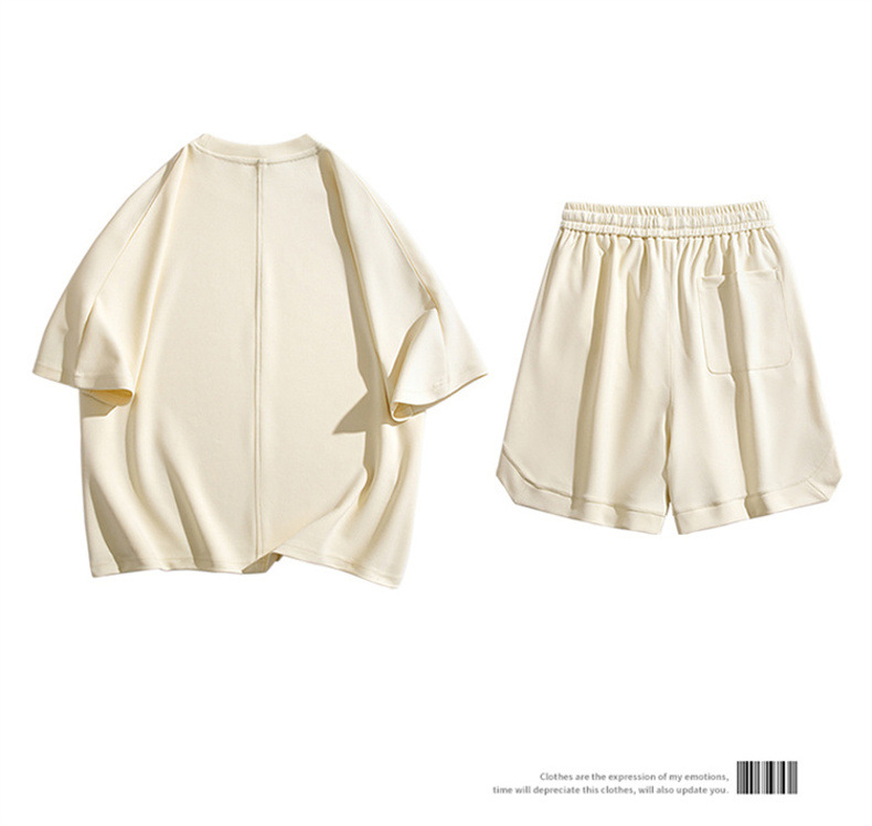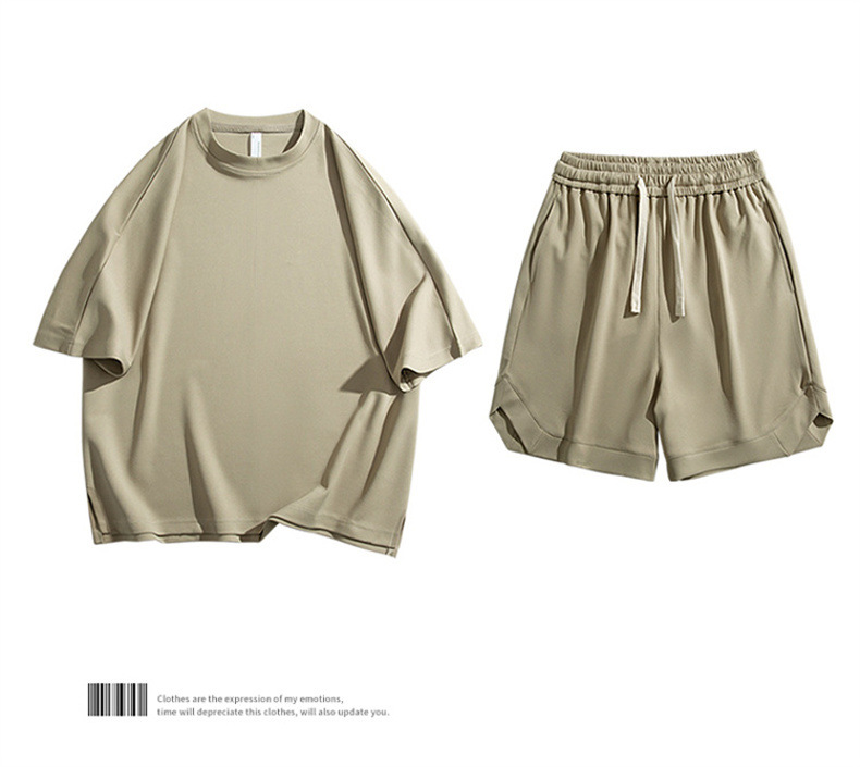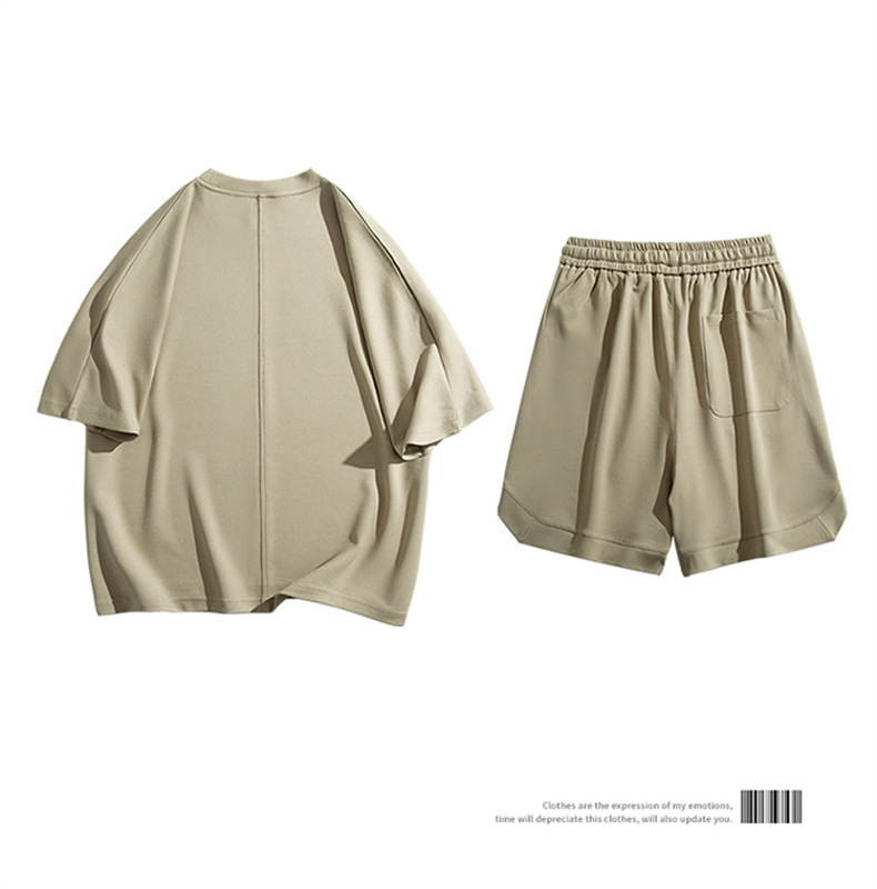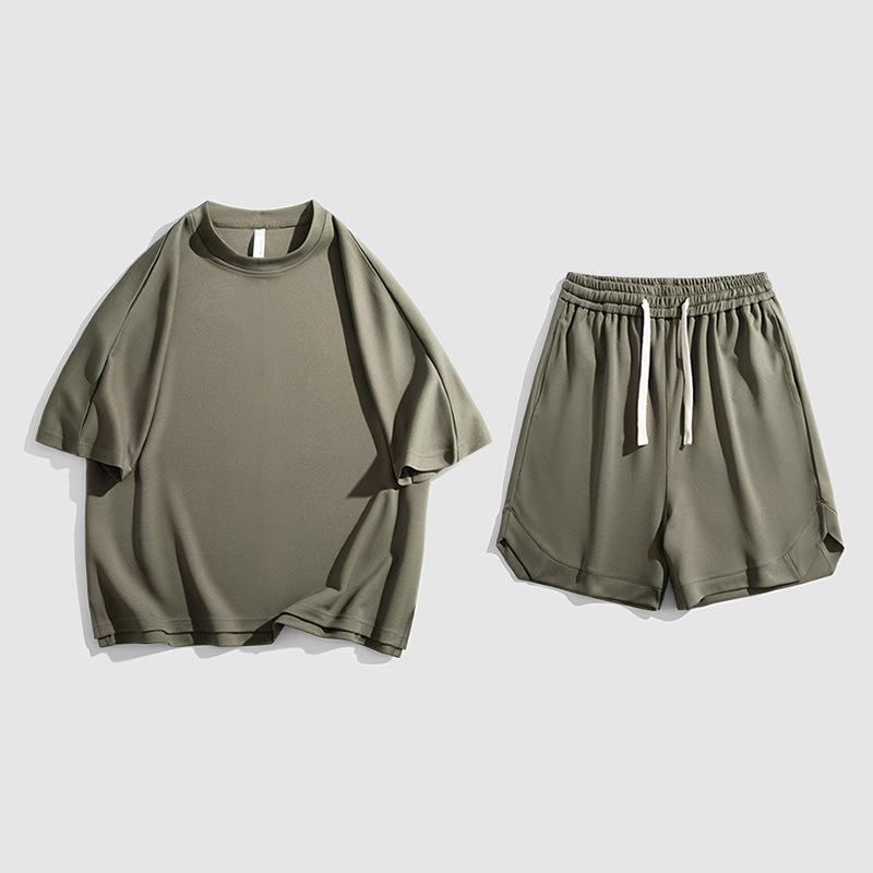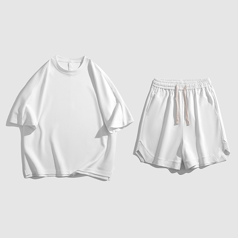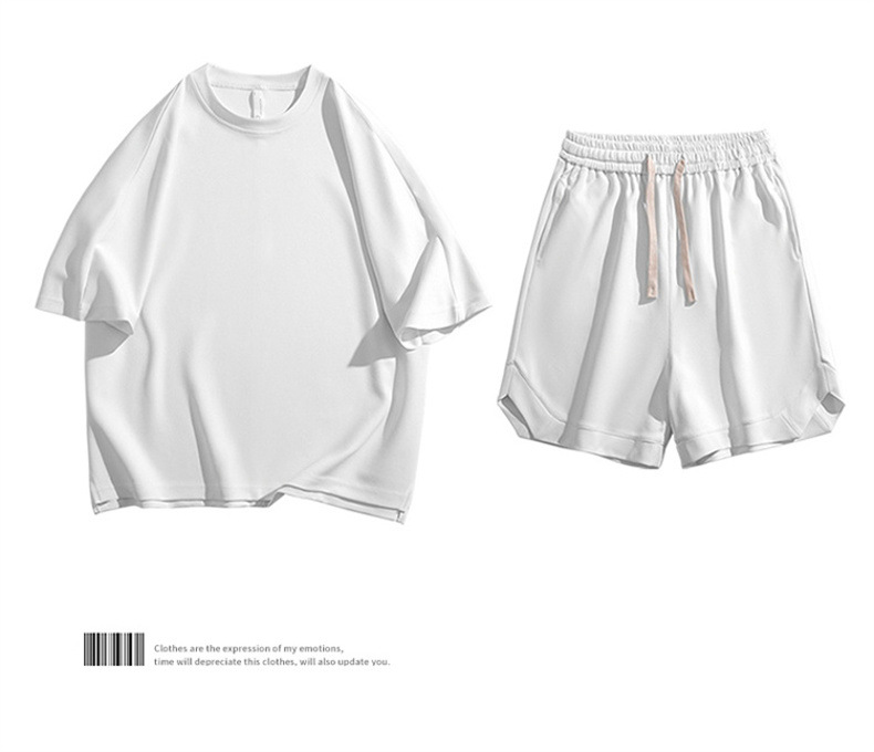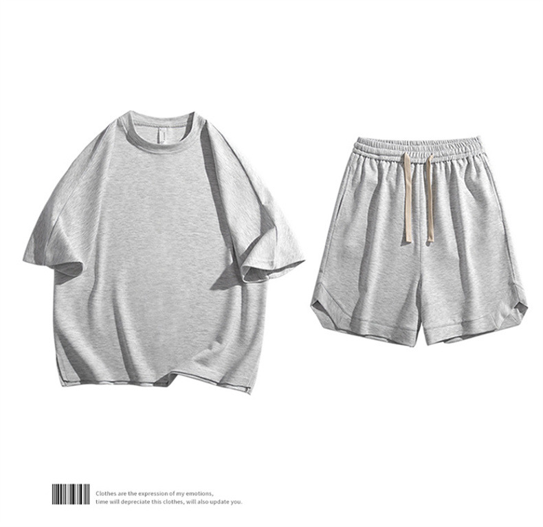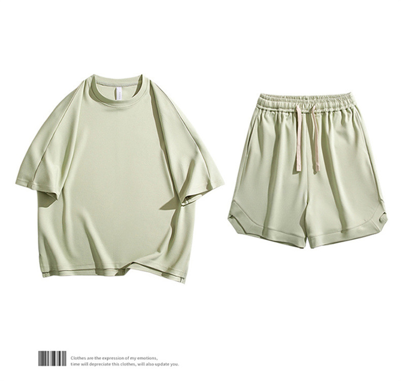 2024 여름 남성과 여성의 어깨 소매 캐주얼 티셔츠 남성용 반바지 트렌디 브랜드 스포츠 솔리드 컬러 세트 투피스 세트