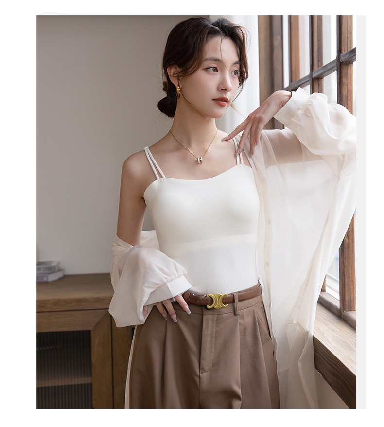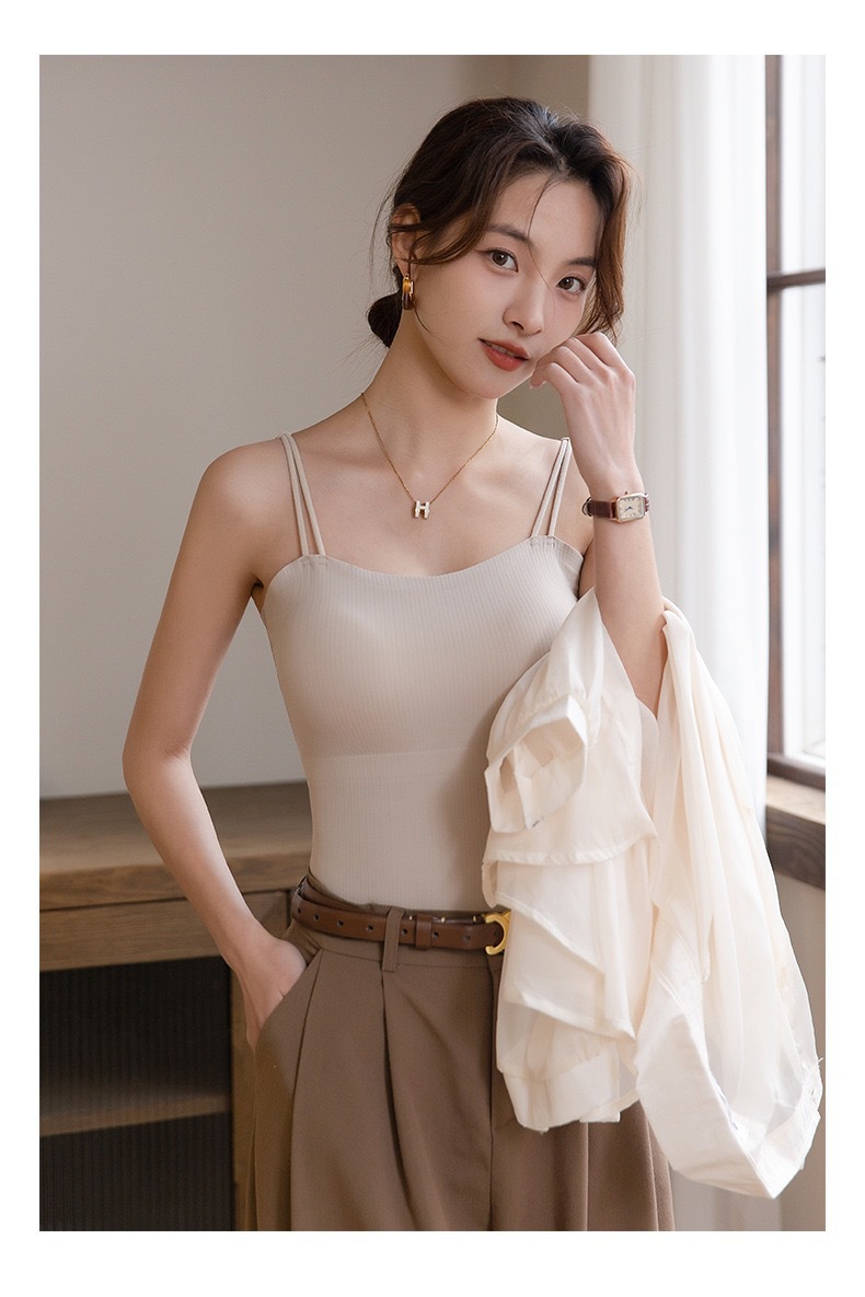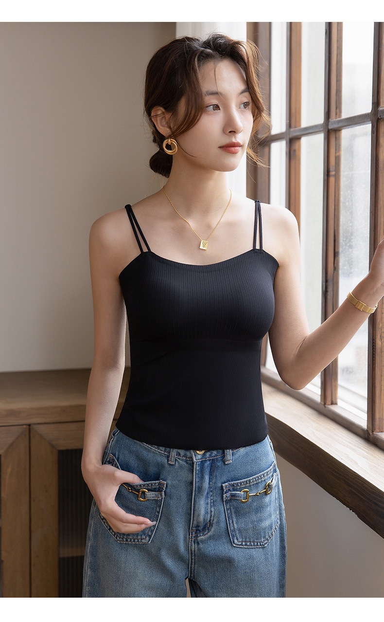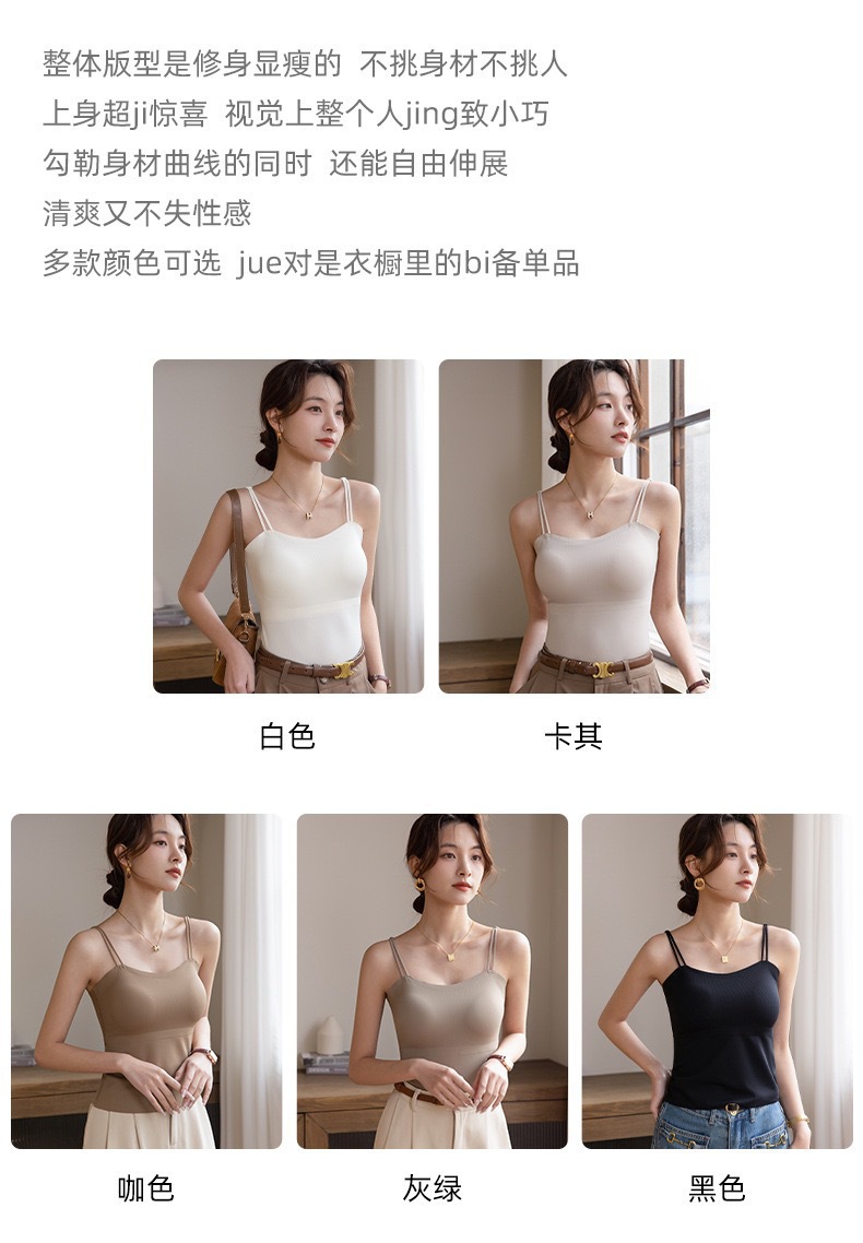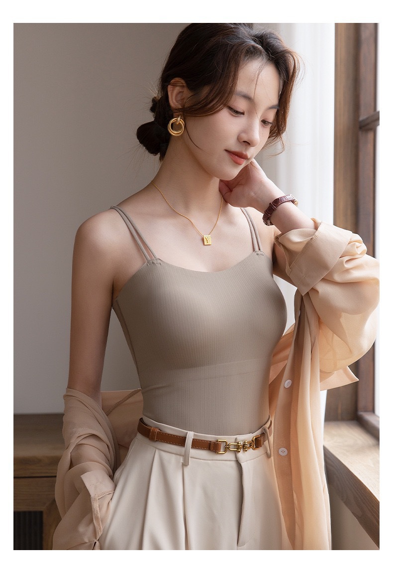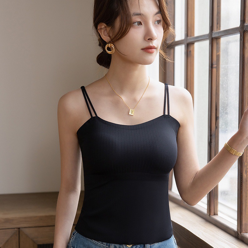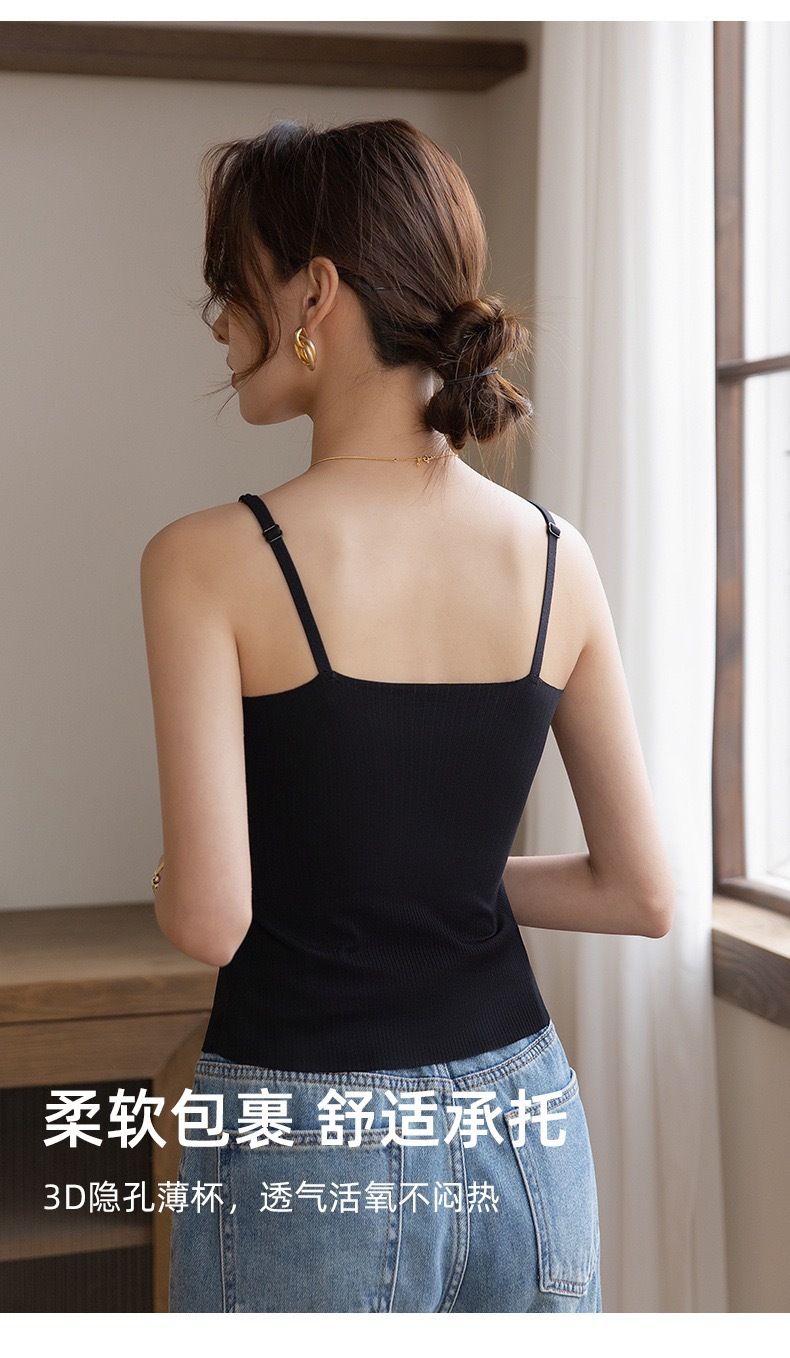 Qiaoaiti 6611 히알루론산 피부 영양 올인원 끈나시 (컵 내장형) 여름용 무봉제 얇은 모델 노출방지 아름다운 등라인