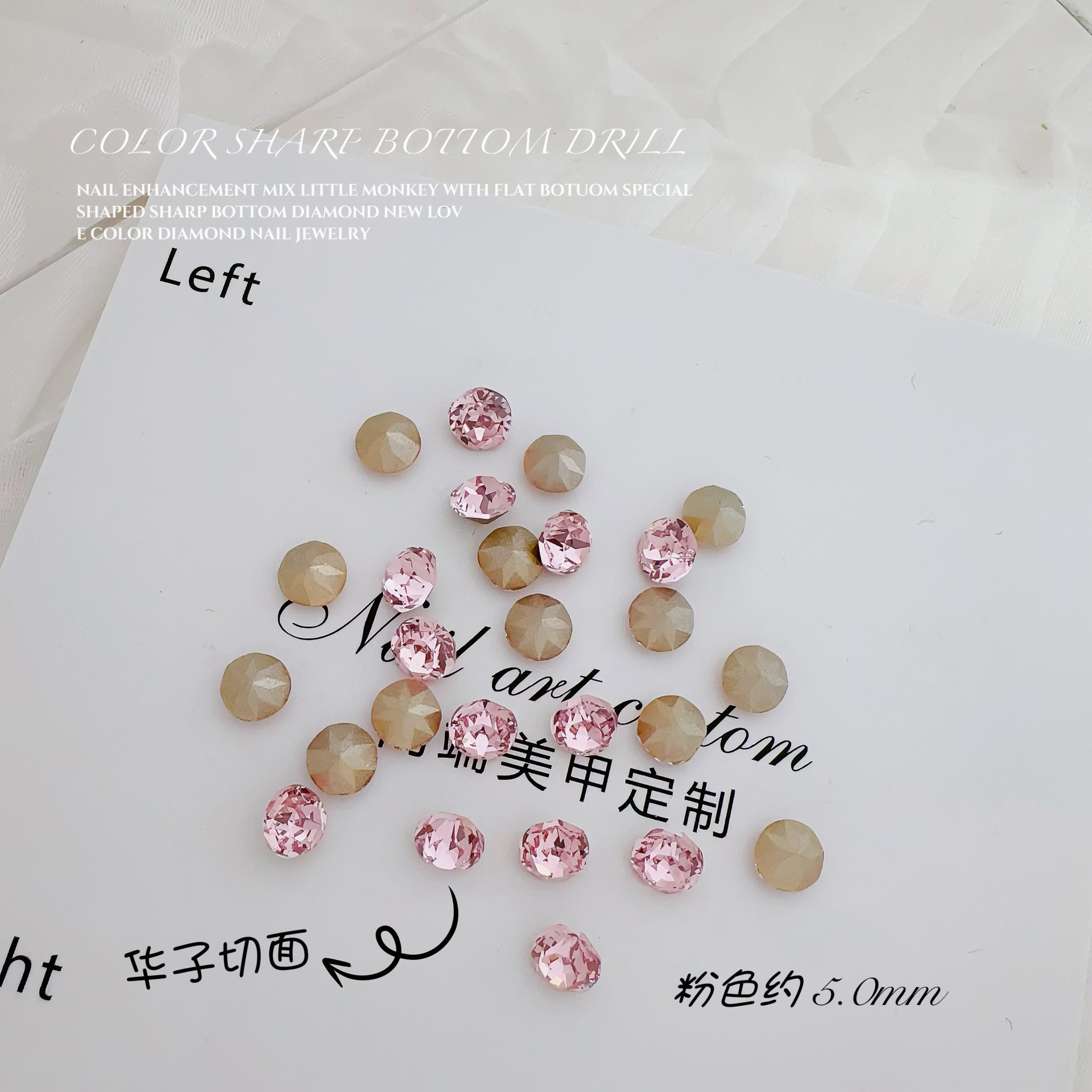 사이버 축하 네일 아트 다이아몬드 장식 멀티 컷 5mm 라운드 뾰족한 바닥 다이아몬드 핑크 크리스탈 달빛 네일 더미 다이아몬드 장식