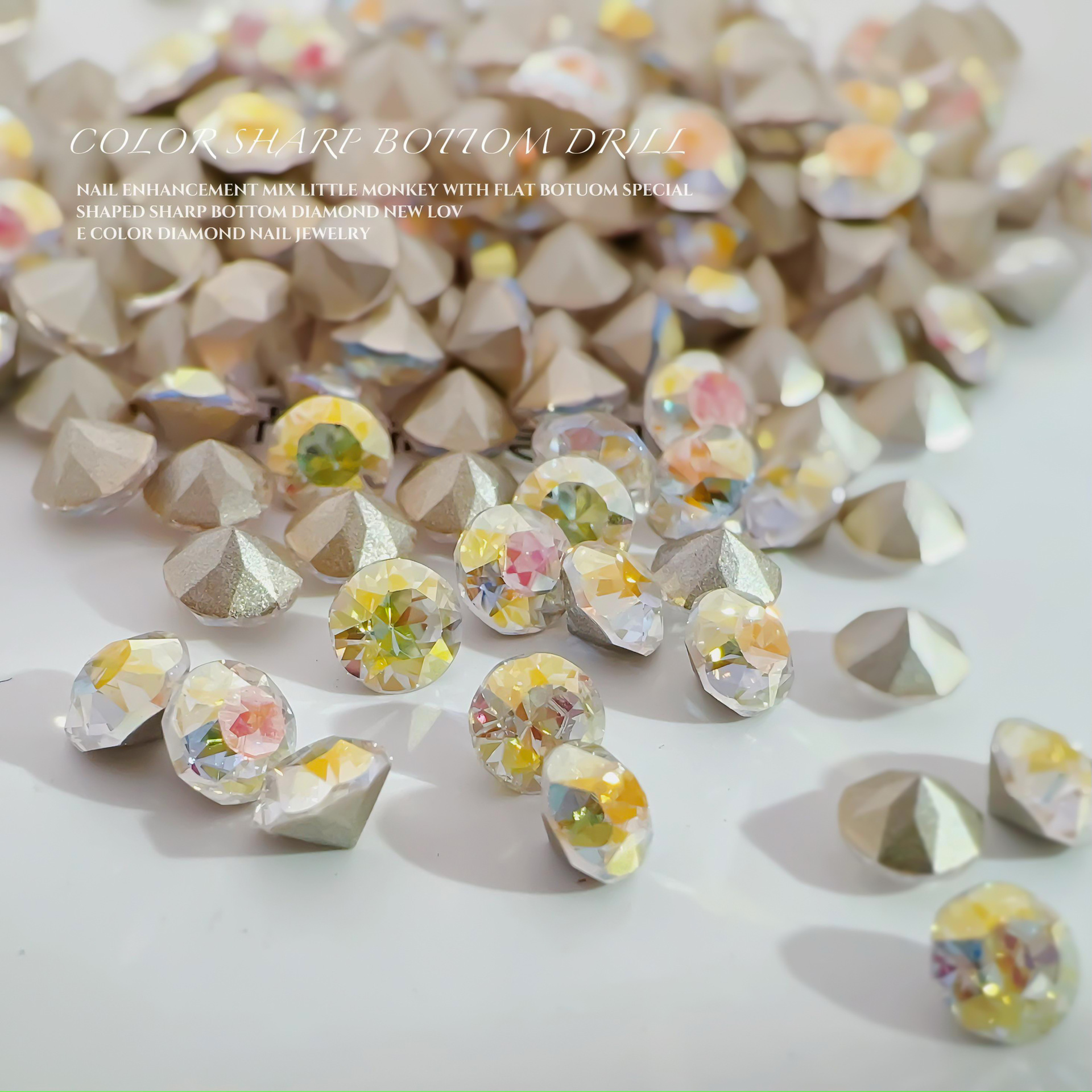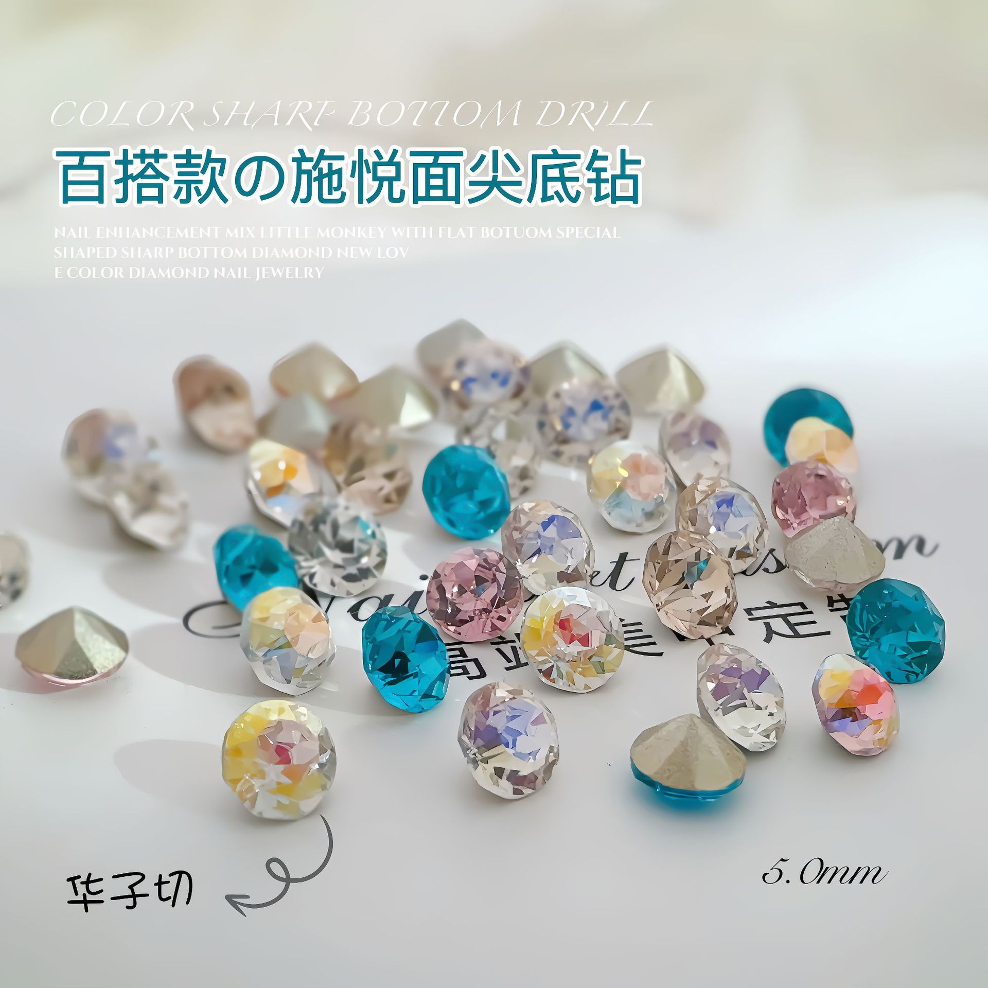 사이버 축하 네일 아트 다이아몬드 장식 멀티 컷 5mm 라운드 뾰족한 바닥 다이아몬드 핑크 크리스탈 달빛 네일 더미 다이아몬드 장식스토어 가기