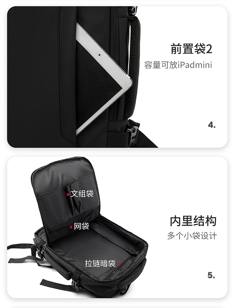 새로운 배낭 확장 대용량 배낭 남성용 튀는 물 외부 노트북 가방 여행 가방 세트 로고스토어 가기