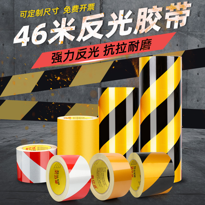 Ben Yida 검은 색과 노란색 경고 반사 테이프 노란색 두꺼운 PET 도로 교통 표지판 빨간색과 흰색 청결 반사 필름스토어 가기