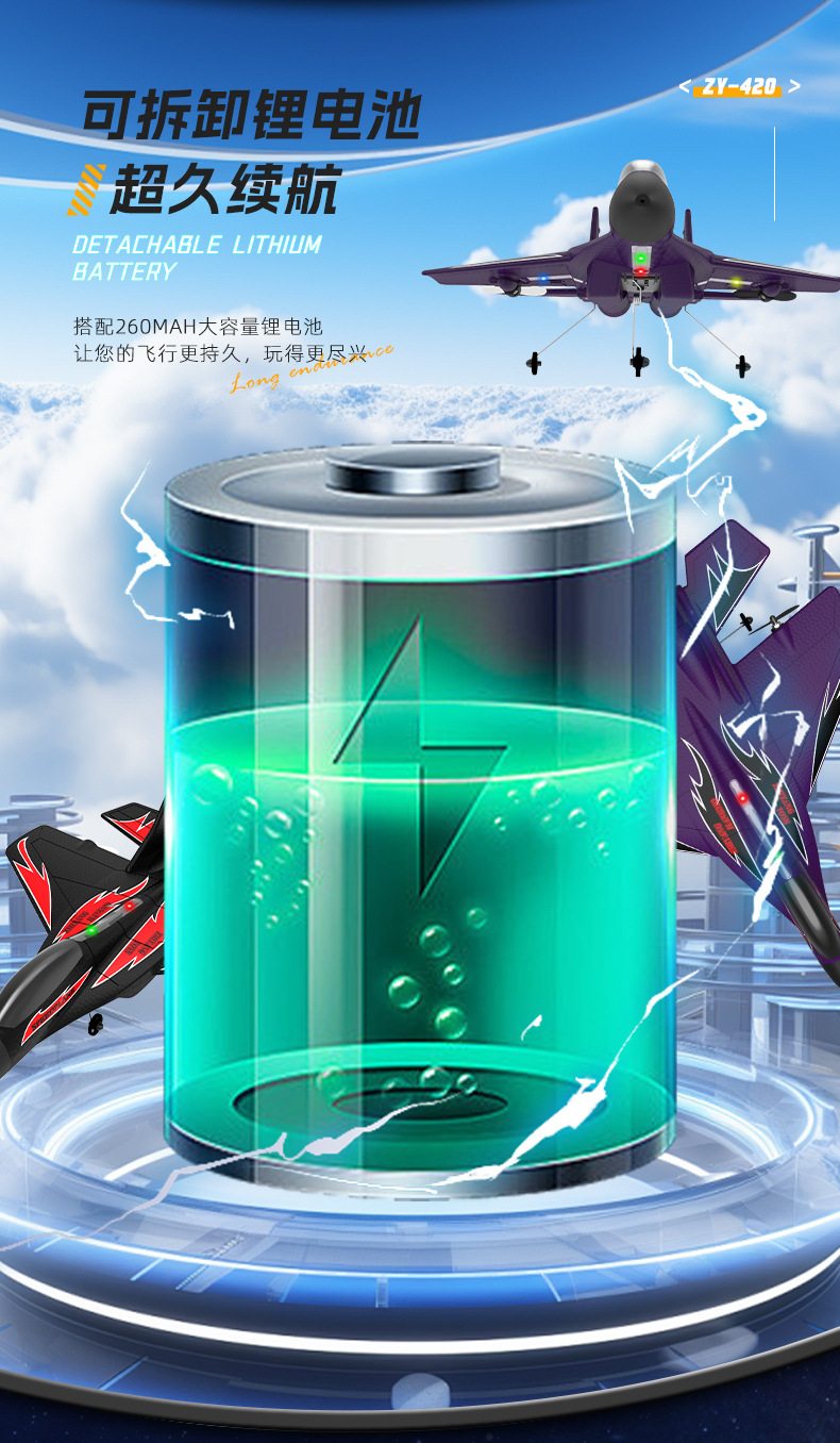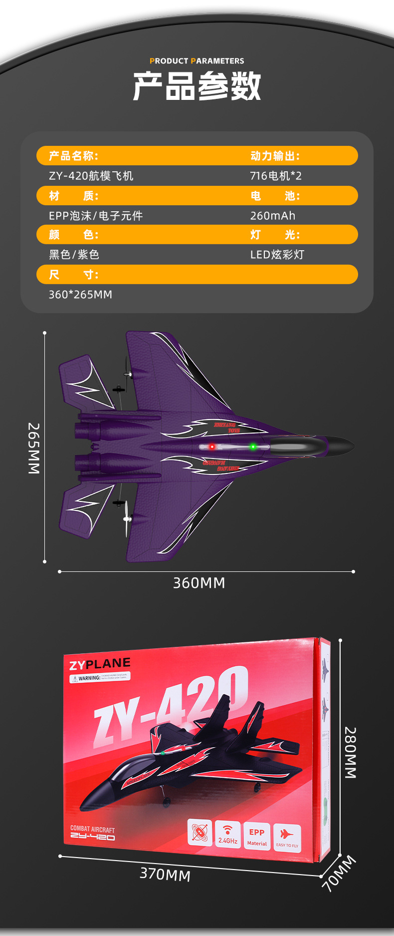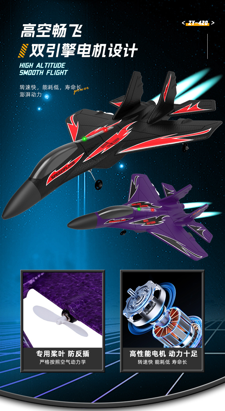 ZY-420 원격 제어 항공기 글라이더 비행기 모델 고정 윙 드롭 방지 장난감 모델 전투기 EPP 폼