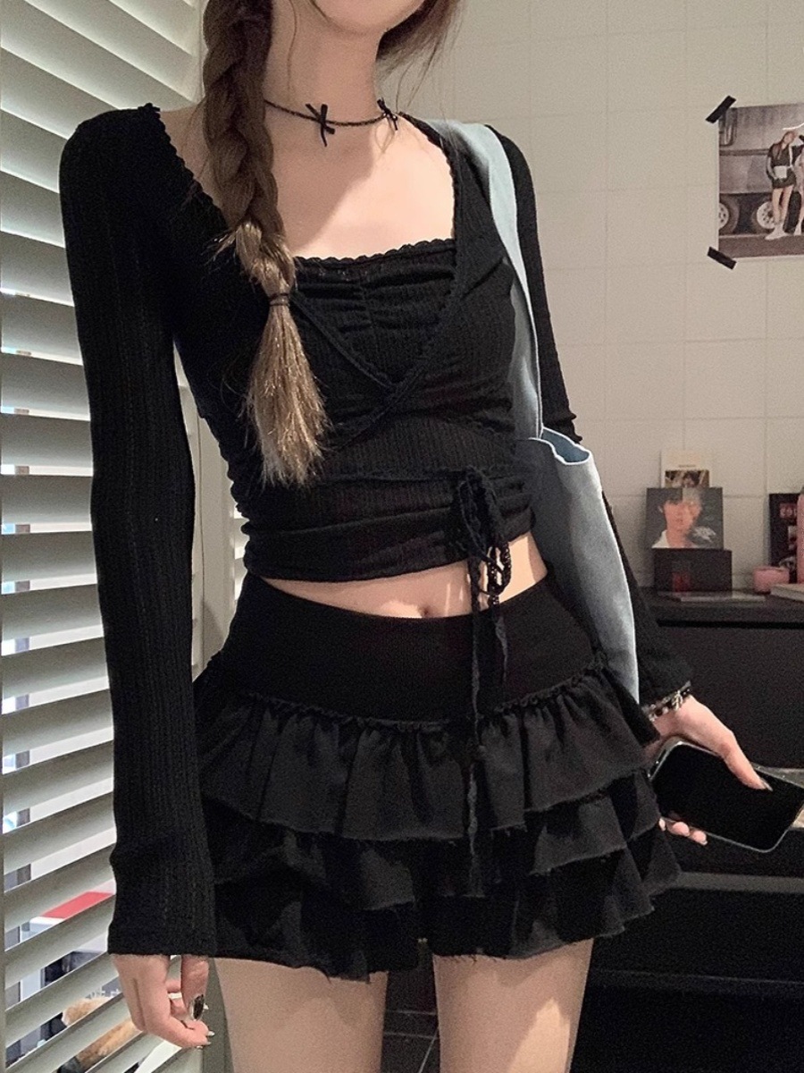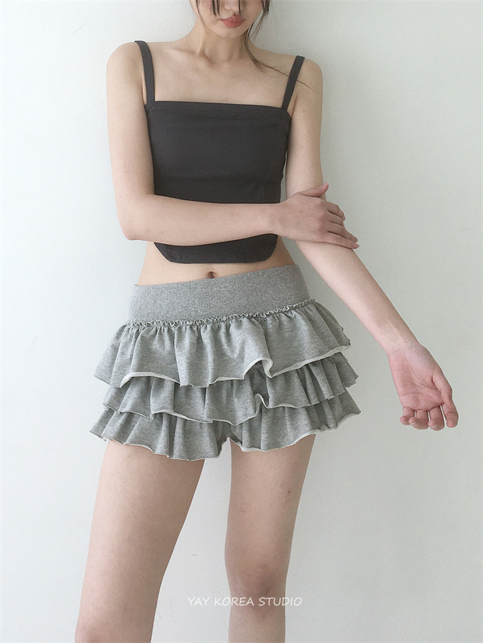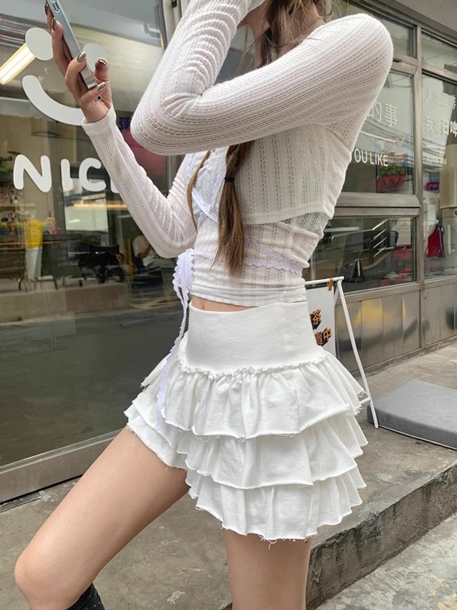 YAY 한국 동대문 구매 미국 발레 스타일 연꽃 러플 엣지 타이트 허리 푹신한 케이크 스커트